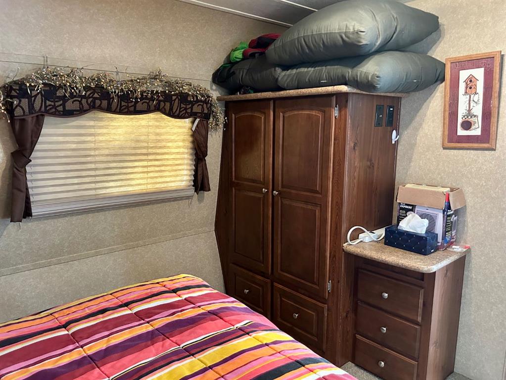 Tucked away in the quiet Riverside RV Village, this exceptional pie-shaped lot offers the perfect summer retreat for those seeking a peaceful escape without sacrificing comfort or convenience. Spanning approximately 6,000 square feet, the oversized lot is both spacious and private, thoughtfully developed to create a relaxing outdoor haven. Included with the property is a well-maintained 8’ x 30’ Forest River Inc. RV featuring one cozy bedroom—ideal for a couple or small family to unwind after a day of outdoor adventure. A sofabed adds additional sleeping space, if needed. A beautifully crafted 12’ x 20’ addition expands your living space and invites you to enjoy cooler evenings by the warmth of the propane fireplace, all while surrounded by nature. Whether you're sipping your morning coffee or relaxing on the private patio or gathering with friends around the private fire pit, this lot has everything you need to embrace the good life. The lot includes two handy sheds, with the larger one at the front offering ample room for use as a workshop, creative space, or guest overflow. Generous storage throughout the property ensures room for all your summer toys and gear. Enjoy full RV hookups and immediate access to the resort’s well-appointed clubhouse, complete with showers, washrooms, and laundry facilities—making extended stays effortless. The lot is just steps away from the Red Deer River, renowned for fishing and natural beauty, while nearby walking and biking paths let you explore the great outdoors at your own pace. The resort community also features family-friendly amenities including playgrounds, a sandpit, horseshoe pits, and even a basketball court. Golfers will appreciate the selection of scenic courses just minutes away, and with shopping close at hand, every convenience is within reach. Whether you're looking for a summer basecamp, a weekend getaway, or a quiet corner to relax and reconnect with nature, this Sundre River Resort property offers a rare blend of comfort, recreation, and tranquility. It's more than a lot—it’s your own piece of paradise.