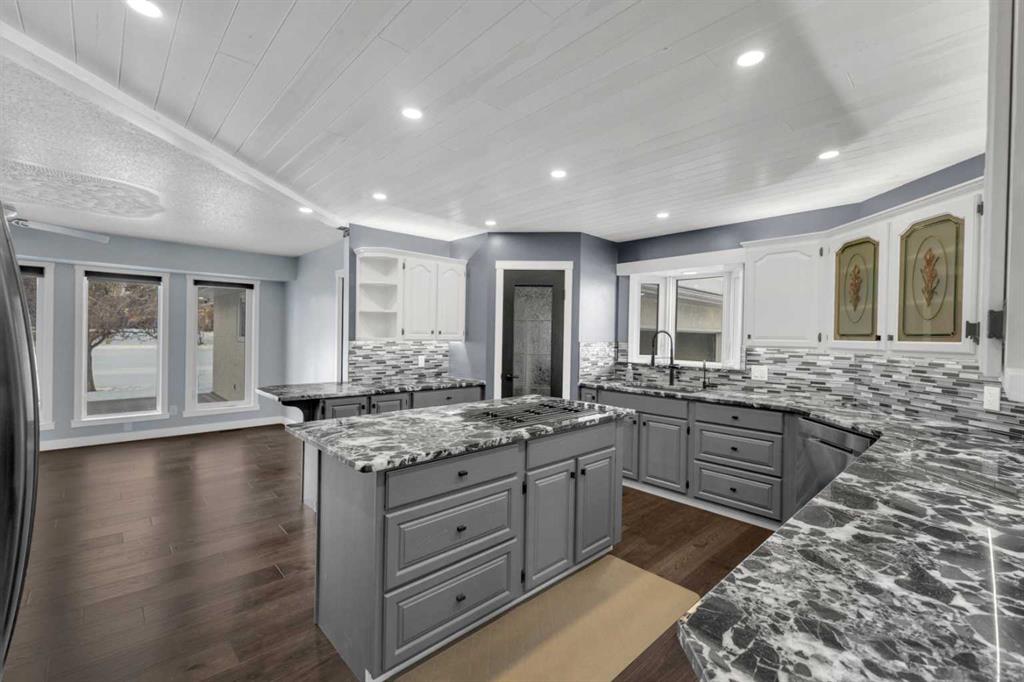 Welcome to this RENOVATED bungalow in the Summer Village of Norglenwold—where every day feels like a family getaway. Just one row from Sylvan Lake and steps from the boat launch, this almost 2,500 sq ft home sits on an impressive 15,000 sq ft lot, offering space, comfort, and the perfect backdrop for making lifelong memories. Inside, the open-concept layout is designed for family living. The bright living room, anchored by a stone gas fireplace with custom live-edge mantles, is ideal for movie nights or cozy evenings together. The beautifully updated kitchen with newer quartzite countertops, 5-burner gas cooktop, and NEW lighting makes preparing meals a joy—whether it’s a quick breakfast before heading out on the lake or a big family dinner with everyone gathered around. All-NEW flooring, renovated bathrooms, fresh paint, and upgraded systems (including a NEWER furnace and NEW commercial-grade on-demand hot water) give you peace of mind so you can focus on what matters most—your family. The large NEW windows and blinds not only fill the home with natural light but also frame the views of the surrounding trees and yard, where kids can play freely and safely. Outdoors, the expansive yard provides endless opportunities—set up a playset, build a rink in the winter, or host summer barbecues while the kids ride bikes and play tag. The NEW front deck is the perfect spot for morning coffee while watching the kids explore, or winding down together at the end of the day. A second driveway out back offers space to build a garage or shop, keeping all the family’s toys and gear organized. Living in Norglenwold means your children can grow up in a true lake community—spending summers paddleboarding, swimming, and fishing, and winters skating or ice fishing. NO short term rentals in the Summer Village and compost pick-up every second Thursday.