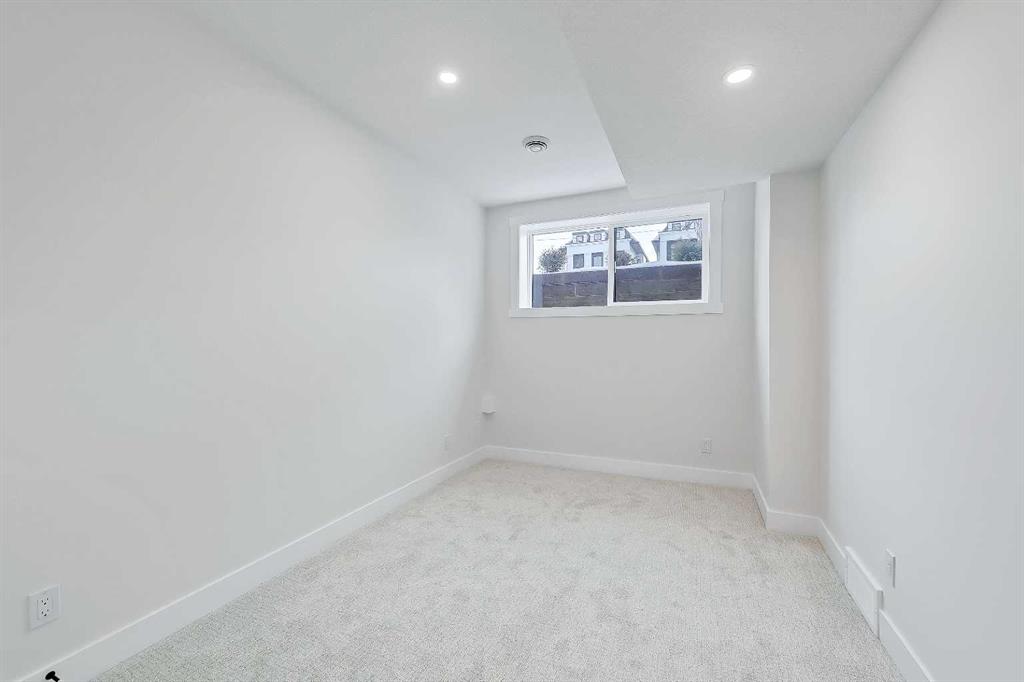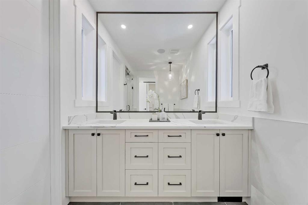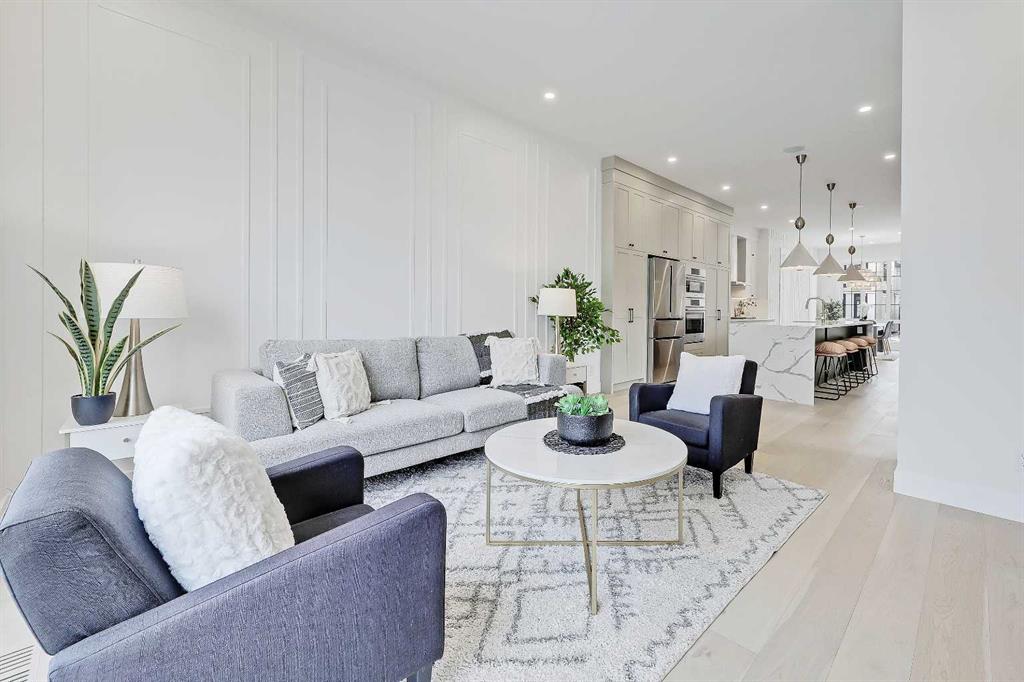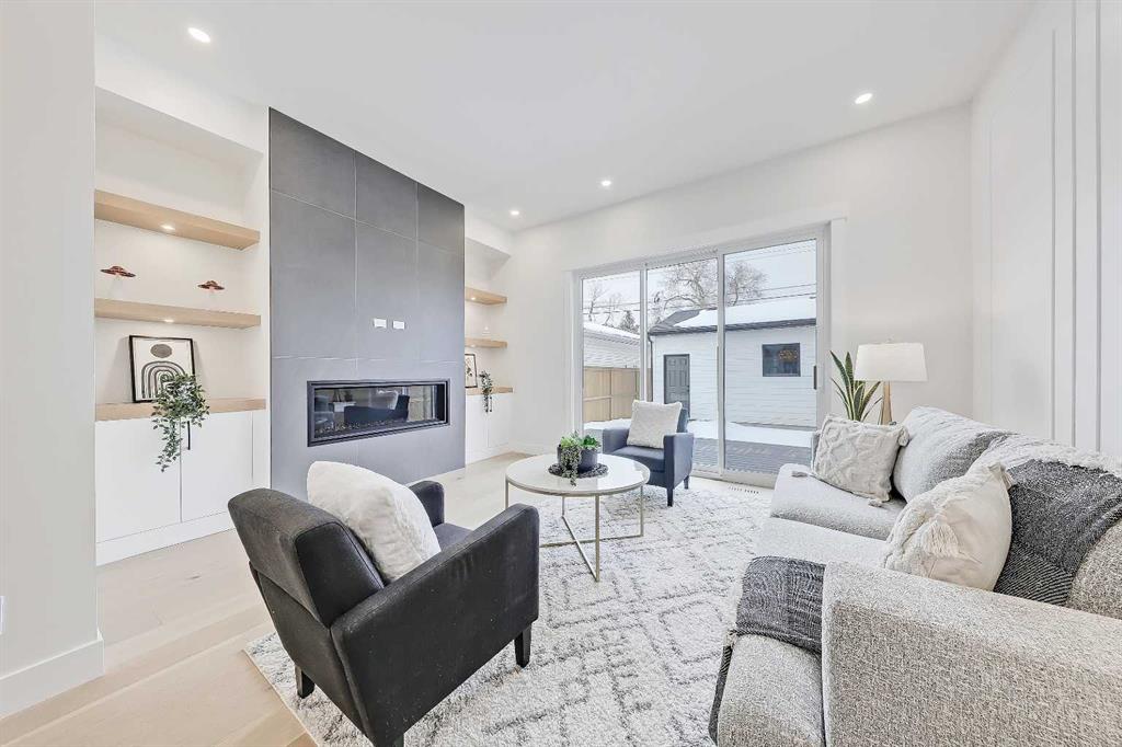 SEE MULTIMEDIA LINKS FOR FULL DETAILS* This fully-developed and move-in-ready detached infill is a refined blend of architectural presence, thoughtful functionality and timeless design. Featuring over 2,655 sq. ft. of finished, bright living space (more than 1,900 sq. ft. above grade), this home includes 4 bedrooms, 3.5 bathrooms, and a double detached garage. This home was built by a custom inner-city builder, renowned for their meticulous attention to detail. Designed with the focus on beauty and natural lighting, this home provides instant luxury that exceeds expectations. The open-concept main floor is defined by 10-foot flat painted ceilings and wide-plank hardwood flooring throughout. A bright entryway with a generous front hall closet lead into the sun-filled dining area, where oversized windows create an inviting atmosphere. The living room is anchored by a linear gas fireplace with a full-height tile surround, offering warmth and understated elegance. A discreet powder room with quartz countertops and custom cabinetry, along with a rear mudroom featuring built-in storage and backyard access completes the space. At the heart of the home, the chef-inspired central kitchen makes a striking statement with an oversized 13-foot quartz waterfall island, ceiling-height shaker cabinetry, full-height tile backsplash, and a premium Bosch appliance package, including a gas cooktop, wall oven, French door refrigerator, chimney-style hood fan, built-in microwave, and integrated dishwasher—delivering both performance and timeless appeal. Upstairs, 9-foot ceilings and engineered hardwood flooring continue throughout. The primary retreat offers a vaulted ceiling, oversized windows, built-in speakers, and flexible space for a reading nook or home office. The spa-like 5-piece ensuite features heated tile floors, a freestanding soaker tub, dual vanities with quartz counters, and a fully tiled walk-in shower with rainfall head, body jets, and steam rough-in. Two additional bedrooms with walk-in closets, a beautifully finished main bath, and a dedicated laundry area complete the upper level. The bright, fully developed basement features 9-foot ceilings, plush carpeting, a spacious rec room with a wet bar, a large fourth bedroom with a walk-in closet, and a 4-piece bathroom. Thoughtfully prepared for a future legal basement suite, it includes a framed second exterior door, in-floor heat rough-in, future kitchen wiring, laundry rough-ins, and a 200-amp electrical panel. The exterior showcases Hardie board and brick siding, exposed aggregate walkways, full landscaping, and a large composite deck with a BBQ gas line. The home is backed by a Builder Warranty and Progressive 10-Year New Home Warranty. Ideally located in Capitol Hill, just minutes to downtown, SAIT, U of C, North Hill Centre, parks, schools, transit, and major routes—offering effortless inner-city living with enduring value.