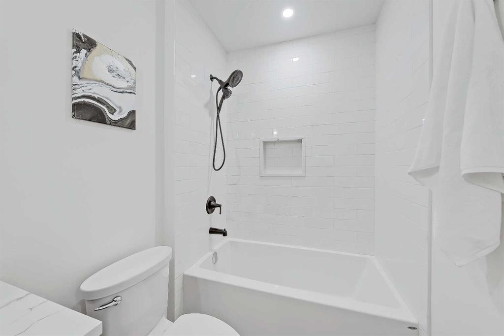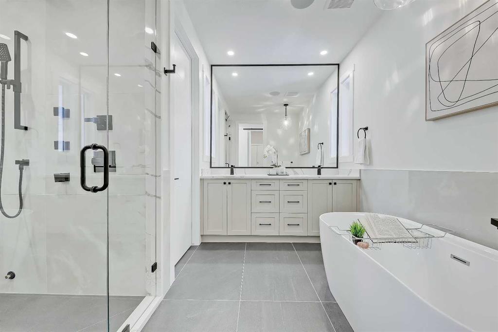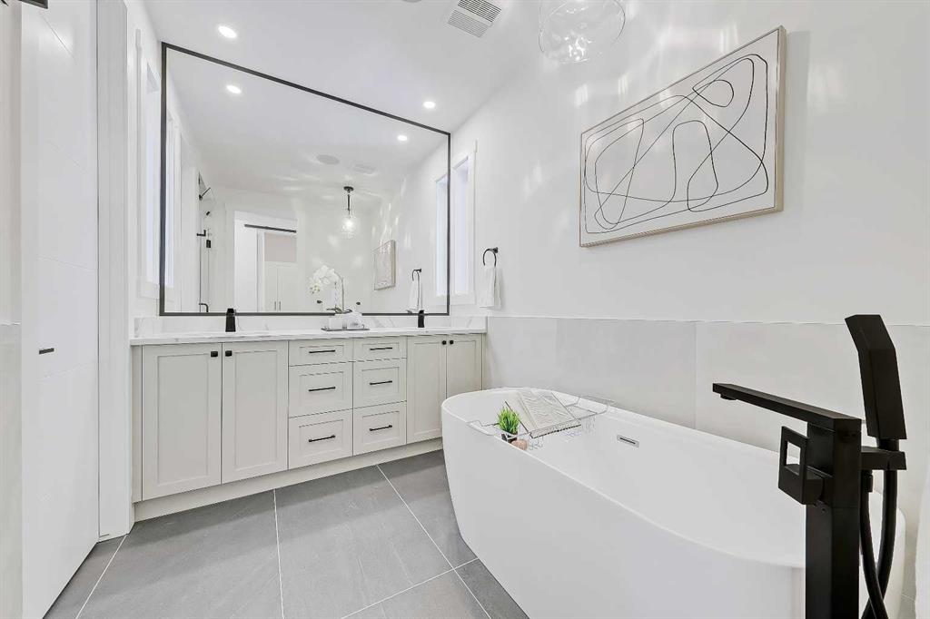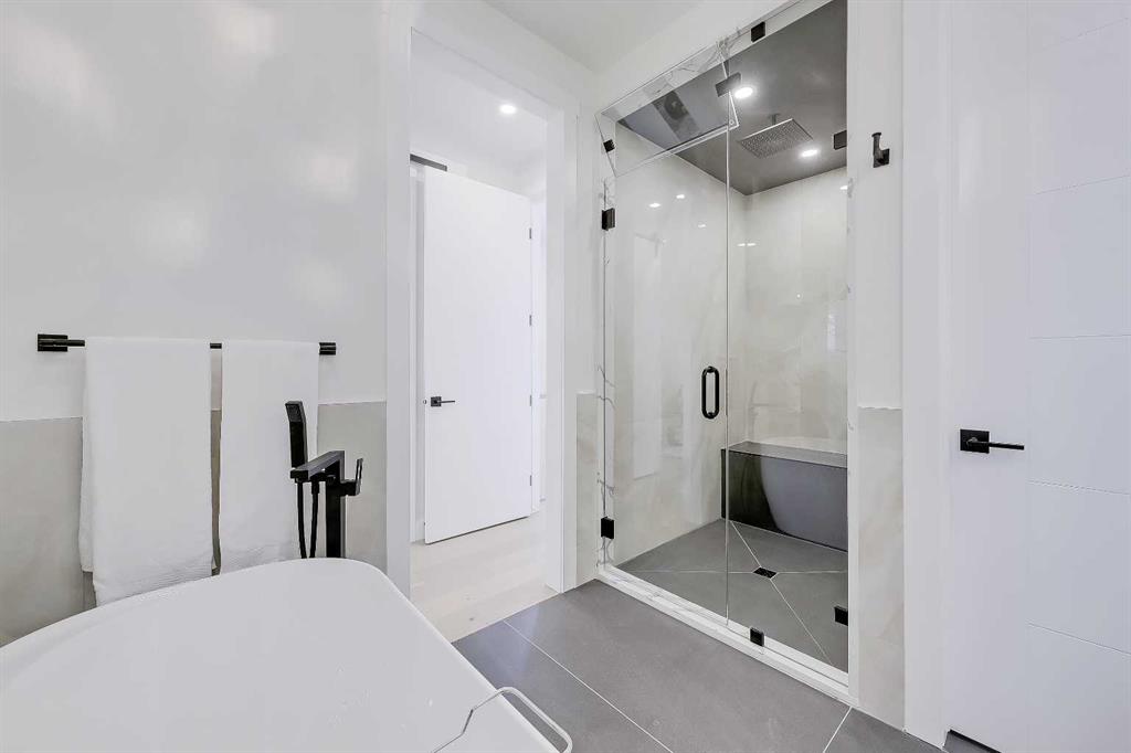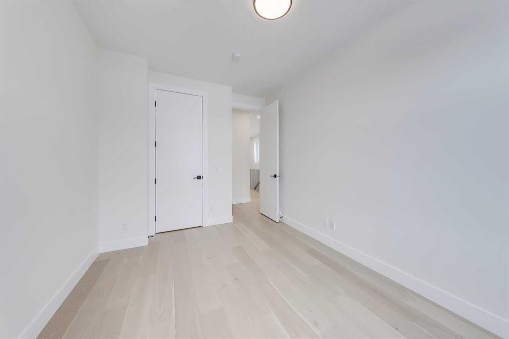 SEE MULTIMEDIA LINKS FOR FULL DETAILS* This fully-developed and move-in-ready detached infill is a refined blend of architectural presence, thoughtful functionality and timeless design. Featuring over 2,655 sq. ft. of finished, bright living space (more than 1,900 sq. ft. above grade), this home includes 4 bedrooms, 3.5 bathrooms, and a double detached garage. This home was built by a custom inner-city builder, renowned for their meticulous attention to detail. Designed with the focus on beauty and natural lighting, this home provides instant luxury that exceeds expectations. The open-concept main floor is defined by 10-foot flat painted ceilings and wide-plank hardwood flooring throughout. A bright entryway with a generous front hall closet lead into the sun-filled dining area, where oversized windows create an inviting atmosphere. The living room is anchored by a linear gas fireplace with a full-height tile surround, offering warmth and understated elegance. A discreet powder room with quartz countertops and custom cabinetry, along with a rear mudroom featuring built-in storage and backyard access completes the space. At the heart of the home, the chef-inspired central kitchen makes a striking statement with an oversized 13-foot quartz waterfall island, ceiling-height shaker cabinetry, full-height tile backsplash, and a premium Bosch appliance package, including a gas cooktop, wall oven, French door refrigerator, chimney-style hood fan, built-in microwave, and integrated dishwasher—delivering both performance and timeless appeal. Upstairs, 9-foot ceilings and engineered hardwood flooring continue throughout. The primary retreat offers a vaulted ceiling, oversized windows, built-in speakers, and flexible space for a reading nook or home office. The spa-like 5-piece ensuite features heated tile floors, a freestanding soaker tub, dual vanities with quartz counters, and a fully tiled walk-in shower with rainfall head, body jets, and steam rough-in. Two additional bedrooms with walk-in closets, a beautifully finished main bath, and a dedicated laundry area complete the upper level. The bright, fully developed basement features 9-foot ceilings, plush carpeting, a spacious rec room with a wet bar, a large fourth bedroom with a walk-in closet, and a 4-piece bathroom. Thoughtfully prepared for a future legal basement suite, it includes a framed second exterior door, in-floor heat rough-in, future kitchen wiring, laundry rough-ins, and a 200-amp electrical panel. The exterior showcases Hardie board and brick siding, exposed aggregate walkways, full landscaping, and a large composite deck with a BBQ gas line. The home is backed by a Builder Warranty and Progressive 10-Year New Home Warranty. Ideally located in Capitol Hill, just minutes to downtown, SAIT, U of C, North Hill Centre, parks, schools, transit, and major routes—offering effortless inner-city living with enduring value.