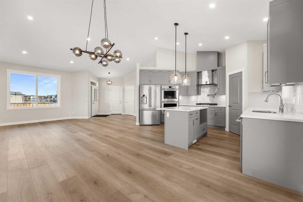 Now Under Construction in The Vistas! This 1,460 sq. ft. bungalow is a rare opportunity to own a high-quality, thoughtfully designed home in one of Olds’ most desirable communities. Built by a trusted local builder, this presale home features 3 bedrooms (or 2 with a beautiful office), 2 full bathrooms, and a well-appointed layout ideal for modern living. The open-concept main floor offers large windows and high-end finish options throughout. The gourmet kitchen is designed with function and style in mind, select options such as a gas stove, pot filler, under-cabinet lighting, and ample storage. The living and dining areas flow seamlessly to a west-facing covered deck that is perfect for entertaining or relaxing. The spacious primary suite includes a walk-in closet and a beautiful 3-piece ensuite with a custom-tiled shower. You’ll also enjoy the convenience of main floor laundry and a bright, dedicated office space. Additional highlights include a large double car attached garage, R24 wall insulation, R50 attic insulation, 200-amp electrical service, and durable composite decking. Situated in The Vistas, this home offers direct access to walking paths, parks, and Olds’ shopping district. Still time to personalize select finishes—don’t miss your chance to make this beautiful new home your own!