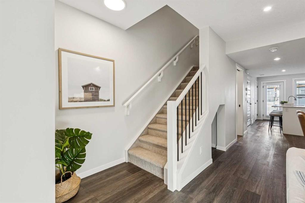 Welcome to your brand new Zen Mahogany condo that combines smart design, everyday comfort, and exceptional location. This 2-storey Ambrosia Floorplan is built with energy efficiency top of mind, going beyond the standard. It features superior insulation that exceeds building codes by 40%, double-coated triple-pane windows, and a fresh air system (HRV) to ensure year-round comfort and air quality. Inside, quartz countertops, stainless steel appliances, and luxury vinyl plank flooring offer a clean, modern aesthetic with lasting durability. The open-concept layout welcomes you with a bright living area that flows naturally into the dining space and stylish kitchen, complete with a central island and direct access to the fenced yard—perfect for both everyday living. Upstairs, two generously sized bedrooms each offer their own private ensuite, providing both functionality and privacy. The Ambrosia layout is both functional and beautiful, perfect for you and your pets to enjoy—that's right, this home is pet friendly! Beyond the home itself, you’ll enjoy access to Mahogany’s Westman Village just a few blocks away—a vibrant lifestyle hub filled with dining, fitness, and entertainment options. Access to Lake Mahogany and the Beach Club is an additional feature, giving you access to amazing recreational amenities, community events, and a space for connection. Quick routes to Deerfoot and Stoney Trail and close proximity to the South Health Campus in Seton ensure your daily commute and errands are always easy. This isn’t just a home—it’s a lifestyle upgrade. Come see what Mahogany living in the ZEN Mahogany community will look like for you!