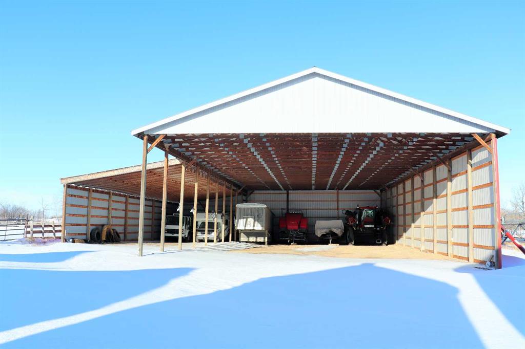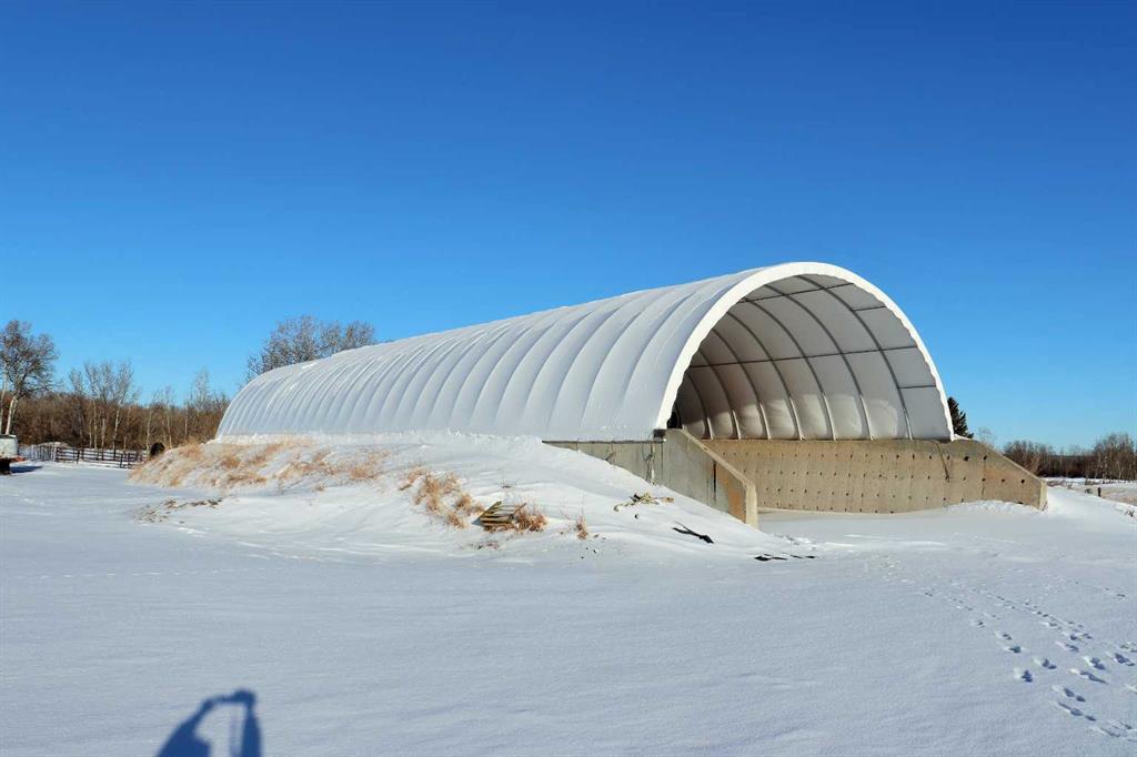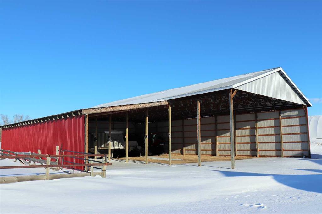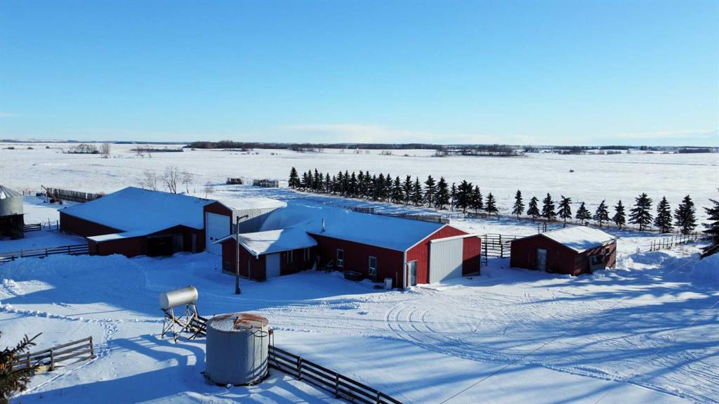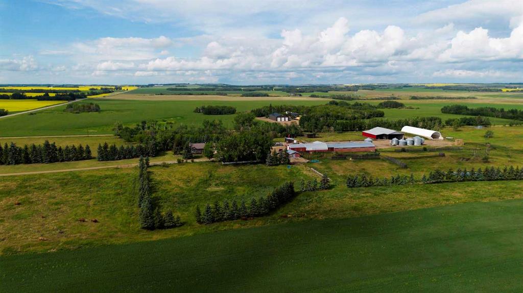 Acreage / Agri-Business Opportunity on Pavement in Central Alberta. Exceptional 37.83 acre property offering a rare combination of a family home, extensive agricultural infrastructure, and great views. Ideal for livestock, equestrian, crop production, or agri-business ventures, this well-established acreage features a mature treed shelterbelt and developed yard site with expansive south and west views overlooking the surrounding countryside and Samson Lake. The 1,370 sq. ft. bungalow offers a highly functional floor plan with three bedrooms on the main level and two additional bedrooms downstairs. The family styled kitchen and dining area flows into a comfortable living room featuring a wood stove and large windows that capture the stunning views. The primary bedroom includes a walk-through closet and 4-piece ensuite. The main floor also has the 2nd and 3rd bedrooms and another 4 pc bathroom. The fully finished basement with in-floor heat provides a generous family room, two bedrooms, a 3-piece bathroom, and direct access to the garage. A spacious main entry offers ample closet space and a convenient 2-piece bathroom. The attached 2 car garage is heated. Step outside to enjoy the peaceful setting from the 16’ x 18’ partially covered deck, perfect for relaxing or entertaining. With nearly 40 acres, the land is well-suited for a variety of agricultural uses. The property is perimeter and cross-fenced and includes a dugout, corrals, livestock shelter, and waterers. An impressive lineup of outbuildings supports a wide range of agricultural and commercial operations, including mechanical, welding, carpentry, trucking, storage and more. Buildings include a 32’ x 20’ serviced workshop, 86’ x 30’ (with partitions) heated multi-use shop, 112’ x 54’ storage / loose-housing barn, 50’ x 100’ hay or equipment shed with lean-to, power and 18’ overhead clearance, 140’ x 36’ former silage pit with concrete floor and walls, topped with a high-quality PVC roof structure. Steel grain bins on concrete pads providing approximately 17,000 bushels of storage. There is a surface lease with annual income of $3,300+- . All of this is ideally located on paved Secondary Highway 822, offering easy access to Ponoka, Wetaskiwin, Bashaw, and Camrose.
