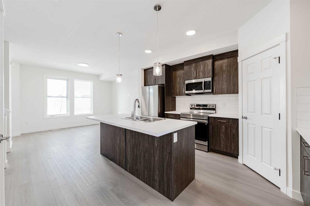 Welcome to 1921 McCaskill Drive, a brand new home by Creation Homes offering space, flexibility, and future rental potential in an extremely convenient location. This home features 4 bedrooms, 3.5 washrooms, and approximately 1,367 sq ft above grade, with 668 sq ft on both the main and second floors, plus a fully finished basement offering about 631 sq ft of additional living space. The basement includes a bedroom, rough-ins for a future kitchen, and a separate entrance, making it ideal for future rental income or extended family living. The property also includes a 2-car detached garage, a good-sized backyard, and faces a green space while backing onto a walking trail, providing added privacy and outdoor enjoyment. Located close to schools of all levels, coffee shops, pharmacies, a medical clinic, and a fitness center — all within a quick 2-minute drive. Enjoy unbeatable connectivity with just 7 minutes to CrossIron Mills, 7 minutes to Airdrie, 15 minutes to Calgary International Airport, and only 30 minutes to Downtown Calgary, all made easy with fast access to Highway 2.