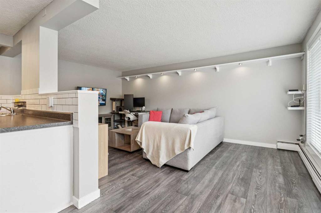 Welcome to an one-bedroom condominium on a tranquil, tree-lined street in Sunalta. Spanning a generous 600 square feet, this residence features an open, sun-filled plan that enhances everyday living and entertaining. The spacious living area comfortably accommodates a full range of furnishings and offers abundant storage solutions. The open-concept kitchen is ideal for culinary endeavors and social gatherings, while a large patio door invites in natural light and provides access to a serene outdoor space. A convenient designated parking spot adds to the overall ease of ownership. The bedroom provides ample dimensions with adaptable storage options to suit various needs. In addition, the unit includes a washer/dryer hookup, with additional laundry facilities available within the building for added convenience. The property has been thoughtfully upgraded, featuring vinyl plank flooring and fresh interior paint. Pet lovers will be pleased to know that pets are permitted with board approval. Condo fees encompass heat, water, parking, reserve fund contributions, professional management, and landscaping/snow removal, delivering exceptional value for an outstanding property. The location offers proximity to tennis courts, the vibrant 17th Avenue corridor with its diverse shops, cafes, and entertainment, as well as nearby parks and gardens. Easy access to downtown Calgary and multiple dining options enhances the urban lifestyle. Whether you are a first-time buyer initiating your homeownership journey or a discerning investor seeking a vibrant downtown milieu without excessive noise, this residence delivers the best of Sunalta living. Schedule your private showing at your earliest convenience.