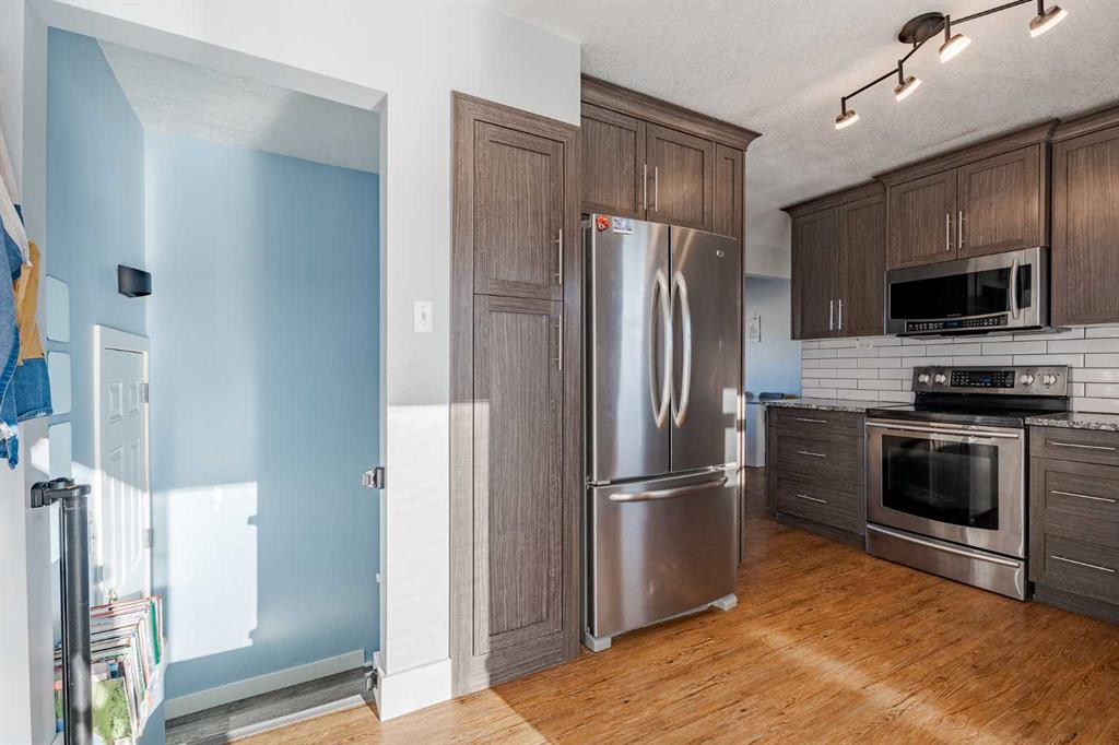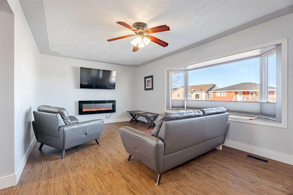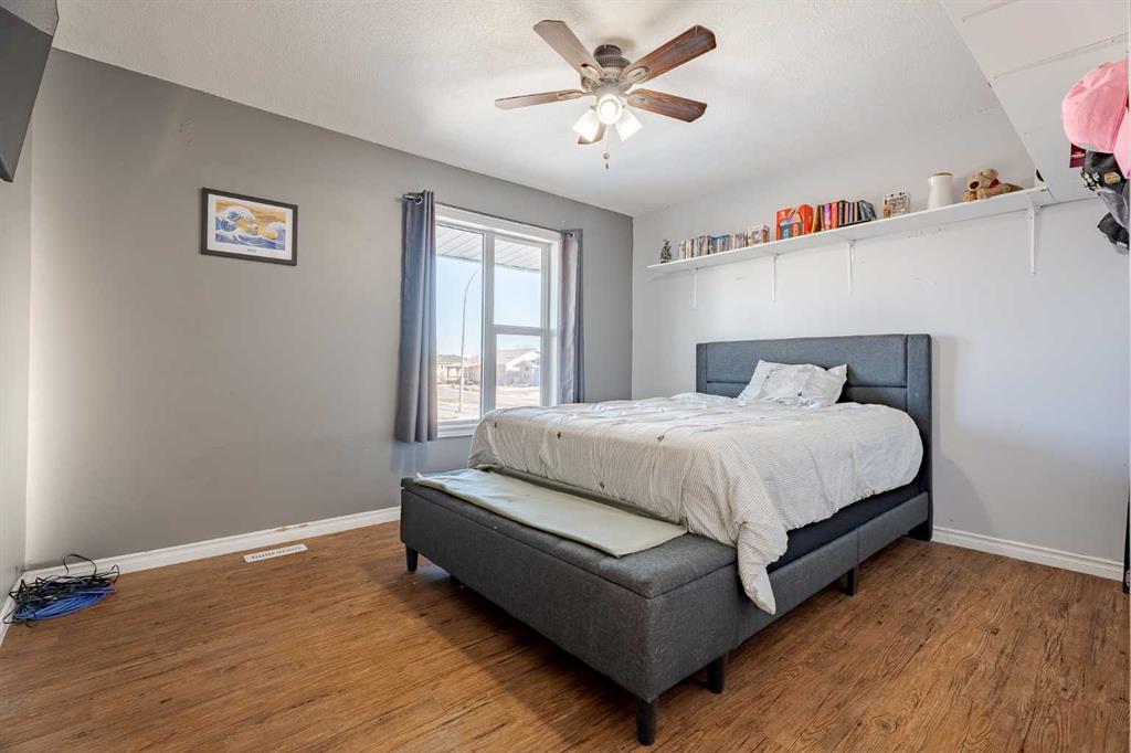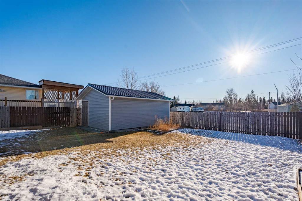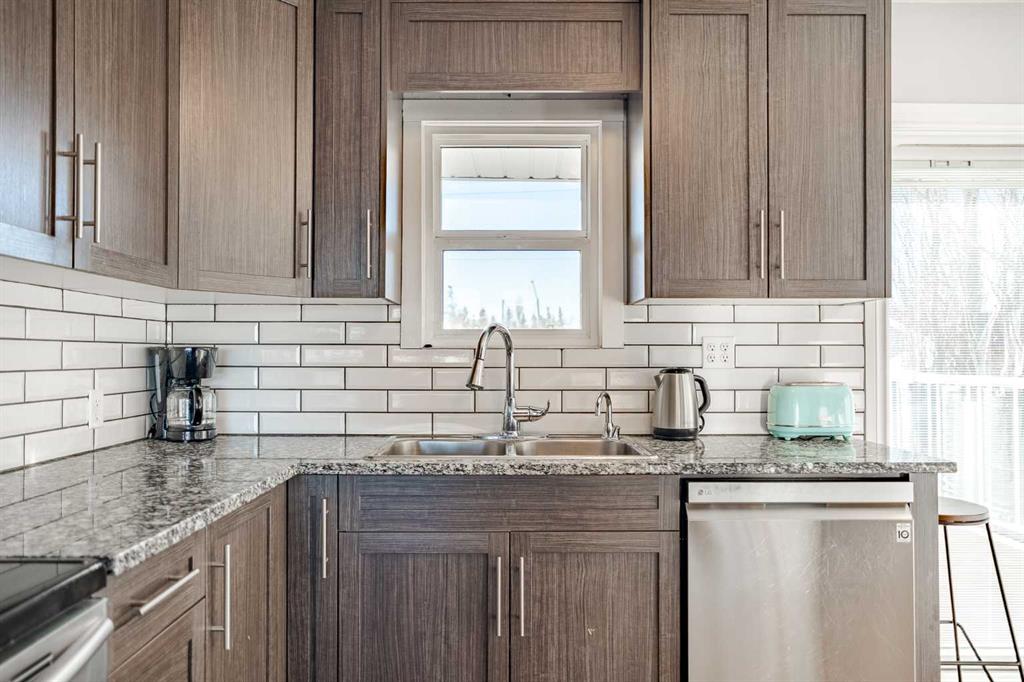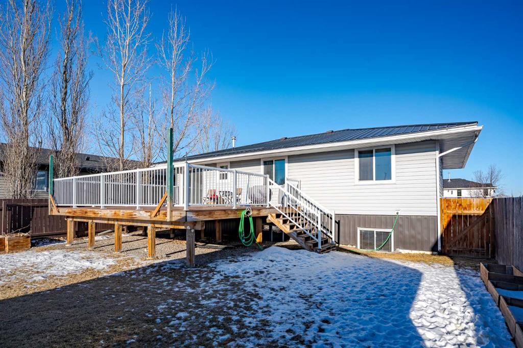 Welcome to this beautifully maintained detached bungalow located on a quiet, picturesque street in the charming town of Stavely, Alberta. Offering over 2,000 square feet of fully developed living space, this home combines thoughtful updates, durable construction, and small-town tranquility. The main level features over 1,000 square feet above grade with three well-sized bedrooms and a recently renovated 4-piece bathroom. Modern vinyl flooring, upgraded appliances, and elegant granite countertops add a fresh, contemporary feel throughout the home. The fully developed basement provides an additional 1,000+ square feet of living space, perfect for extended family or guests. It includes a large recreational area, two bedrooms, and a spacious 5-piece ensuite complete with luxurious in-floor heating, creating a warm and comfortable retreat year-round. Built for long-term reliability, the home is equipped with a durable ICF block foundation, a metal roof, and a newly installed sump pump—ideal for buyers seeking quality construction and peace of mind. Step outside to the expansive backyard, where you’ll find an oversized composite deck designed to withstand the elements with minimal maintenance. The generous yard offers ample space to relax, garden, or entertain, and is complemented by a massive shed measuring 21 feet 9 inches by 16 feet—perfect for storage, hobbies, or keeping everything neatly organized. Set on a quiet street surrounded by well-kept homes and manicured front yards, this property reflects pride of ownership throughout the neighborhood. Living in Stavely means enjoying a family-friendly community known for its peaceful atmosphere, large lot sizes, and welcoming small-town charm—all while being within easy reach of nearby amenities and surrounding communities. This is a fantastic opportunity to own a solid, thoughtfully updated home in a serene and close-knit Alberta town.