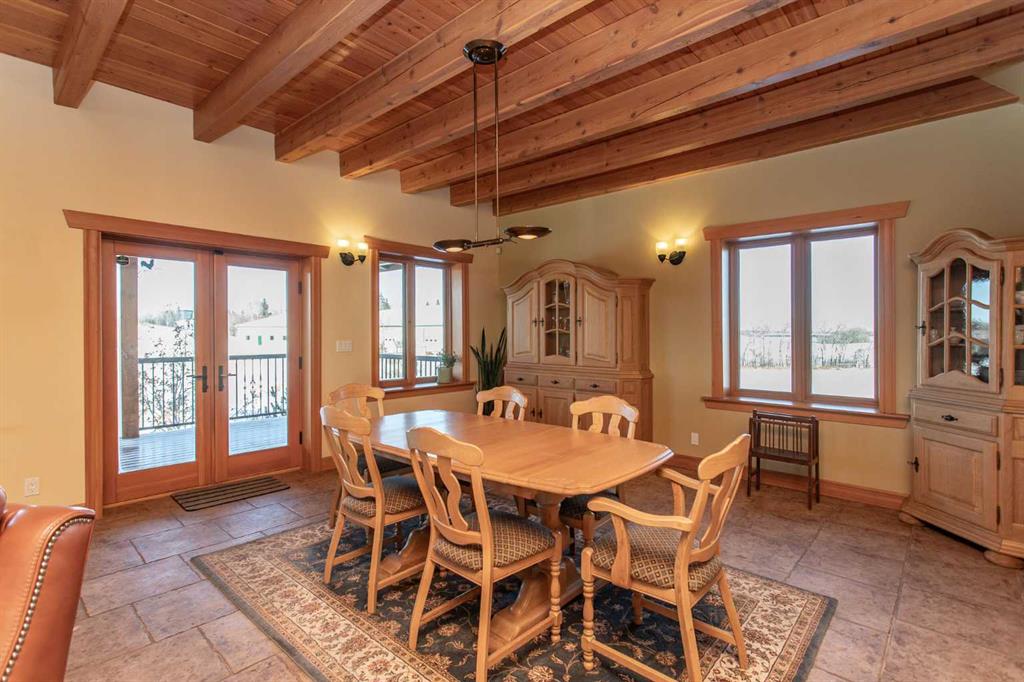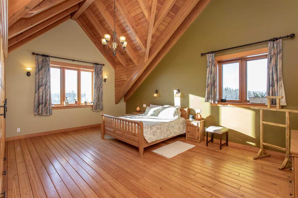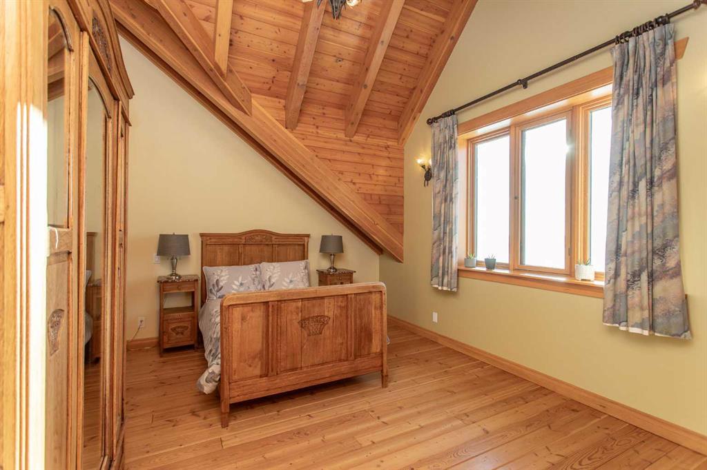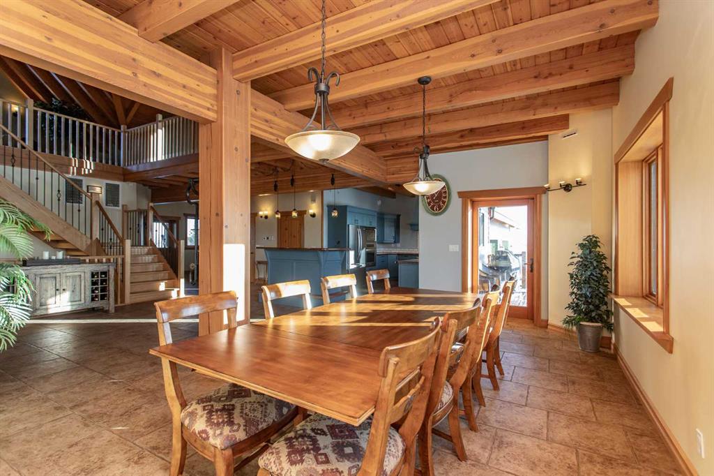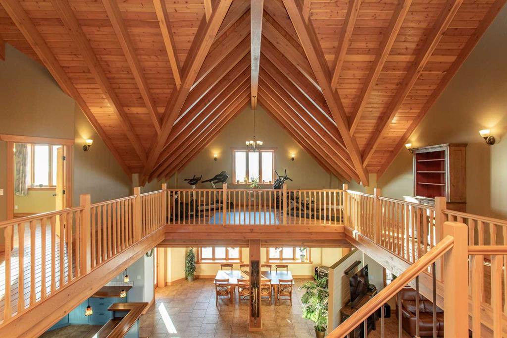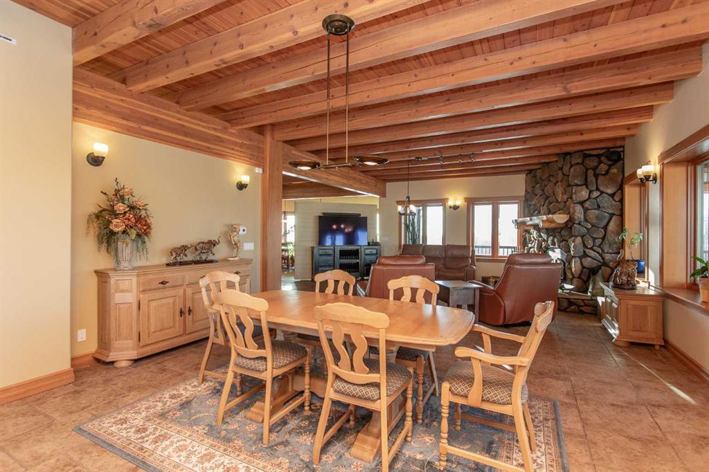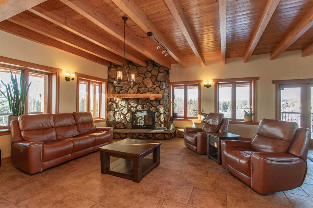 This exceptional 6.5-acre property offers a rare blend of architectural distinction, quality construction, and thoughtful design, set against sweeping panoramic views just minutes from Lacombe. Zoned Ag and meticulously maintained, the manicured yard site is peaceful, private and designed for both lifestyle enjoyment and long-term efficiency. At the heart of the property is a stunning European-inspired, chalet-style two-storey home built in 2008, offering over 7,000 sq ft of developed living space. Constructed entirely with ICF concrete (no stick framing), the home is remarkably solid, quiet, and energy efficient, featuring one-foot-thick exterior walls, concrete floors throughout, and a Super-B insulated roof. Inside, Douglas Fir post-and-beam construction, soaring ceilings, an interior mezzanine, and an open-concept layout create a warm, inviting atmosphere filled with natural light. Covered balconies and walkout basement invite you to enjoy seamless indoor-outdoor living. Fine craftsmanship is evident throughout, from fir hardwood and custom ash cabinetry to walnut countertops and travertine-finished bathrooms. The main living and dining areas are spacious and welcoming, anchored by a beautiful wood-burning fireplace. The kitchen is thoughtfully designed with a center island, wood countertops, new appliances, and generous cabinetry. The primary suite offers a true retreat, with a luxurious 5-piece ensuite. Additional bedrooms and flexible upper-level space provide options for a gym, studio, or quiet reading nook. The lower level is equally well designed, featuring a wine cellar, indoor sauna, recreation area, dedicated laundry room, and a hobby or canning room with sink. Comfort and efficiency are seamlessly integrated with a hybrid geothermal heating and cooling system, in-floor radiant heat on all levels with individual room controls, triple-pane windows, advanced air filtration, humidity control, and zoned HRV systems. The oversized heated attached garage (29’ x 39’) reflects the same quality, offering ICF construction, vaulted ceilings, floor drains, and water service. Completing the property is an impressive 13,500 sq ft shop, fully insulated and heated with radiant heat. With 14-ft ceilings, six overhead doors, mezzanine, office, kitchen, bathroom, mechanical rooms, 220V services, air compressor lines, floor drains, and a 20kVA diesel backup generator, the space is ideal for business use, storage, or hobbies. Additional highlights include a drilled well, new septic field for the residence, geothermal field with 16 vertical heat exchangers, an outdoor firepit, and a 3.5-acre lifetime easement providing added usable land while preserving long-term privacy. Designed to truly live, work, and play in one location, this estate-level acreage offers exceptional flexibility for large families, extended family living, and entrepreneurial or home-based business opportunities. Properties of this caliber must be seen to be fully appreciated.