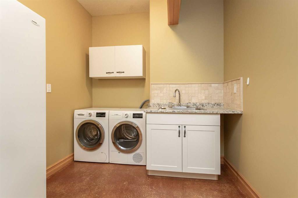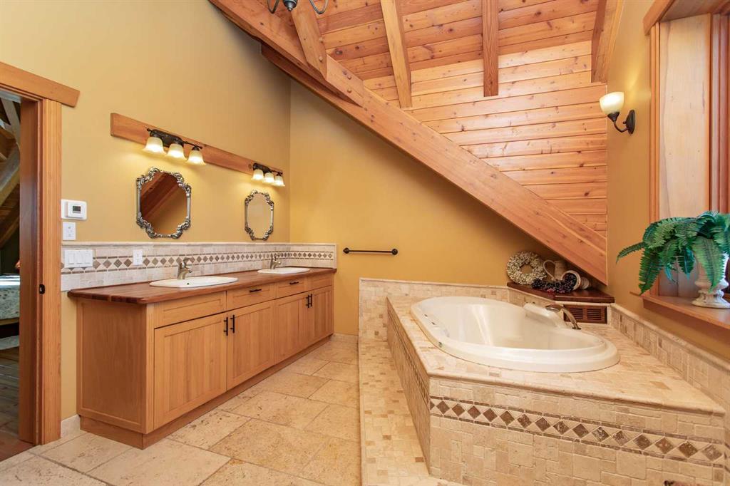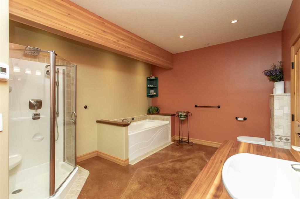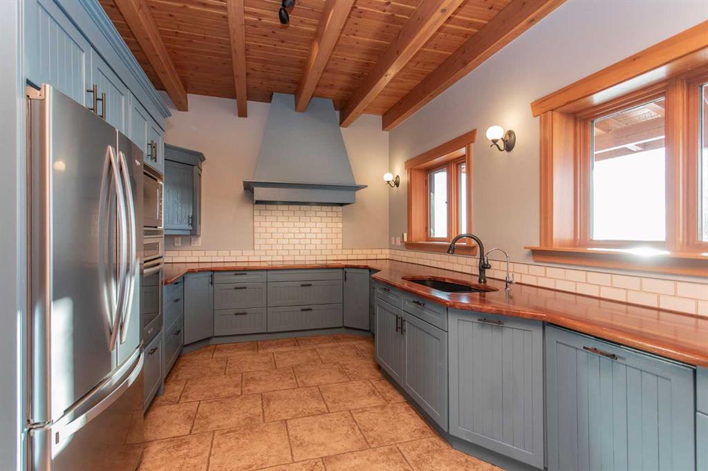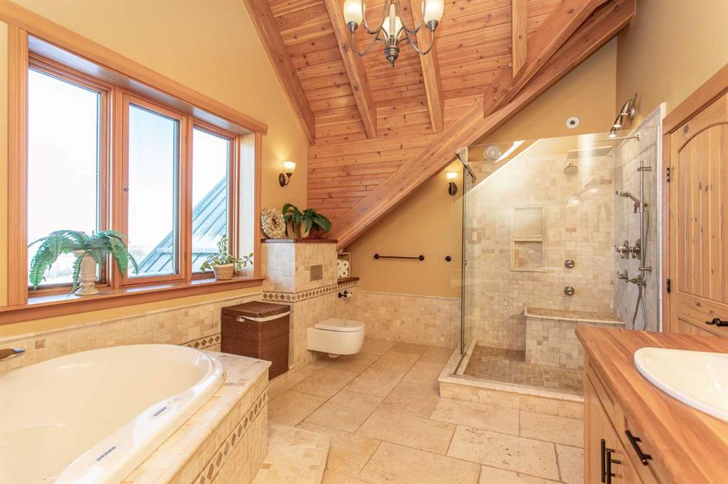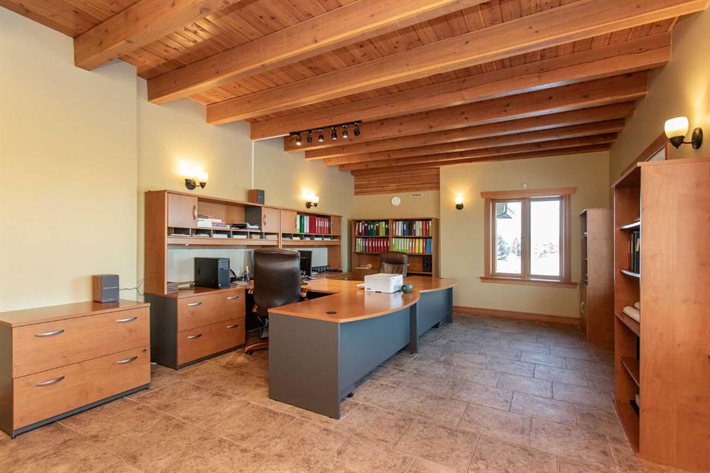 This exceptional 6.5-acre property offers a rare blend of architectural distinction, quality construction, and thoughtful design, set against sweeping panoramic views just minutes from Lacombe. Zoned Ag and meticulously maintained, the manicured yard site is peaceful, private and designed for both lifestyle enjoyment and long-term efficiency. At the heart of the property is a stunning European-inspired, chalet-style two-storey home built in 2008, offering over 7,000 sq ft of developed living space. Constructed entirely with ICF concrete (no stick framing), the home is remarkably solid, quiet, and energy efficient, featuring one-foot-thick exterior walls, concrete floors throughout, and a Super-B insulated roof. Inside, Douglas Fir post-and-beam construction, soaring ceilings, an interior mezzanine, and an open-concept layout create a warm, inviting atmosphere filled with natural light. Covered balconies and walkout basement invite you to enjoy seamless indoor-outdoor living. Fine craftsmanship is evident throughout, from fir hardwood and custom ash cabinetry to walnut countertops and travertine-finished bathrooms. The main living and dining areas are spacious and welcoming, anchored by a beautiful wood-burning fireplace. The kitchen is thoughtfully designed with a center island, wood countertops, new appliances, and generous cabinetry. The primary suite offers a true retreat, with a luxurious 5-piece ensuite. Additional bedrooms and flexible upper-level space provide options for a gym, studio, or quiet reading nook. The lower level is equally well designed, featuring a wine cellar, indoor sauna, recreation area, dedicated laundry room, and a hobby or canning room with sink. Comfort and efficiency are seamlessly integrated with a hybrid geothermal heating and cooling system, in-floor radiant heat on all levels with individual room controls, triple-pane windows, advanced air filtration, humidity control, and zoned HRV systems. The oversized heated attached garage (29’ x 39’) reflects the same quality, offering ICF construction, vaulted ceilings, floor drains, and water service. Completing the property is an impressive 13,500 sq ft shop, fully insulated and heated with radiant heat. With 14-ft ceilings, six overhead doors, mezzanine, office, kitchen, bathroom, mechanical rooms, 220V services, air compressor lines, floor drains, and a 20kVA diesel backup generator, the space is ideal for business use, storage, or hobbies. Additional highlights include a drilled well, new septic field for the residence, geothermal field with 16 vertical heat exchangers, an outdoor firepit, and a 3.5-acre lifetime easement providing added usable land while preserving long-term privacy. Designed to truly live, work, and play in one location, this estate-level acreage offers exceptional flexibility for large families, extended family living, and entrepreneurial or home-based business opportunities. Properties of this caliber must be seen to be fully appreciated.