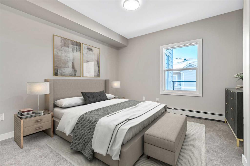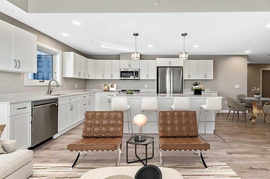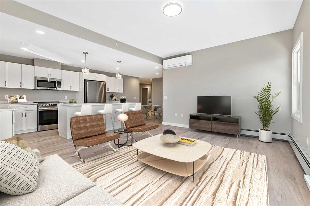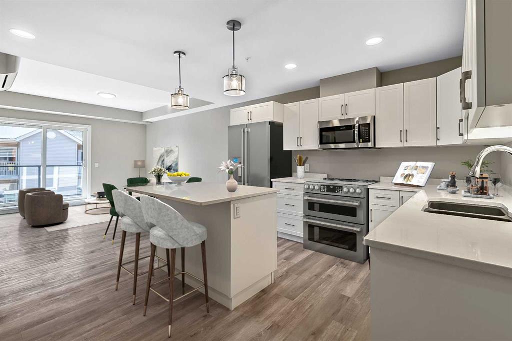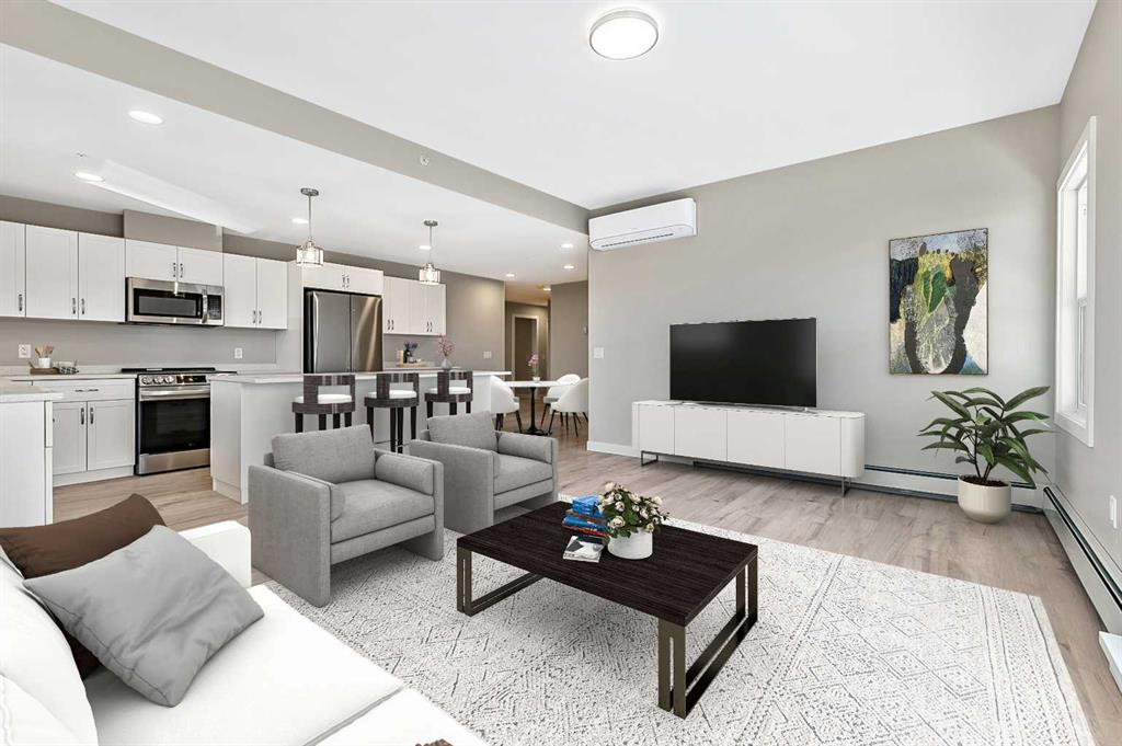 Welcome to modern condo living designed for comfort, quality, and convenience. Construction to start Spring of 2026! This well-appointed residence offers 9-foot ceilings, 8-inch hollowcore concrete floors, and a dual-wall construction system, providing exceptional durability and superior soundproofing. The open-concept kitchen is finished with quartz countertops, a large island with power and pendant lighting, built-in microwave and dishwasher, and a water line to the refrigerator for an ice maker—perfect for both everyday living and entertaining. Luxury vinyl plank flooring flows through the main living areas, with soft carpeted bedrooms offering a warm and comfortable retreat. Enjoy year-round comfort with split air conditioning units, LED lighting throughout, and the convenience of a gas line for your BBQ on the balcony. Each unit includes a private storage room accessible directly from the balcony, adding rare and practical extra space. The building offers thoughtful amenities including indoor heated parking, optional exterior garage units, a pet wash, designated outdoor pet relief and smoking areas, and a EV charging station. A professional decorating consultation is also included to help personalize your new home. Buyers have a rare opportunity to select finishings and tailor the space to their personal style. The Condo fees are $263.00 per month, and provide excellent value. They include heat, water, sewer, garbage collection, common area maintenance, building insurance, reserve fund contributions, water softening, groundskeeping, and snow removal—allowing for worry-free ownership. Ideal for professionals, downsizers, or investors seeking quality construction and low-maintenance living in a well-managed community. Listing photos are virtual staging and/or artists renderings.