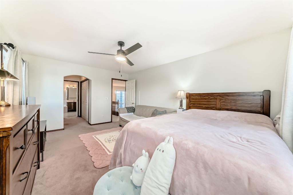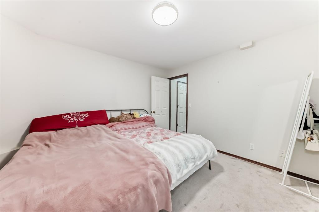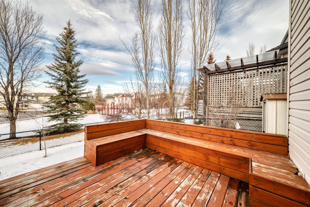 Located on a quiet street, this home backs directly onto a beautiful green space and playground. The seller has recently invested in quality updates, including a new two-tier deck, hardwood flooring, and a new refrigerator with gas stove. The main level features an open layout with soaring vaulted ceilings and 12-foot windows that fill the living and dining areas with natural light. The kitchen is finished with rich cherry-stained oak cabinets and a central island. The third level family room provides a large, comfortable living space. It offers a walk-out to the spacious two-tier deck, which is also accessible from the kitchen. The entire top floor is dedicated to the private master suite. This expansive space includes double walk-through closets and a large ensuite bathroom with a jetted tub, separate shower, and a skylight. The ground level provides a private bedroom and a full bathroom, making it ideal for guests or roommates. On the fourth level, you will find a laundry area with a washer and dryer, plenty of storage space, and a flexible room perfect for an office or hobby room. New roofing in 2023 and water heater in 2024. The location provides easy access to Deerfoot Trail and shopping at 130 Ave SE. Douglasdale School is a short walk away, and there is a playground right behind the backyard.