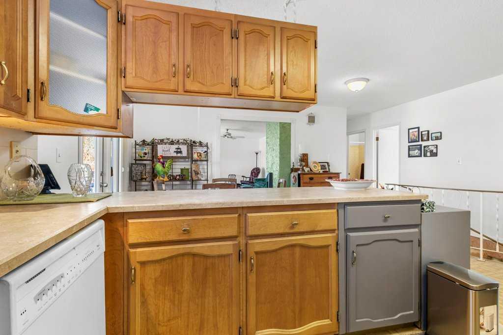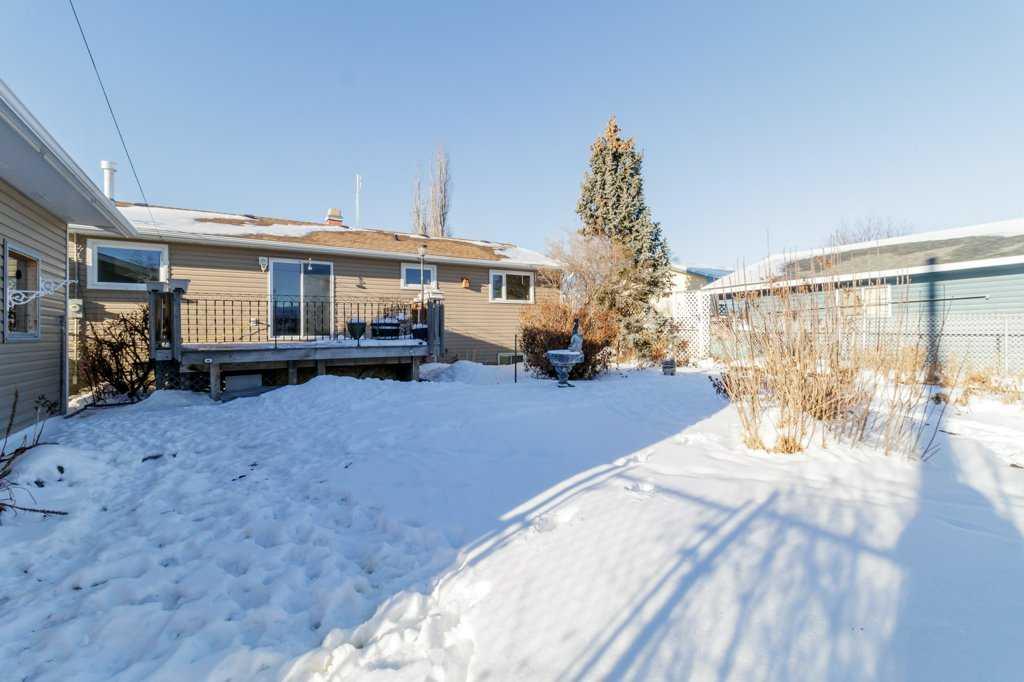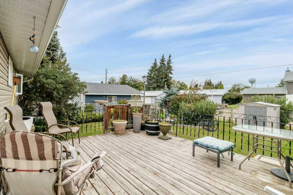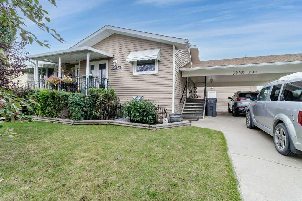 Welcome to this bright, freshly painted bungalow nestled in the quiet and welcoming town of Eckville, where comfort, functionality, and small-town charm come together. A west-facing front entrance and deck create an inviting first impression, while a large bay window floods the living room with natural light. A wood-burning fireplace adds warmth and character, making the space especially cozy during the winter months. On the east side of the home, an 8' x 14' pressure-treated deck overlooks the backyard—an ideal spot for morning coffee or relaxed evening gatherings. The property offers excellent parking and storage options with a paved front driveway and carport, plus rear alley access to a double garage complete with an 8' overhead door. Inside, the main floor features a bright kitchen, two bedrooms including one with a convenient two-piece ensuite, a four-piece bathroom, and main-floor laundry for added ease. Recent upgrades include shingles less than 10 years old, windows replaced approximately 10 years ago, an upgraded electrical panel, and a hot water tank installed in 2021. The fully developed lower level provides additional living space with a large family room, a third bedroom, a half bathroom, and generous storage. A spiral staircase connects both levels, and a separate exterior entrance from the carport offers added flexibility and privacy. Additional features include hot water heating, a water softener, a built-in vacuum system, and a mature, beautifully treed yard that provides shade and privacy. This well-maintained home is move-in ready and perfectly suited for comfortable living in a friendly, community-oriented setting.