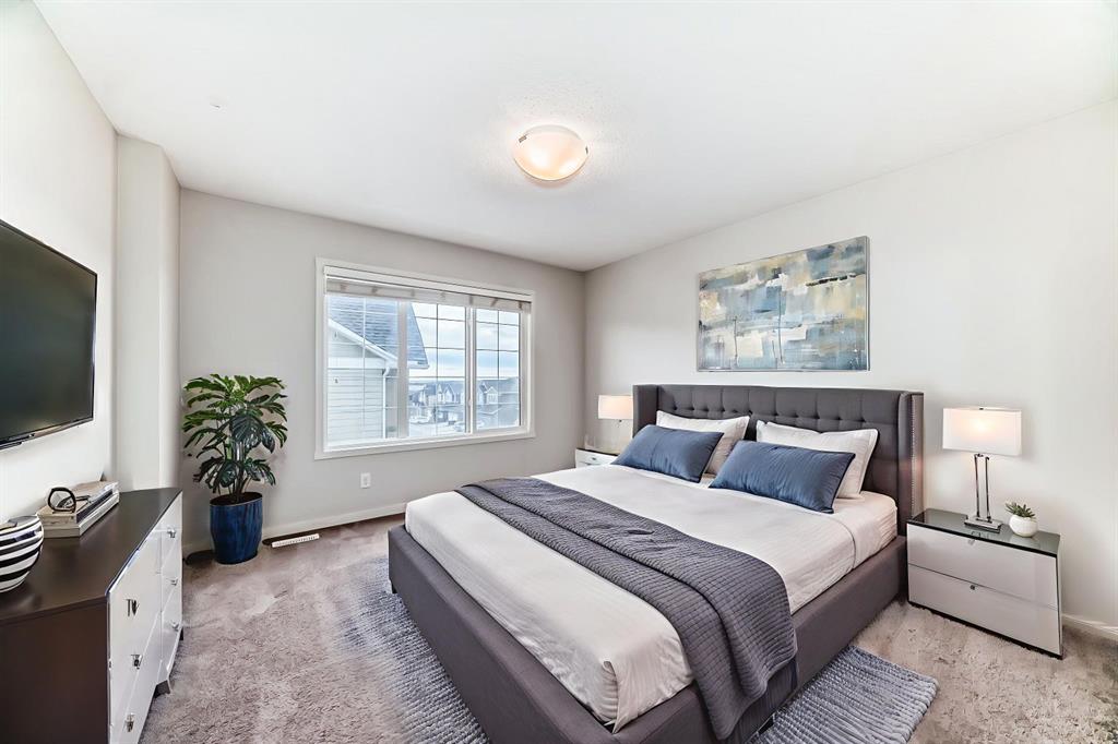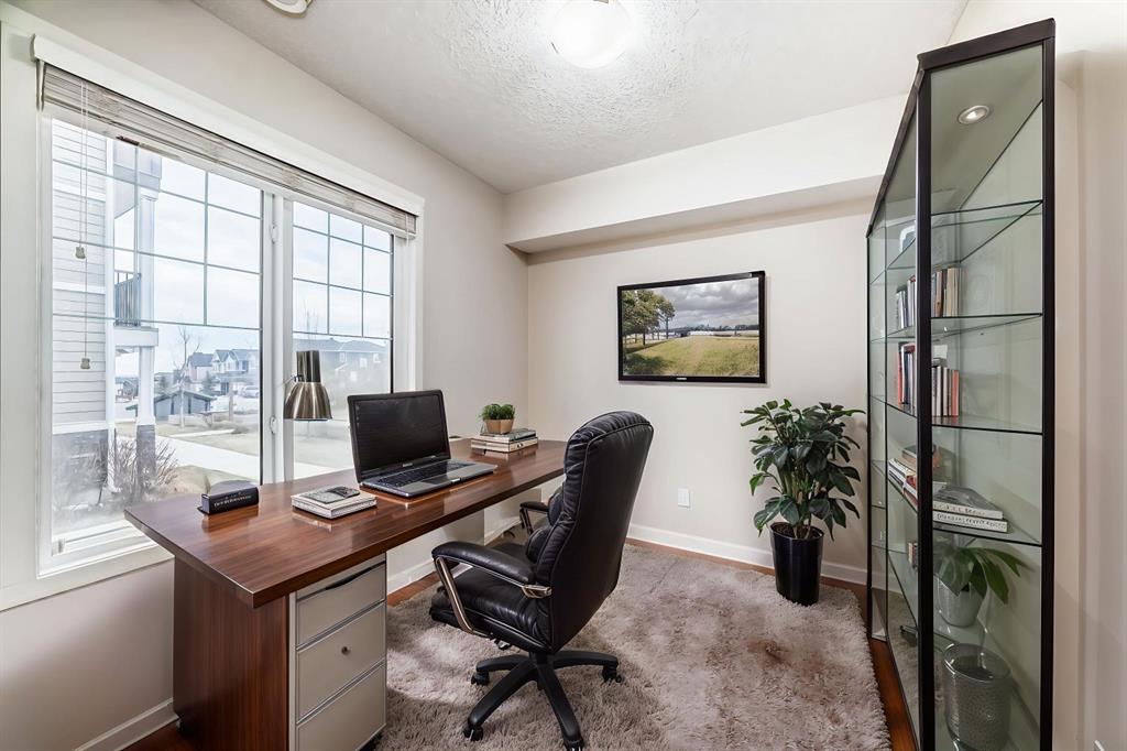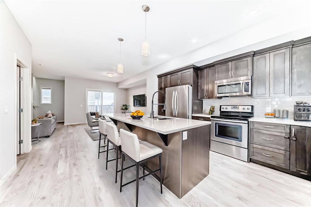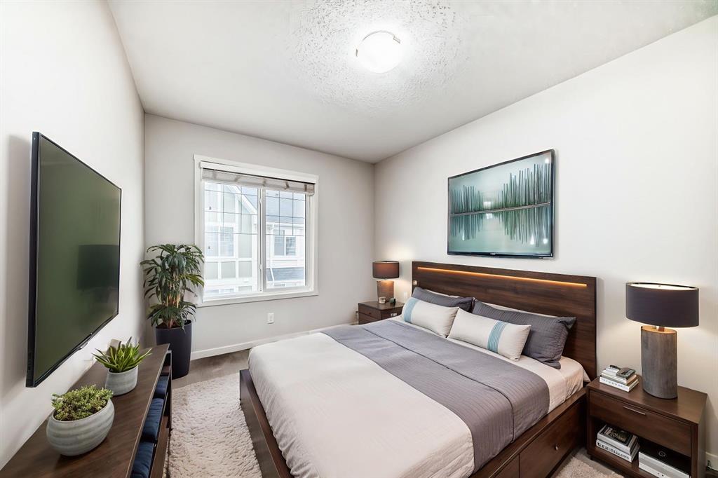 Welcome to this stunning EAST-FACING, three-storey END-UNIT townhouse nestled in the highly sought-after community of Nolan Hill! Offering 1,705 sq. ft. of thoughtfully designed living space, this modern home features 3 bedrooms, 2.5 bathrooms, a dedicated DEN or HOME OFFICE, and an INSULATED OVERSIZED DOUBLE ATTACHED GARAGE. Convenient visitor parking is located right next to the unit—perfect for hosting friends and family. FRESHLY PAINTED and PROFESSIONALLY CLEANED from top to bottom—including APPLIANCES and CARPETS—this home is truly move-in ready. Step inside to an inviting OPEN-CONCEPT main floor boasting 9-FT CEILINGS, contemporary laminate flooring, and abundant NATURAL LIGHT from TRIPLE-PANE WINDOWS. The chef-inspired kitchen is the centerpiece of the home, showcasing QUARTZ countertops, full-height SOFT-CLOSE cabinetry, a subway tile backsplash, and a massive center ISLAND with extra STORAGE. Complete with WHIRLPOOL STAINLESS STEEL appliances, this kitchen is ideal for both everyday cooking and entertaining. The bright east-facing living room opens to a large private BALCONY overlooking a beautifully landscaped courtyard—perfect for morning coffee or summer BBQs with the built-in GAS LINE. Upstairs, the primary suite offers a generous WALK-IN CLOSET and a luxurious ENSUITE with an oversized glass shower. Two additional bedrooms, a 4-piece main bath, and a convenient upper-level laundry area complete the top floor. Additional highlights include an energy-efficient HRV system, low-flush toilets, 2” faux wood blinds, triple-pane windows, and durable fiber cement siding with stone accents. The fully INSULATED and drywalled oversized double attached garage provides ample space for vehicles, STORAGE, or a home gym. Perfectly situated in a quiet, LANDSCAPED COURTYARD with green space and park benches, this home offers easy access to SCHOOLS, PARKS, walking paths, and PONDS. Enjoy quick connectivity to Sarcee Trail, Shaganappi Trail, and Stoney Trail, and take advantage of nearby amenities at Sage Hill Centre and Beacon Hill Shopping Centre—featuring Costco, Canadian Tire, restaurants, gyms, and more. This modern, move-in-ready townhome blends style, comfort, and convenience in one of NW Calgary’s most desirable communities. Book your private showing today!