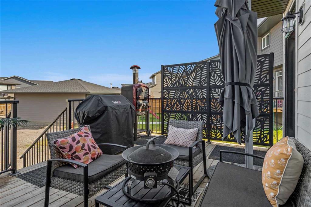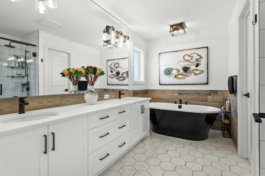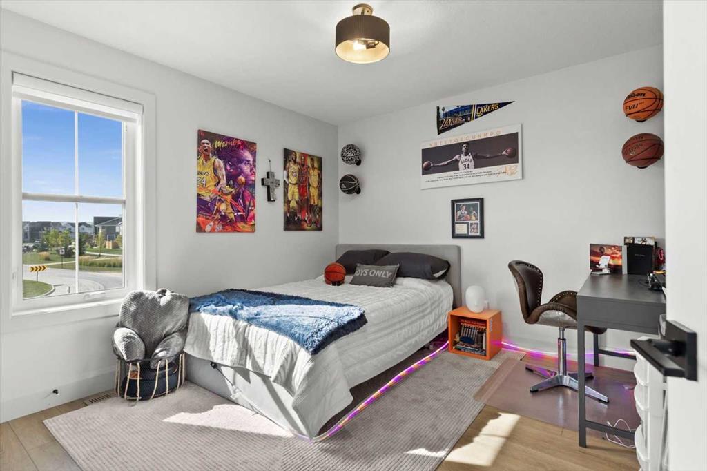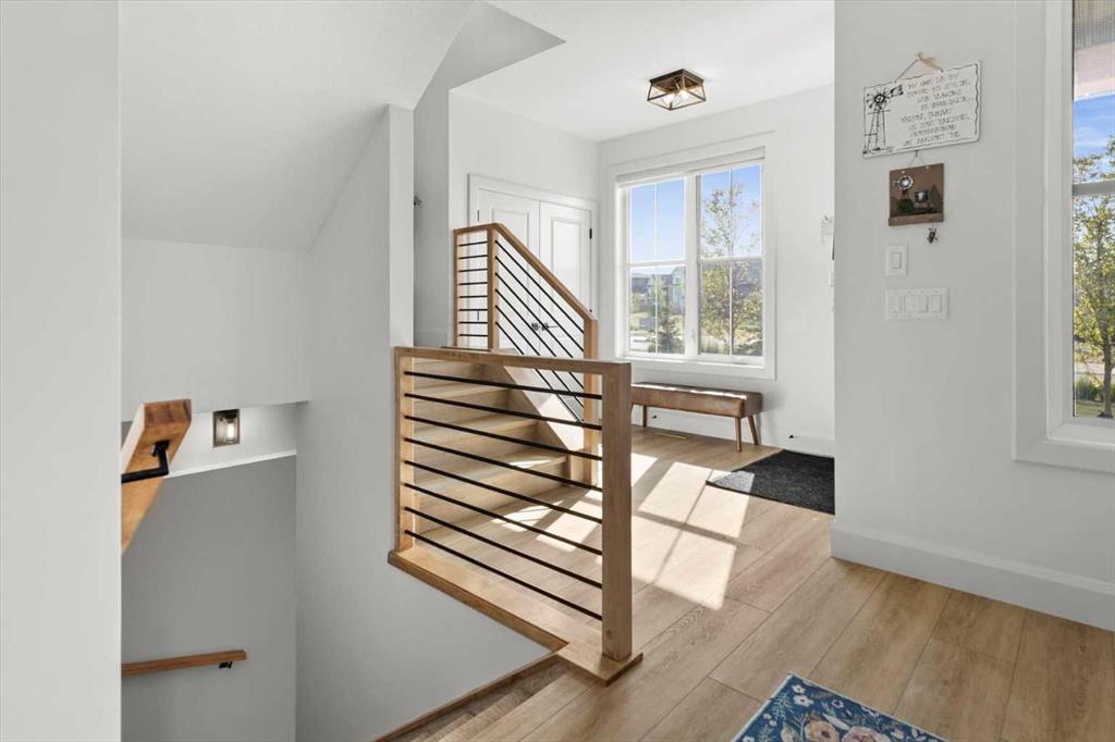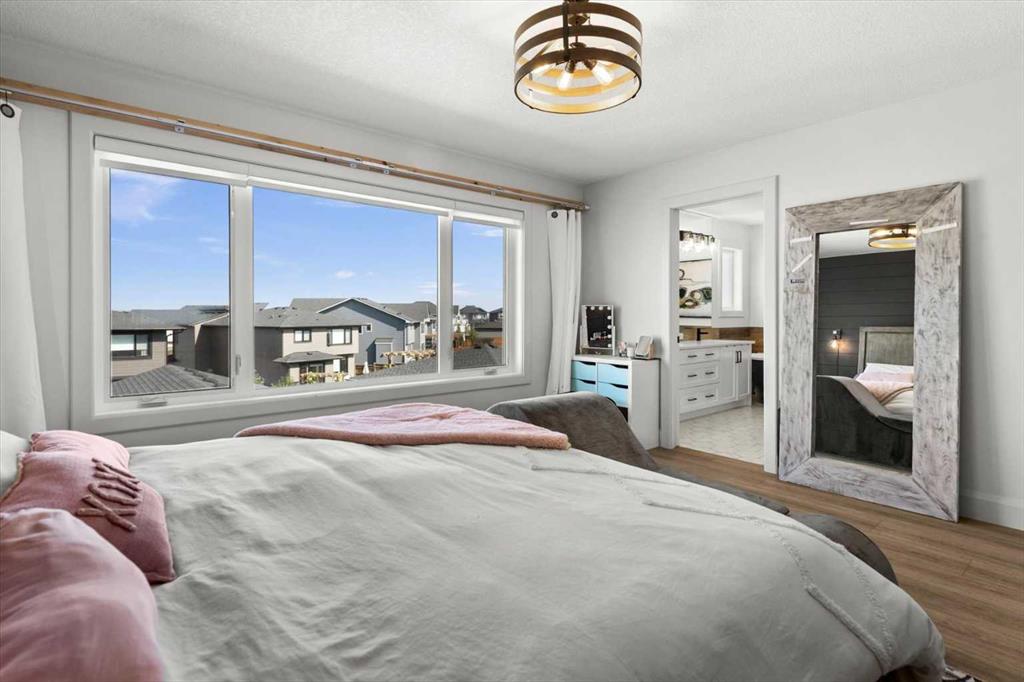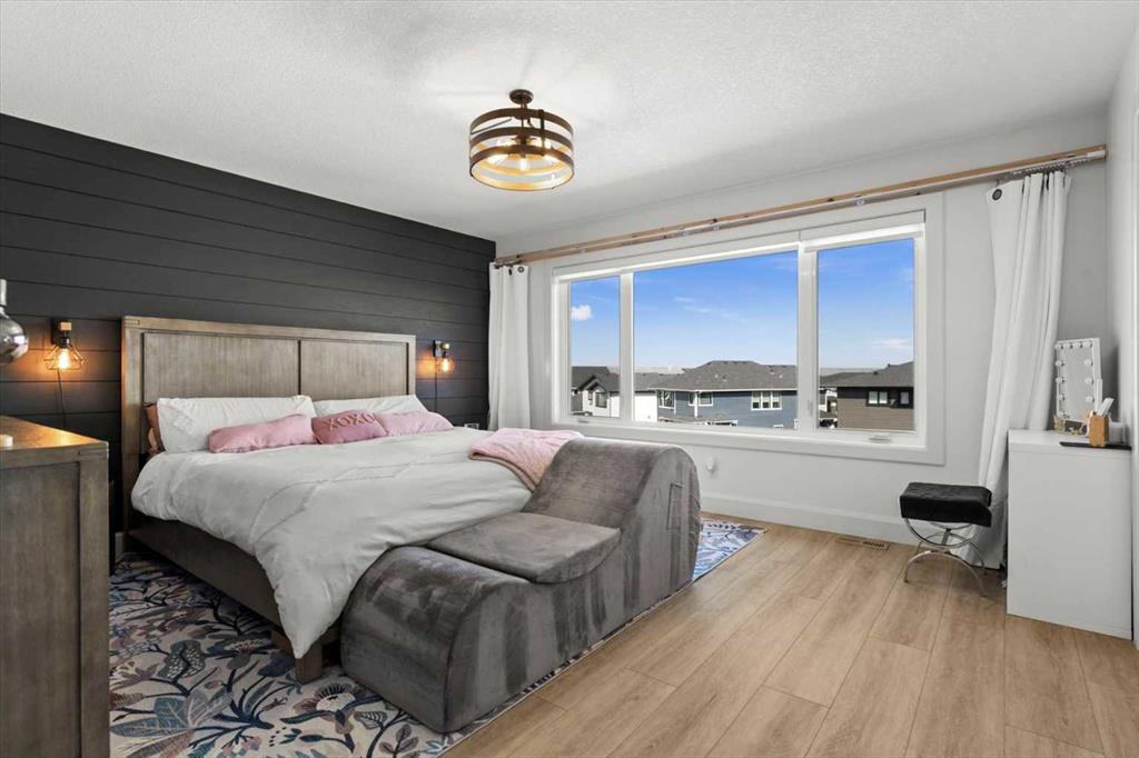 $5000 towards Landscaping-Located in the sought-after, award-winning community of Harmony, this newly built farmhouse-inspired modern design is sure to impress. With over 2,300 sq. ft. of thoughtfully designed living space and more than $40,000 in upgrades, this Broadview-built home is the perfect family retreat, complete with a double detached garage and plenty of storage options throughout. Move-in ready with thoughtfully selected upgraded finishes, it’s designed for both comfort and style. The main floor, with abundant natural light and large windows, features an open-concept living and dining area, a modern chef’s kitchen with quartz countertops, beautiful backsplash and stainless steel appliances, a private office, and a stylish powder room. Step outside to your dream oasis, a full-length deck with a custom built pergola, privacy walls, BBQ area, lounge space, outdoor lighting and hot tub—perfect for entertaining or relaxing evenings. Upstairs, a modern bonus room provides an exceptional space for relaxing, alongside two bedrooms with closet organizers, a 5-piece bathroom, and a laundry room with plenty of additional storage. The primary suite is spacious and bright with large windows, featuring a spa-inspired 5-piece ensuite with beautiful tile, a modern freestanding tub, and a large walk-in closet. The basement remains undeveloped, ready for your personal touch. Additional highlights include gemstone lighting, air conditioning, water softener, premium flooring, custom built-ins, upgraded staircase railings, and upgraded lighting and tile throughout. The yard is an open canvas awaiting your green thumb—perfect for creating your own outdoor oasis. Combined with striking curb appeal, a functional family-friendly layout, and Harmony’s exceptional amenities—including scenic lakes, pathways, golf course, and welcoming community spirit—this farmhouse-inspired home truly has it all. Conveniently located across from the school bus stop, it’s an ideal family home. VIRTUAL TOUR AVAILABLE.