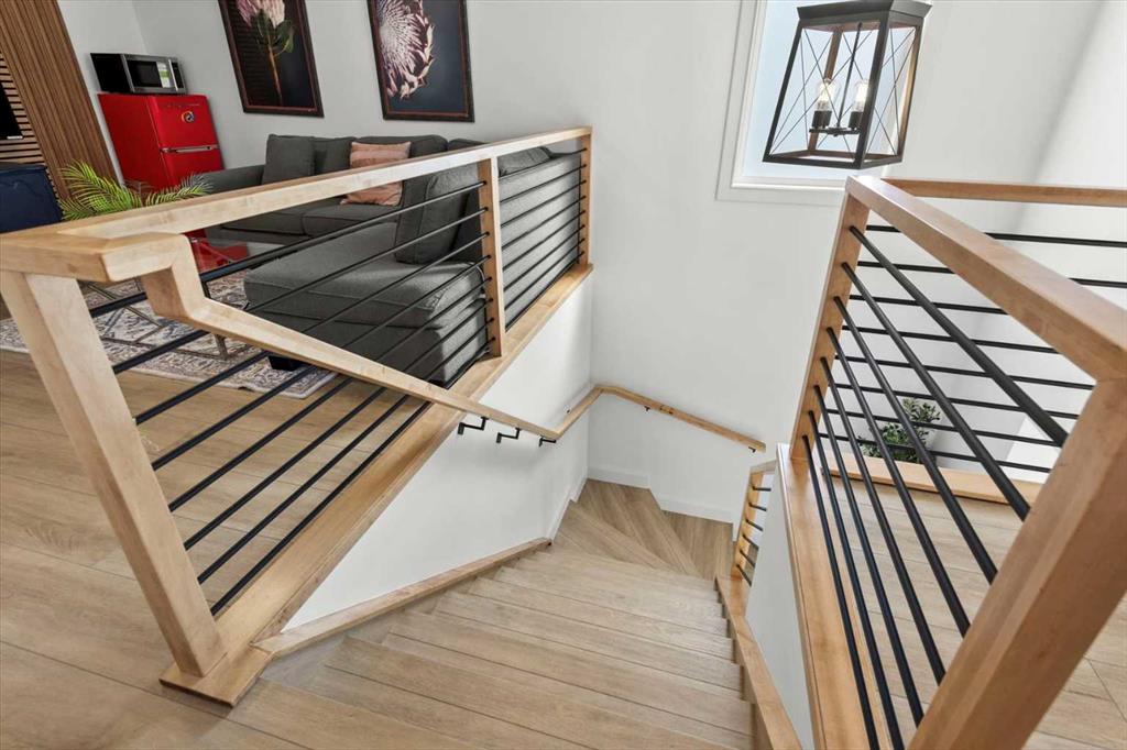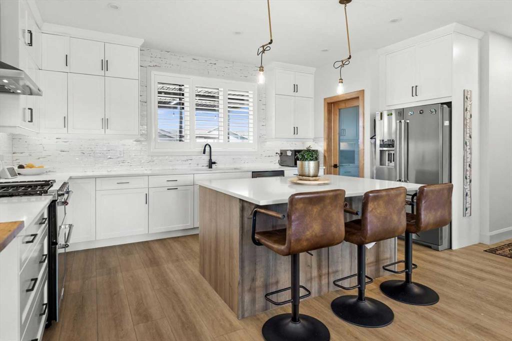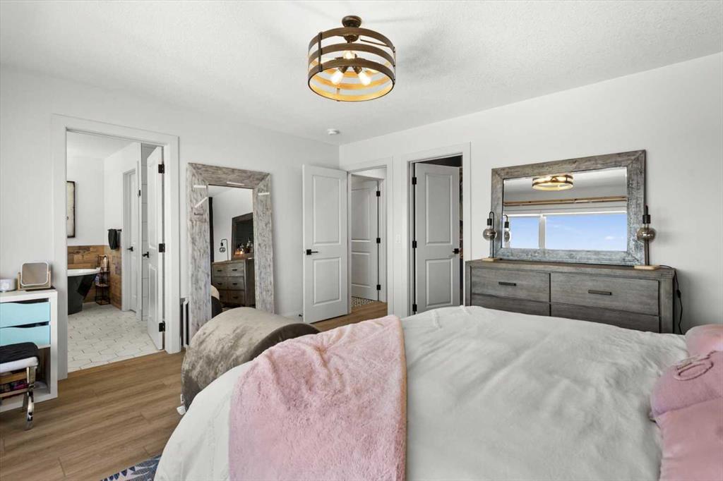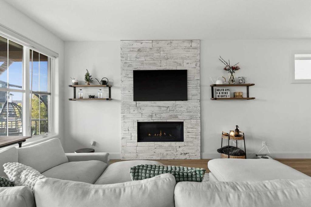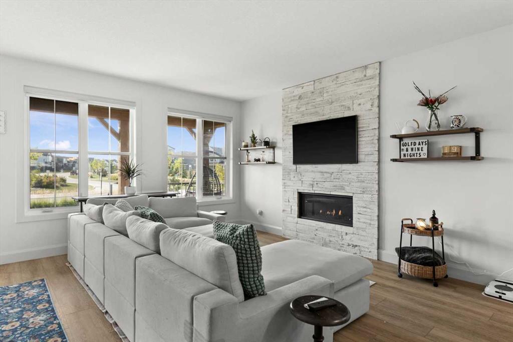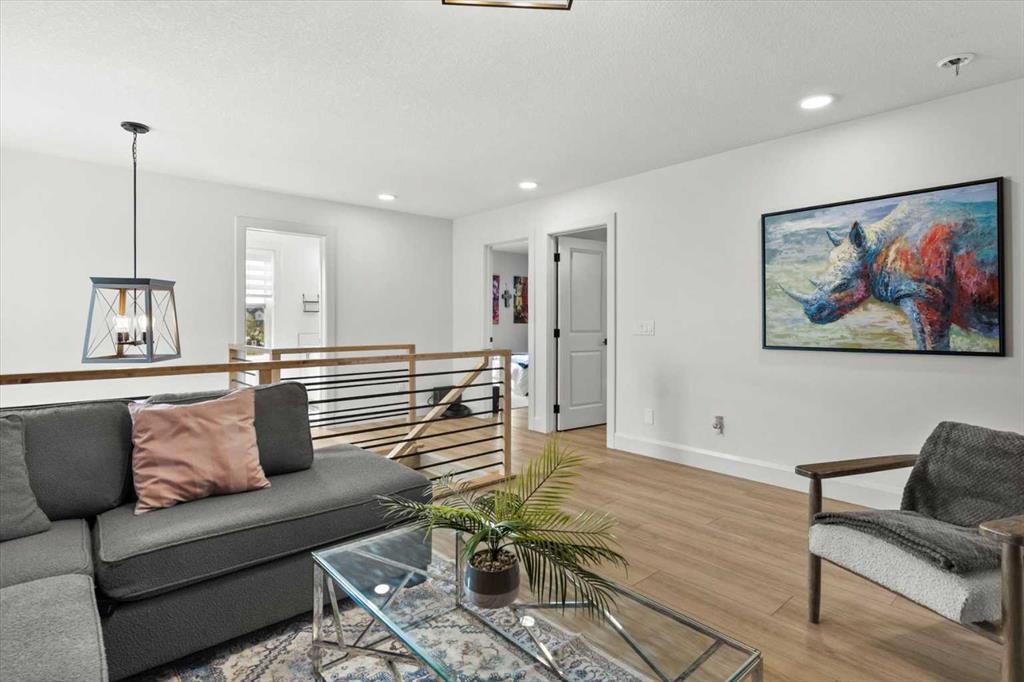 $5000 towards Landscaping-Located in the sought-after, award-winning community of Harmony, this newly built farmhouse-inspired modern design is sure to impress. With over 2,300 sq. ft. of thoughtfully designed living space and more than $40,000 in upgrades, this Broadview-built home is the perfect family retreat, complete with a double detached garage and plenty of storage options throughout. Move-in ready with thoughtfully selected upgraded finishes, it’s designed for both comfort and style. The main floor, with abundant natural light and large windows, features an open-concept living and dining area, a modern chef’s kitchen with quartz countertops, beautiful backsplash and stainless steel appliances, a private office, and a stylish powder room. Step outside to your dream oasis, a full-length deck with a custom built pergola, privacy walls, BBQ area, lounge space, outdoor lighting and hot tub—perfect for entertaining or relaxing evenings. Upstairs, a modern bonus room provides an exceptional space for relaxing, alongside two bedrooms with closet organizers, a 5-piece bathroom, and a laundry room with plenty of additional storage. The primary suite is spacious and bright with large windows, featuring a spa-inspired 5-piece ensuite with beautiful tile, a modern freestanding tub, and a large walk-in closet. The basement remains undeveloped, ready for your personal touch. Additional highlights include gemstone lighting, air conditioning, water softener, premium flooring, custom built-ins, upgraded staircase railings, and upgraded lighting and tile throughout. The yard is an open canvas awaiting your green thumb—perfect for creating your own outdoor oasis. Combined with striking curb appeal, a functional family-friendly layout, and Harmony’s exceptional amenities—including scenic lakes, pathways, golf course, and welcoming community spirit—this farmhouse-inspired home truly has it all. Conveniently located across from the school bus stop, it’s an ideal family home. VIRTUAL TOUR AVAILABLE.