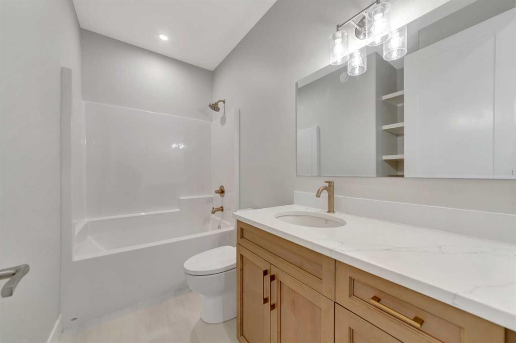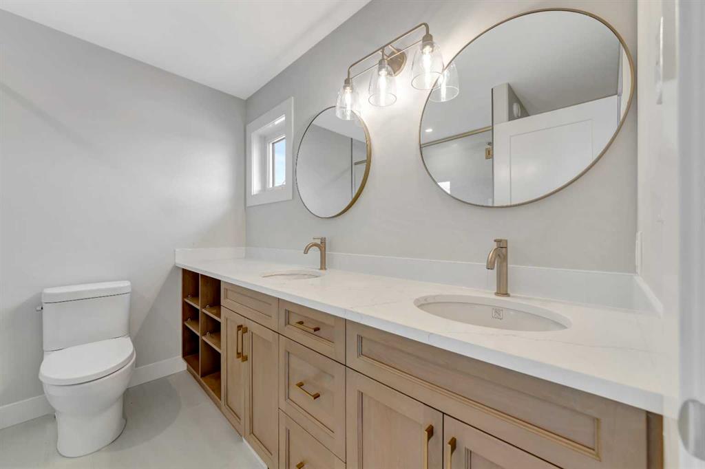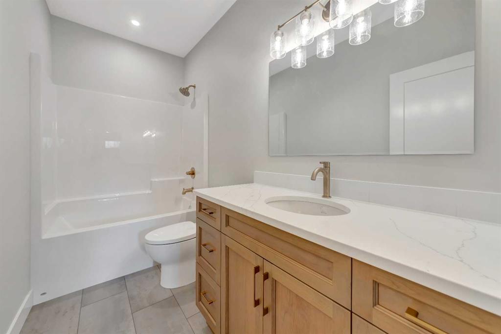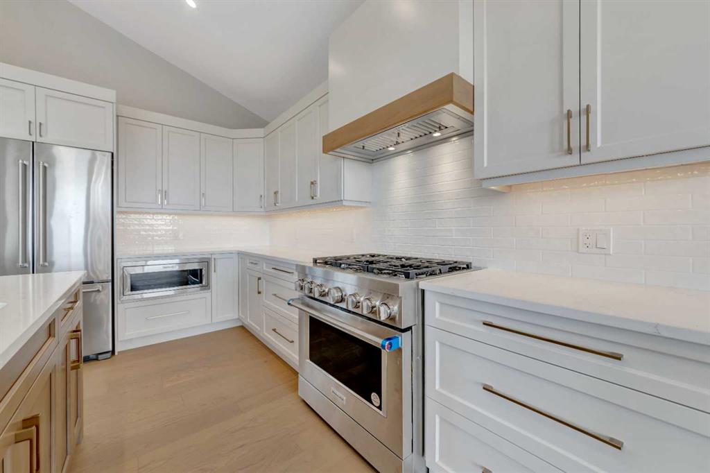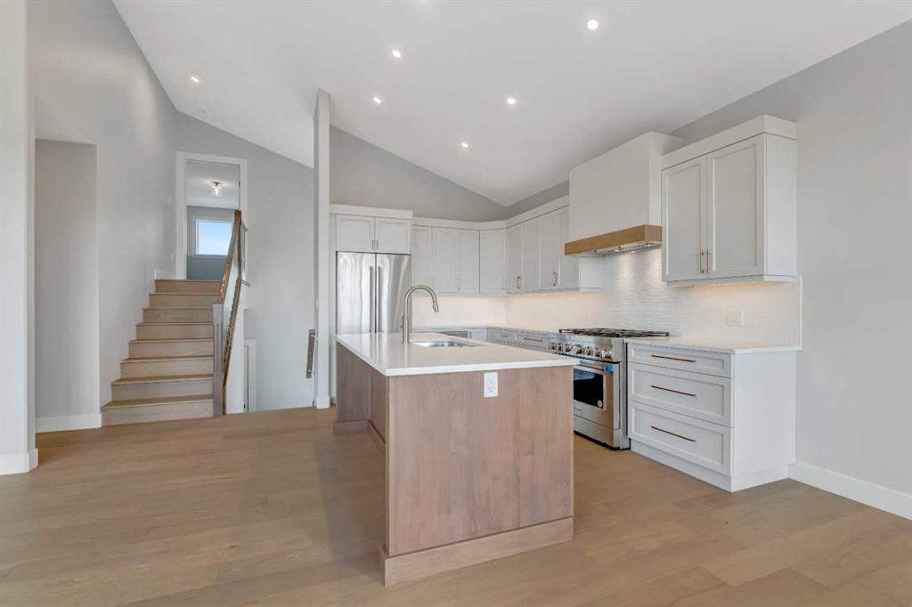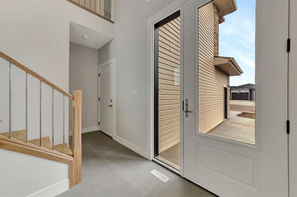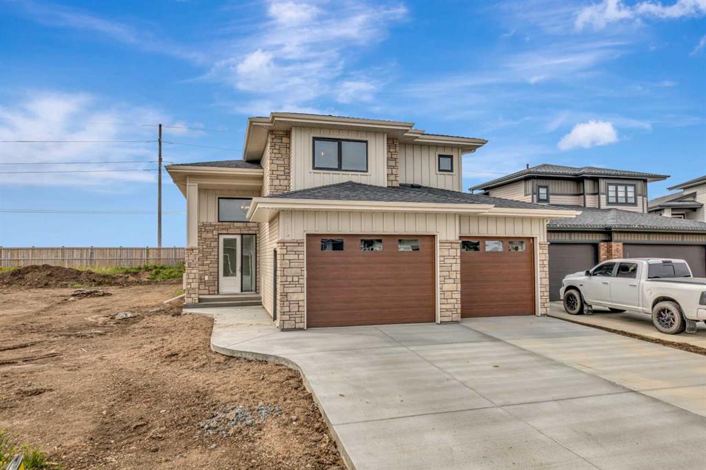 Step into a home where comfort meets style in this beautifully designed modified bi-level in the Lakeside neighborhood. Just steps from scenic walking and bike paths, top-tier amenities, and Bud Miller Park, this home offers the perfect balance of convenience and nature. As you enter, you're greeted by a bright and airy foyer, leading up to an open-concept main level with rich hardwood flooring throughout. The heart of the home—the kitchen—boasts sleek quartz countertops, a 36" gas range, and high-end appliances, making it a dream for home chefs. The adjacent dining area flows seamlessly onto a covered rear deck through 8” patio doors, perfect for morning coffees or summer barbecues. Cozy up by the electric fireplace where big windows flood the space with natural light. Central air conditioning ensures year-round comfort. Two spacious carpeted bedrooms and a stylish 4-piece bathroom with elegant tile complete the main floor. But the real retreat awaits upstairs, where the expansive primary suite offers the perfect escape. With a walk-in closet and a luxurious ensuite featuring dual sinks and a stunning tiled shower, this space is truly a sanctuary. Downstairs, the fully finished lower level offers endless possibilities. A spacious family room is ready for movie nights or game days, while two additional bedrooms provide space for guests or a growing family. A 3-piece bathroom and a well-designed laundry area add convenience to this already functional space. Completing this incredible home is a double attached garage, providing ample parking and storage. From its thoughtful layout to its unbeatable location, this home offers a lifestyle of comfort, elegance, and adventure. Whether you're enjoying a peaceful evening by the fireplace, entertaining on the deck, or exploring the nearby parks and trails, this is more than a house—it’s home.