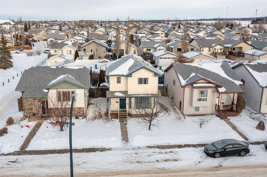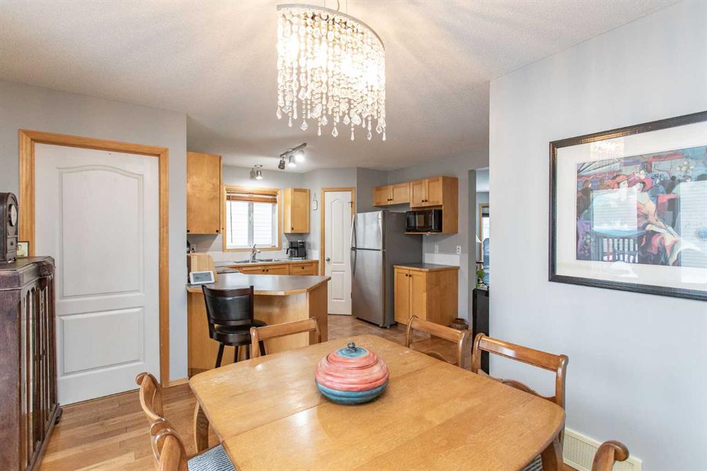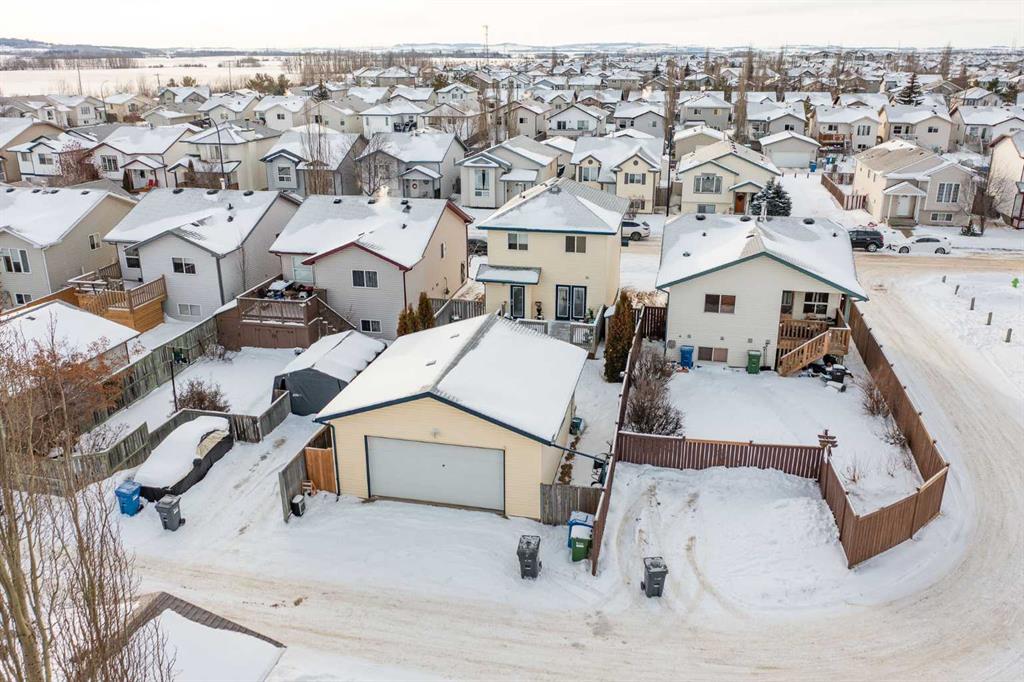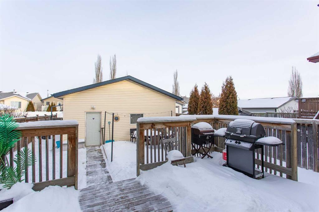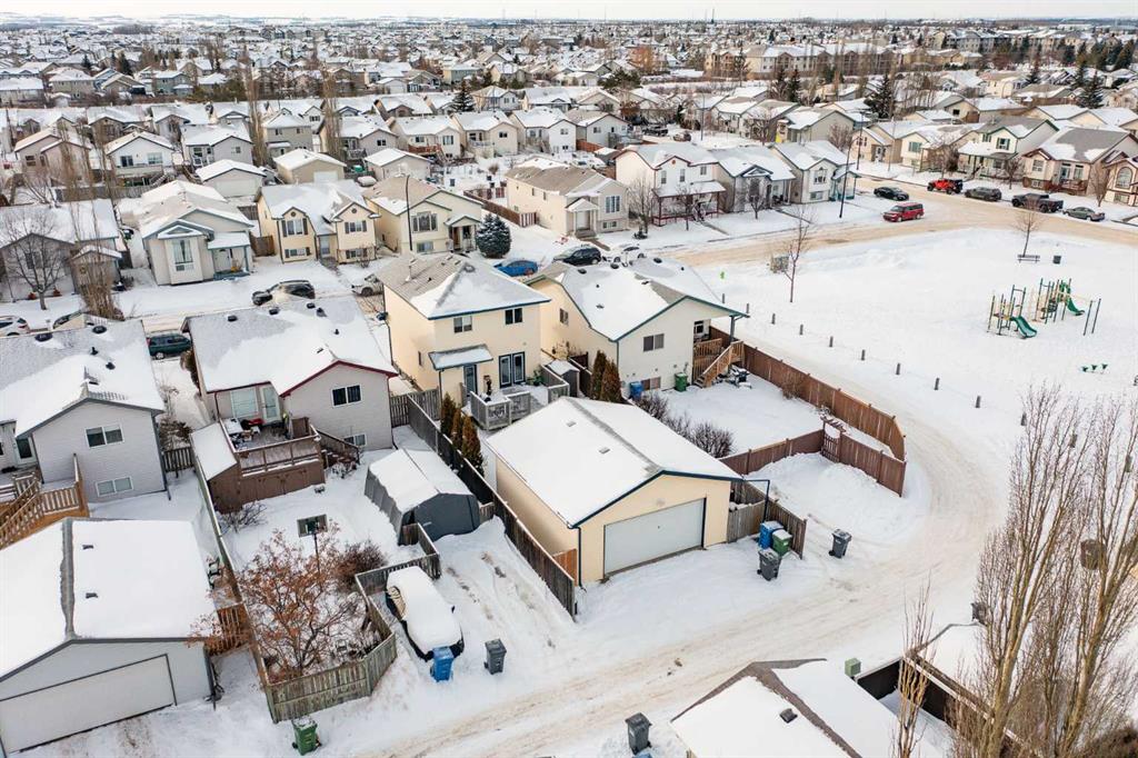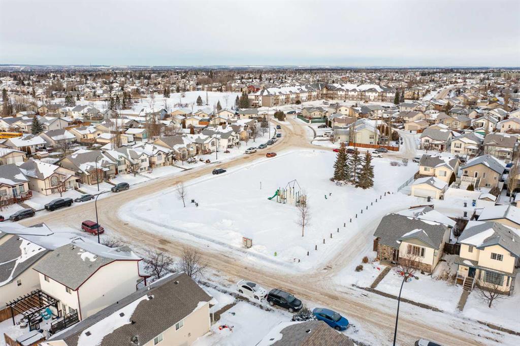 Nicely kept two story home offering full basement develop and an over size double car garage. Ideally located within a quiet close plus adjacent to small playground this home would be ideal for a young family getting a start in the market. Welcoming front entrance is complimented by a covered porch area leading you into the tiled entry way with large coat closet. A bright front sitting room offers large south facing picture window which pours in the natural light. Hardwood floors throughout keep allergen's down and also make for ease of maintenance. Excellent size kitchen space is attractively designed with plenty of counter space, a full surround of maple cabinets and drawers, updated stainless steel appliances as well as a deep corner pantry. A great size dining area is perfect for family gatherings or guests to attend which also has patio doors leading out to the back yard space. Convenient main floor laundry plus a separate two piece powder room complete the main floor space. Three bedrooms on the upper level with laminate style flooring. The Primary offers a huge walk in closet with a window for some natural lighting. Full four piece main bath with banjo counter and tub surround. The developed basement is a great extension of living space offering a generous media room perfect for creating a home theater space. Massive teenager size guest bedroom plus an additional four piece bath. Storage closet plus additional space in the utility room as well as under the stairs for your seasonal items. Enjoy the fully fenced and landscaped backyard any time of the year. Either sitting on the large back deck or down on the patio area both are comfortable and private for your own simplicity. The oversize 24x26 detached garage with 10ft ceilings makes for a value added feature. Providing secure options for vehicle parking, additional storage or creating a home work shop space you can determine the course plus still have yard space left over to utilize. Schools within the area plus light neighborhood shopping plazas add for some amenities plus a beautiful walking path only steps around the corner.