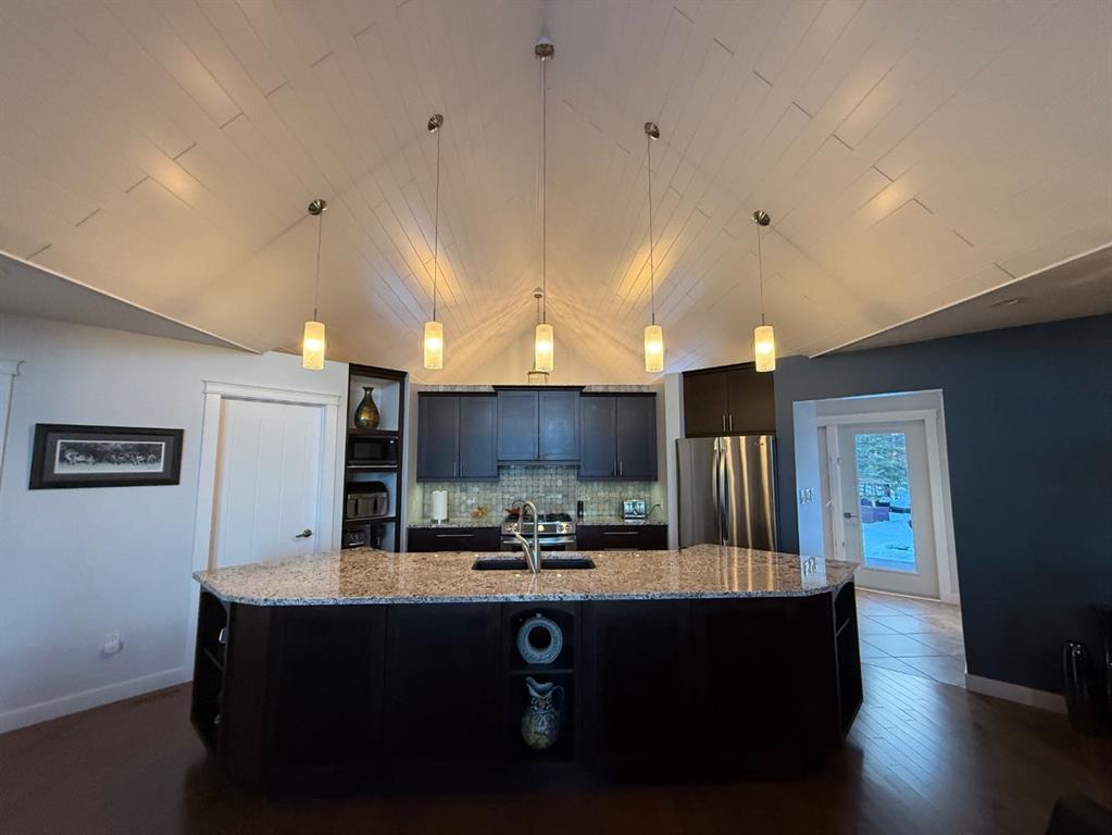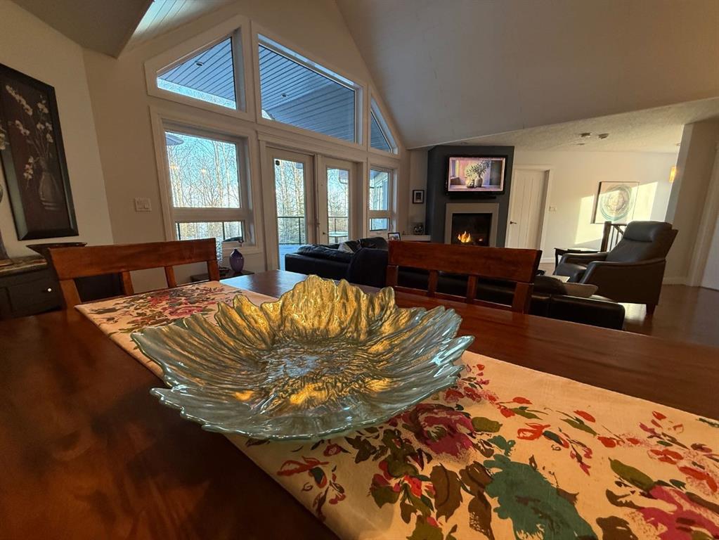 A 2.31 lakeview acreage in the welcoming community of Key Cove, Joussard, this uniquely designed 1,750 sq ft home (1750 sq ft up and 1750 finished sq ft walk-out basement) offers a perfect blend of character and functional living. From the moment you arrive, the distinctive butterfly roof architecture makes a striking impression. Step inside to an exceptionally large front entrance that leads into a bright, open-concept main floor featuring the living room, dining area, and kitchen. The kitchen is centered around a spacious island, complete with sink and dishwasher, storage all around, and is accented by a beautiful woven tile backsplash. A walk-in pantry and main floor laundry add to the functionality. This level also hosts three bedrooms, including the primary suite with a private ensuite, and a handy 3-piece main bathroom. Access to a north-facing upper deck, where you can enjoy the trees and serene lake views. The walk-out basement expands your living space dramatically, featuring a large fourth bedroom, a cozy family room with an electric fireplace, and a games area complete with a pool table, board game table, and a wall bar. Walk out to a covered, cement-stamped deck—an ideal spot for entertaining. The property's potential is further enhanced by multiple versatile outbuildings, offering ample space for storage, workshops, and entertaining. This property includes the highly desirable community benefit of shared access to the Hidden Shores Marina, placing exceptional boating and fishing on Lesser Slave Lake just moments from your doorstep. This one-of-a-kind property combines privacy, lake access, and practical family living in a highly desirable lakeside location. A 2011 build, which has been thoughtfully created and meticulously maintained. Call, email, or text to book your viewing today.
