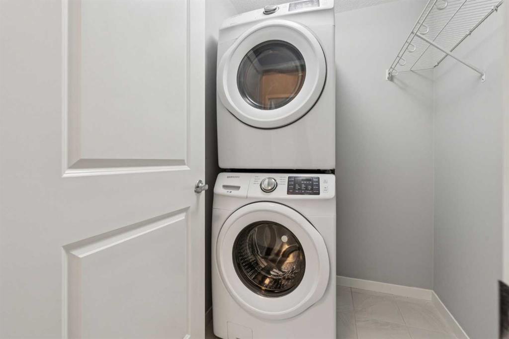 Welcome to The Rise—this bright, top-floor 2-bedroom, 1-bathroom condo offers move-in ready living. Freshly painted with new carpet, the open-concept layout is filled with natural light and complemented by vinyl plank flooring. The sleek kitchen is a standout, featuring quartz countertops, stainless steel appliances, full-height cabinetry, and a classic subway tile backsplash—perfect for everyday living and entertaining. The sunny living area opens to a west-facing balcony with a gas line for summer BBQs overlooking the courtyard. The spacious primary bedroom features a bright west-facing window and a closet, while the second bedroom is ideal for guests, a home office, or a nursery. A 4-piece bathroom and a convenient laundry/storage room complete this fantastic unit. Additional features include a TITLED outdoor parking stall, visitor parking, and plenty of street parking. Enjoy a pet-friendly community with ample outdoor activities including parks and walking paths, plus unbeatable access to Deerfoot and Stoney Trail, the airport, shopping, restaurants, schools, and entertainment. All you need is the key!