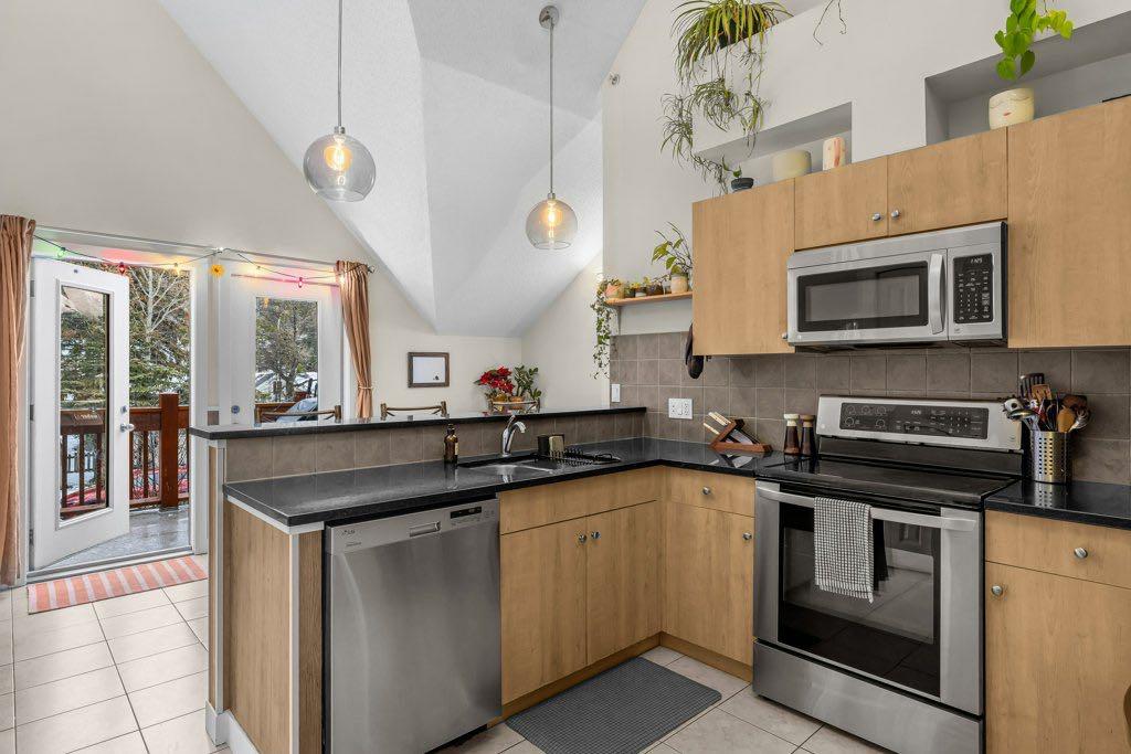 Unit 203 is a well-designed 3-bedroom, 2-bath condo located just outside Banff’s downtown core. The open-concept kitchen and living area are anchored by soaring ceilings, creating a sense of space while remaining comfortable and highly functional for everyday living. The primary bedroom includes an ensuite bath, with two additional bedrooms that work well for family, guests, or a home office. A large private deck looks out toward Mount Rundle and provides a quiet outdoor extension of the living space. Underground parking and underground storage add everyday convenience. Just minutes from shops, restaurants, trails, and everything Banff has to offer, this is an amazing opportunity in a fantastic location.