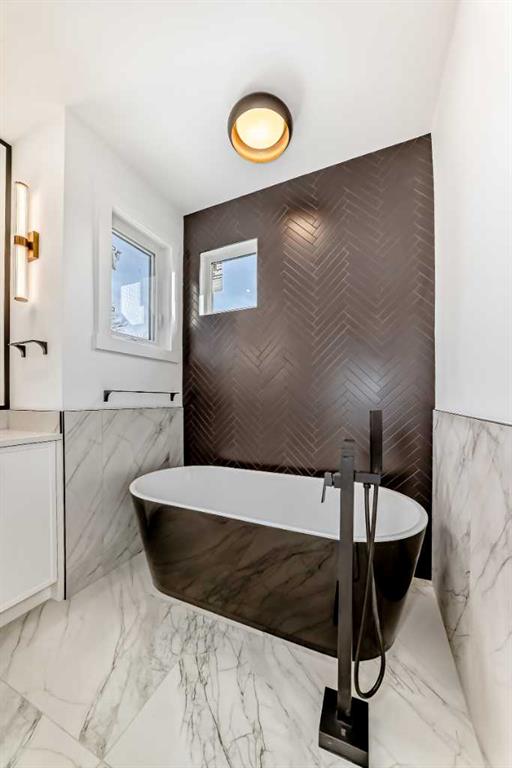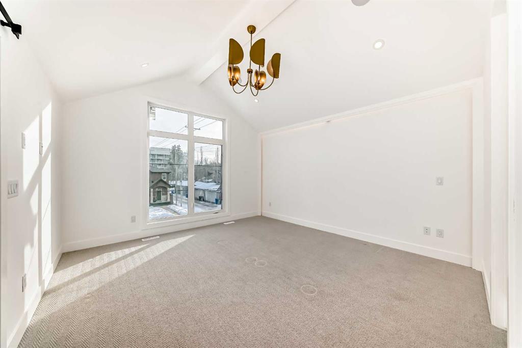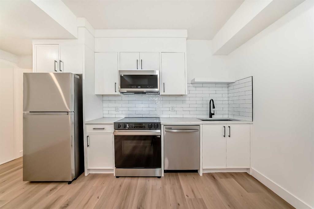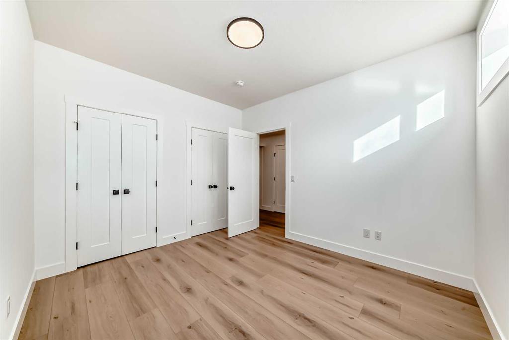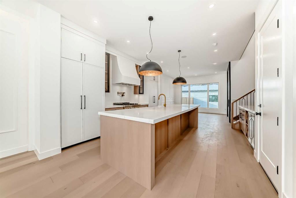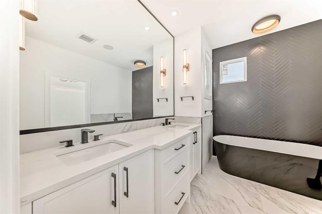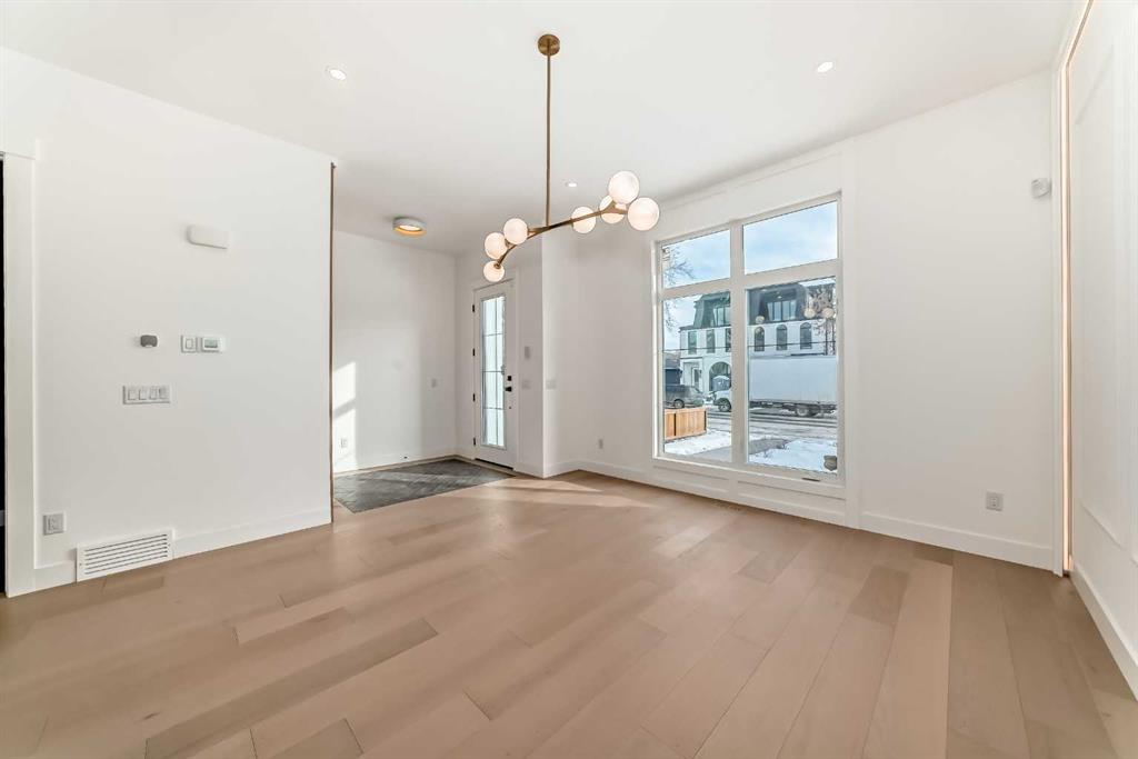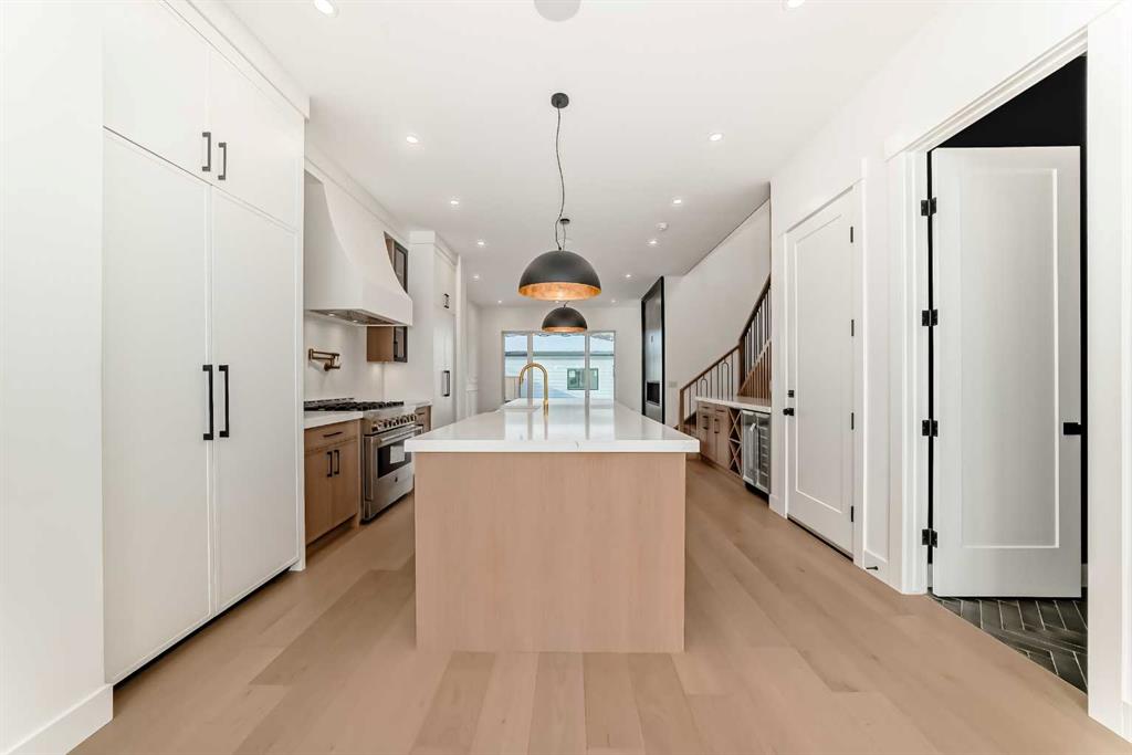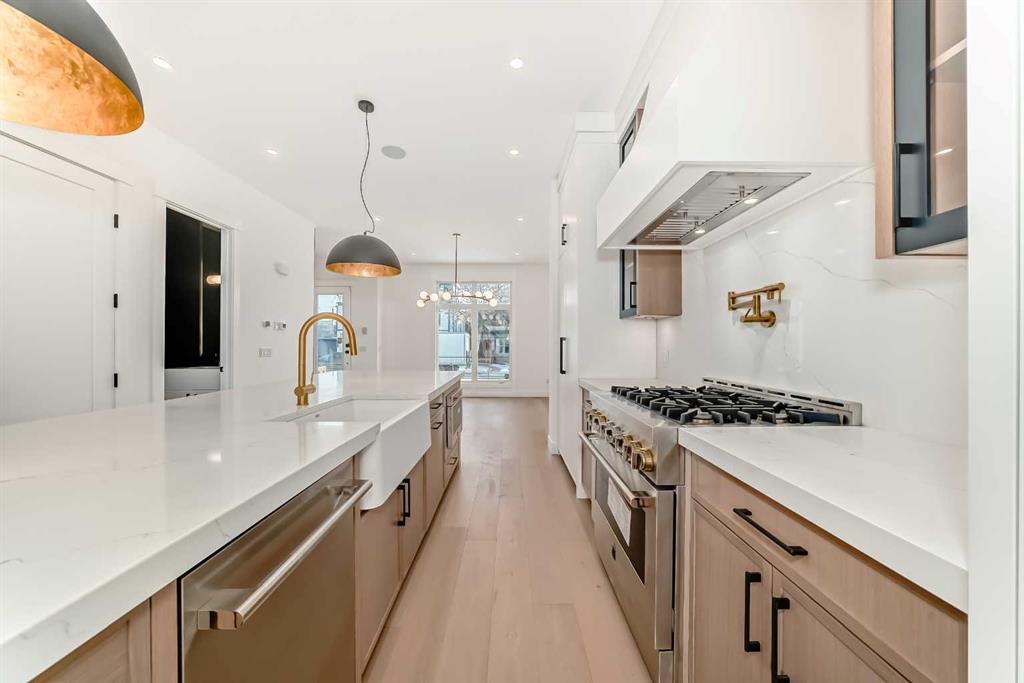 Here’s a polished, refined rewording that keeps the luxury tone while improving flow and clarity: --- Located in the highly sought-after inner-city community of Parkdale, this exceptional custom-built home offers a rare opportunity to own a truly remarkable residence. This brand-new, semi-detached two-storey home is impeccably finished and thoughtfully designed, featuring upgraded engineered hardwood and vinyl plank flooring, a designer kitchen with premium JennAir appliances, elegant quartz countertops throughout, and a total of five bedrooms and 3.5 bathrooms—including a fully legal basement suite with a private entrance. With over 2,600 sq. ft. of beautifully curated living space, every detail has been carefully considered to deliver elevated modern living. The open-concept main floor is highlighted by soaring 10-foot ceilings and expansive windows that flood the space with natural light. A bright dining area with a striking feature wall and accent lighting flows seamlessly into the formal living room, complete with a sleek contemporary fireplace and large picture windows overlooking the backyard. The show-stopping chef’s kitchen impresses with two-tone cabinetry, soft-close drawers and doors, an oversized island with farmhouse sink, built-in desk with bar fridge, and a full JennAir appliance package including a gas range with convection oven and refrigerator/freezer. Upstairs, you’ll find three generously sized bedrooms and two full bathrooms, anchored by the luxurious owner’s retreat featuring vaulted ceilings, expansive windows, a custom walk-in closet with built-ins, and a spa-inspired ensuite with heated tile floors, freestanding soaker tub, quartz-topped dual vanities, and a glass-enclosed shower with full tile surround. Two additional bedrooms, a full bathroom with quartz counters, and a dedicated laundry room with built-in cabinetry and sink complete the upper level. The fully finished legal basement suite offers excellent flexibility and income potential, showcasing vinyl plank flooring, a spacious recreation room, an eat-in kitchen with Samsung stainless steel appliances, two bright bedrooms, a full bathroom, and laundry hookups. Additional highlights include a main-floor mudroom with built-in lockers and cabinetry, built-in ceiling speakers on all three levels, upgraded lighting, a custom hidden white oak closet in the foyer, a fenced backyard with aggregate patio and gas BBQ line, and a detached double garage with 220V wiring. The home is also roughed-in for central air, central vacuum, security, and radon mitigation. Ideally located just steps from the Parkdale Community Centre and Gardens, and within walking distance to the Bow River pathway system, Foothills Medical Centre, and schools, this home is also minutes from the University of Calgary, major shopping destinations, popular parks, transit, and downtown. An exceptional property offering refined style, comfort, and unbeatable convenience.