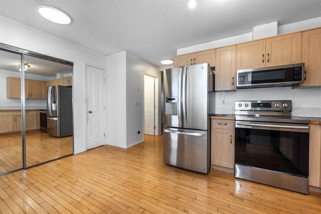 Welcome to this former show home townhouse, ideally situated in one of the best locations with easy access to everything you need. This corner unit offers extra privacy, a large east-facing backyard, and plenty of street parking right behind the home, along with a dedicated stall in front. Inside, you’ll love the thoughtful upgrades, including hardwood flooring on the main level, a cozy gas fireplace, and stainless steel appliances with a convenient pantry in the kitchen. The main floor features a bright living room, a 2-piece bathroom, and an open-concept kitchen with access to your backyard – perfect for relaxing or entertaining. Upstairs, you’ll find three spacious bedrooms, including a comfortable primary bedroom, plus a full bathroom. The partially finished basement adds extra space and flexibility for future development. This home is steps away from Shoppers Drug Mart, within walking distance to the train station, and directly faces a park, making it ideal for families and professionals alike. With its low condo fee, prime location, and great price, this property is a fantastic opportunity you won’t want to miss!