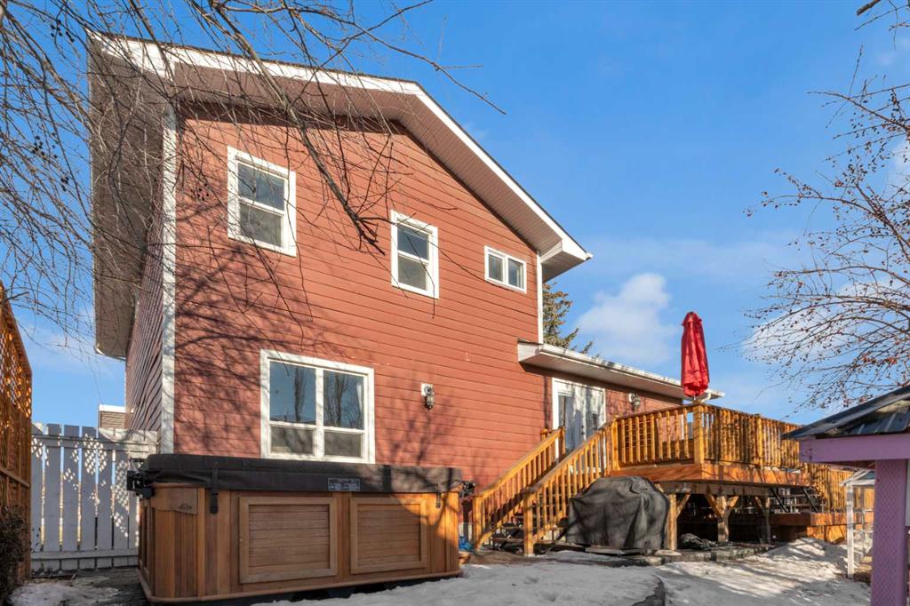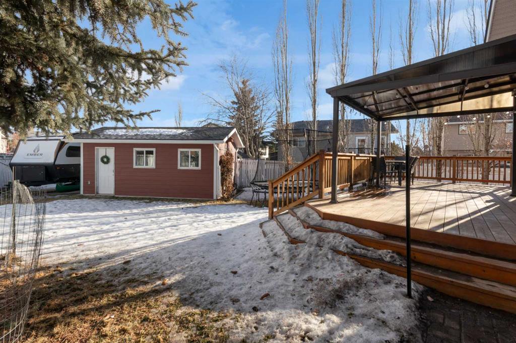 The appeal of this home begins the moment you arrive; a stamped concrete driveway leading to a heated double attached garage, HARDIE BOARD SIDING and a sprawling 0.16 acre, well-appointed lot complete with a separate BACKYARD WORKSHOP. The outdoor space is truly exceptional, featuring a large deck with gazebo, mature trees and landscaping, RV parking, a permitted chicken coop, and a beautiful new HOT TUB (2024) set on a stamped concrete patio—perfect for relaxing or entertaining. Step inside to a spacious and thoughtfully updated four-level split designed to comfortably accommodate family life. The main floor makes an immediate impression with a stunning custom kitchen by Layne Kitchens and Design. No expense was spared, with granite counters, built-in ovens, an induction cooktop, a massive island, and elegant cabinetry with convenient sliding storage features. A bright front living area with SOARING CEILINGS and a generous dining space complete this level. Just a few steps down, you’ll find a cozy living room centred around a feature GAS FIREPLACE with built-in shelving on both sides, along with a convenient half bath, laundry area, and direct access to the attached garage. The lower level offers a comfortable family room, a full bathroom, and a fourth bedroom, plus an impressive storage area that also houses the new furnace (2025). Upstairs, the home continues to impress with two bright secondary bedrooms, a recently renovated five-piece main bath, and a spacious primary retreat featuring a newly updated three-piece ensuite and walk-in closet. This home is also loaded with MODERN TECHNOLOGY including app-based lighting (with kid-friendly graphics in the secondary bedrooms), app-controlled thermostat and front blinds, a high-end Telus security system inside and out, and even an app to help keep the chickens happy. With exceptional indoor and outdoor spaces, thoughtful updates, and standout features throughout, this home truly must be seen to be appreciated.