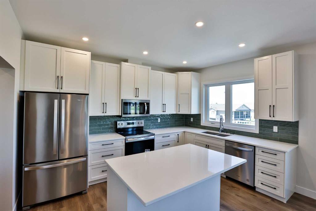 Welcome to your NEXT home! As you approach this residence, you'll immediately notice the beautifully landscaped yard, complete with underground sprinklers that are Wi-Fi enabled for your convenience—a rare upgrade in a newly constructed home. The stunning exterior rock work highlights the front of the property, and who doesn’t appreciate a spacious driveway? Step inside this open-concept home, where vinyl plank flooring flows throughout the main level. Large windows line the back of the house, allowing natural light to fill the space, while a gas fireplace adorned with wood mantle detailing adds warmth and character to the living room. The kitchen features elegant white cabinets and quartz countertops that enhance the room's brightness. You'll find an abundance of pots and pans drawers, accented with lovely black handles. All stainless steel appliances, a built-in butler’s pantry, and a dedicated desk area with upper cabinets provide ample storage and functionality. The windows at the back of the home offer breathtaking views of the Rocky Mountains and the 12th green of the Vulcan Golf Course. Step out onto your expansive deck that spans the width of the home, perfect for entertaining guests. This outdoor space is finished with vinyl decking and aluminum railing, for low maintenance lifestyle. On the second floor, you'll discover generously sized bedrooms, a full bathroom, and a convenient laundry area. The primary bedroom, situated at the back of the home, boasts a spacious walk-in closet with custom built-ins, as well as a beautiful ensuite bathroom featuring a tub and shower with double sinks. The basement is currently undeveloped and awaits your creative touch! This walkout basement is filled with natural light and leads to a concrete patio that completes the space. Additionally, there is a double attached garage that is insulated and drywalled for your comfort. You'll appreciate the absence of HOA fees in this part of the golf course development, allowing you the freedom to install a fence if you have a dog or garden. Plus, there are no age restrictions in this area! Living on the Vulcan Golf Course means enjoying a vibrant community, complete with an abundance of amenities, including close proximity to schools, an outdoor pool, parks, a hospital and arena. Located between the cities of Lethbridge and Calgary on Highway 23, this would be a perfect area to call home. Give your REALTOR®? a call today!