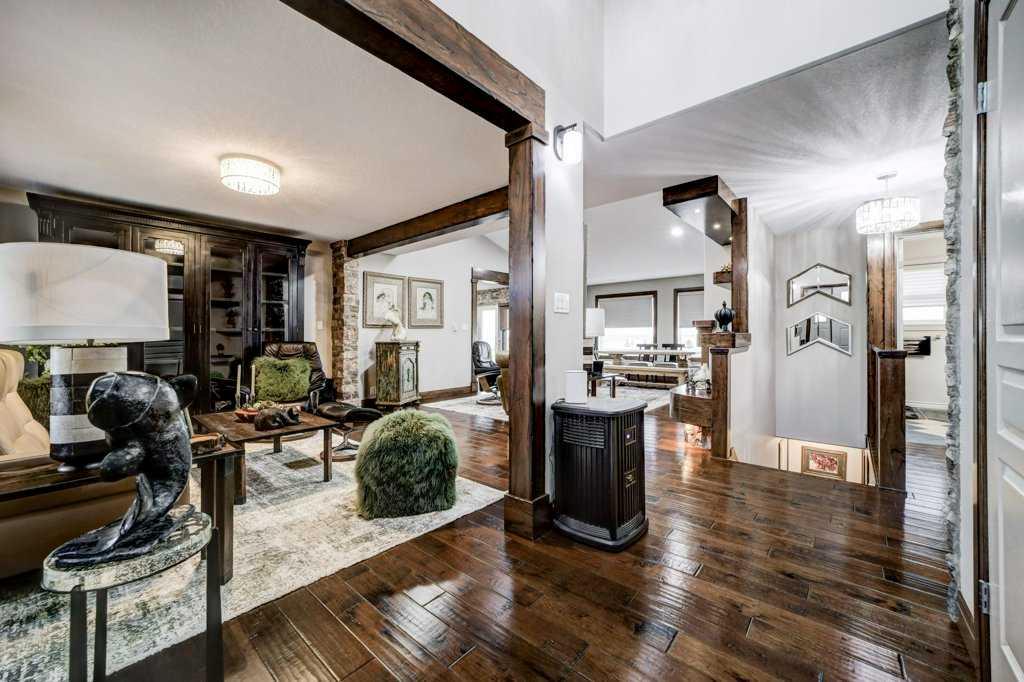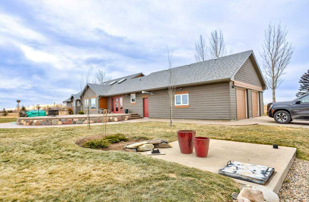 Elegantly updated and immaculately maintained, this beautifully designed bungalow offers refined acreage living on over 14 acres, just minutes south of Taber. From the moment you step inside, it’s clear this home has been thoughtfully curated by a seller with a true eye for design. Skylights flood the space with natural light, highlighting vaulted ceilings, rich hardwood and tile flooring, and striking architectural details including brick feature walls and a cozy gas fireplace. The heart of the home is both functional and inviting. The kitchen features ample cabinets, a walk in pantry and a space for a smaller, intimate dining table, perfect for everyday meals, while just around the corner, a dedicated dining area flows seamlessly into the main living room, ideal for hosting family and friends. A second sitting room provides an additional space to relax, visit, or unwind, creating a layout that feels open yet intentionally defined. Down the hall, you’ll find two comfortable bedrooms, a beautifully finished 4pc main bathroom, and a generous primary suite complete with a 4pc en-suite that includes a soaker tub. Main floor laundry add to the home’s everyday convenience. The basement is currently undeveloped, offering a blank canvas with excellent potential for future development. Outside, the property continues to impress. The yard is exceptionally well landscaped with exposed and stamped aggregate concrete, split rock accents, and a cedar deck—ideal for enjoying the peaceful surroundings. The attached oversized garage is heated with radiant heat, and multiple outbuildings, previously used for horses, offer versatility for hobbyists, storage, or future use. Adding significant value, the acreage includes services for a second dwelling or mother in law suite, complete with its own cistern and septic system, as well as extra acres for potential leasing and irrigation for the yard, enhancing both the functionality and long term potential of this exceptional rural property. There is also potential to subdivide if you desire fewer acres.