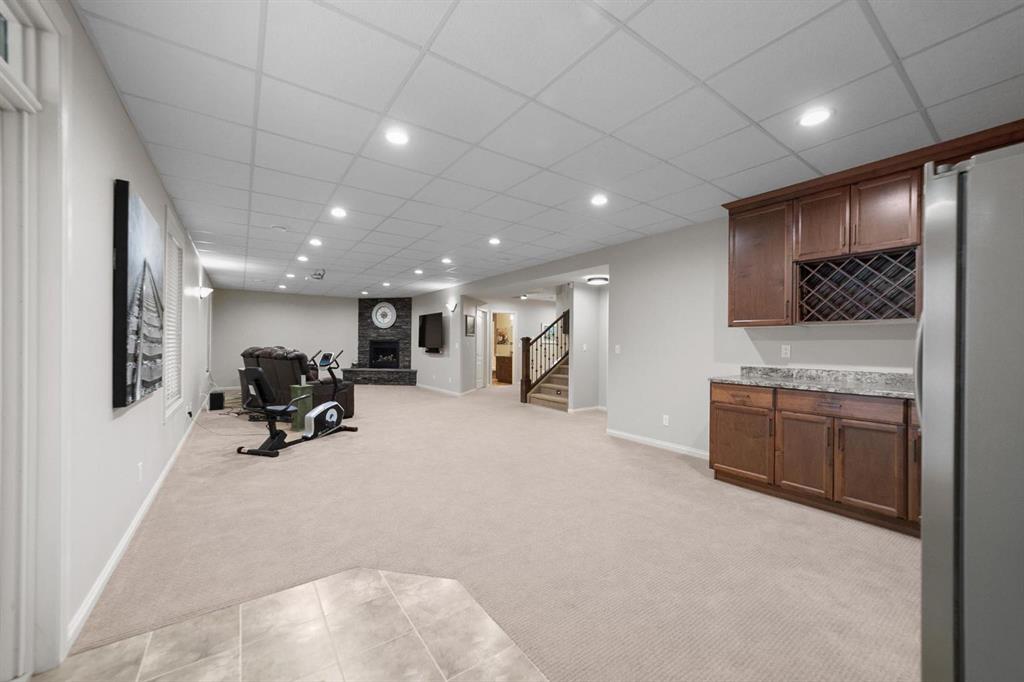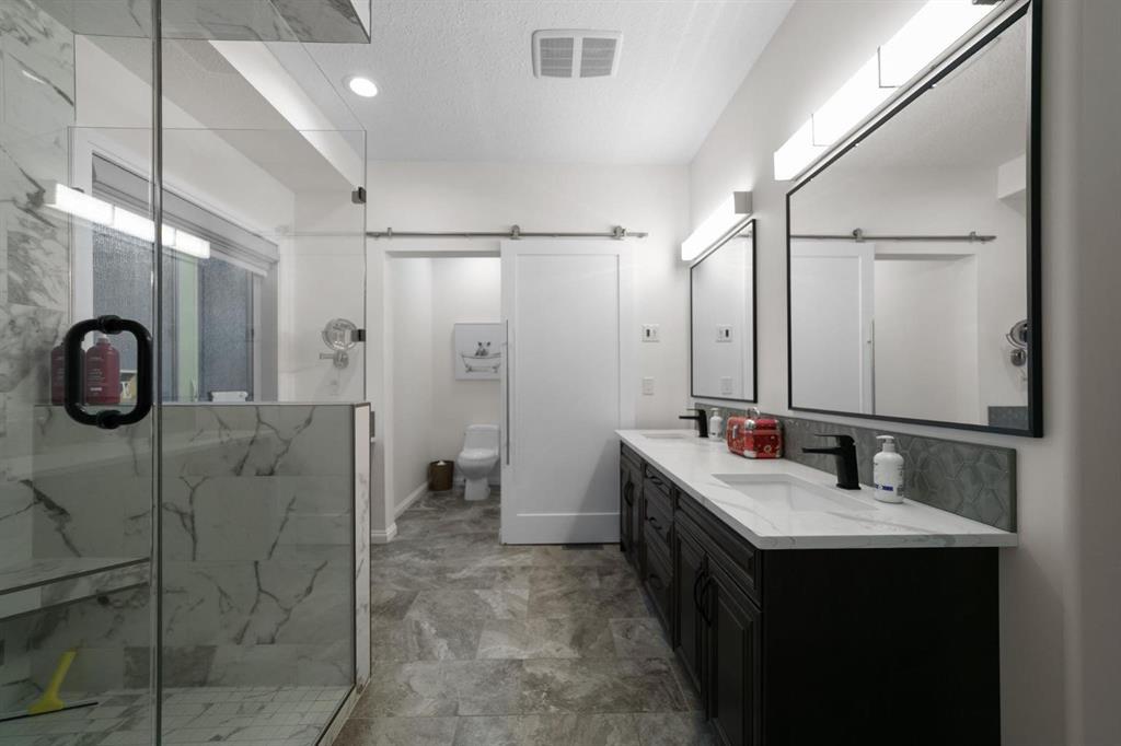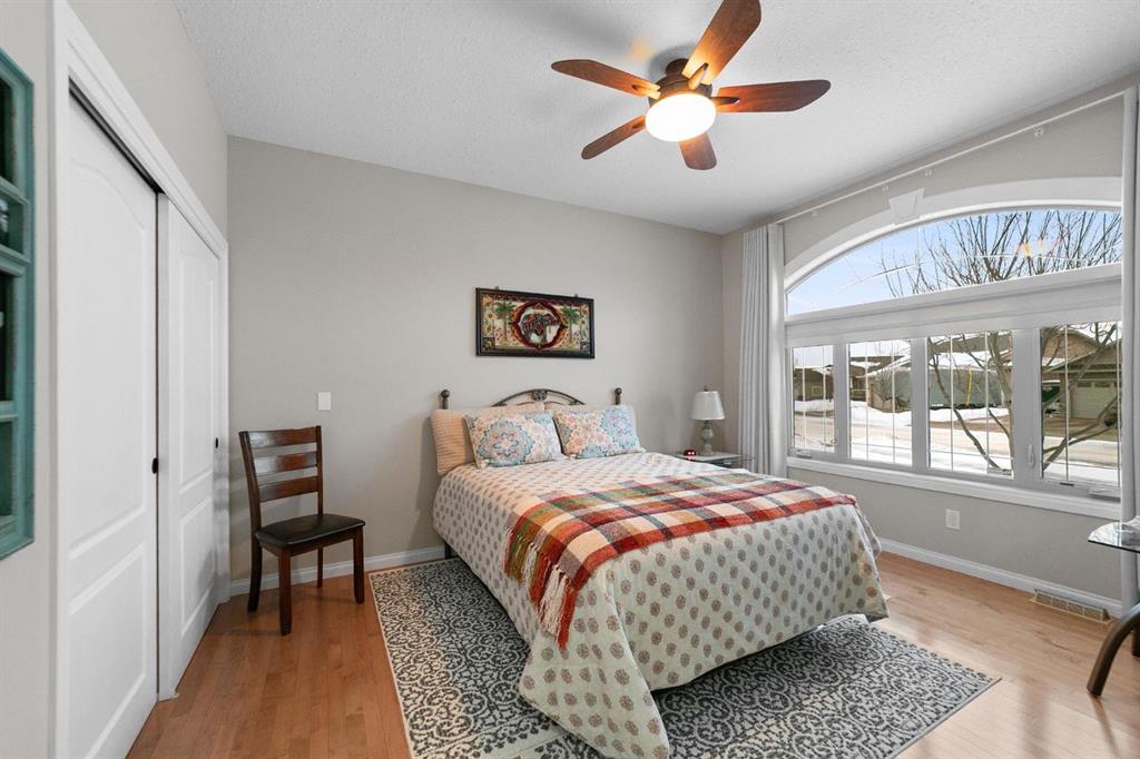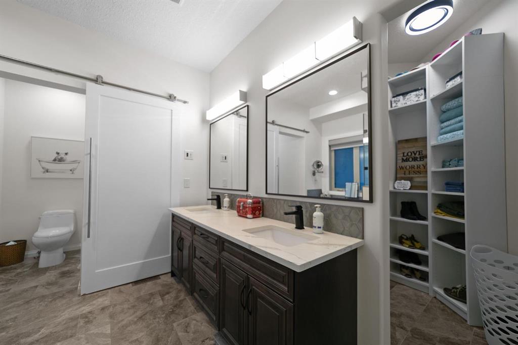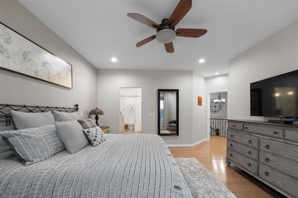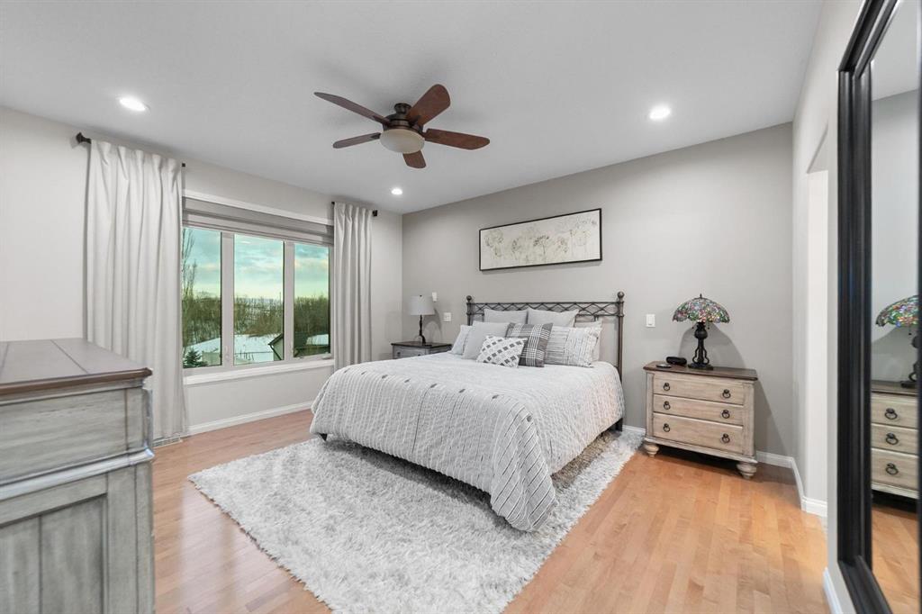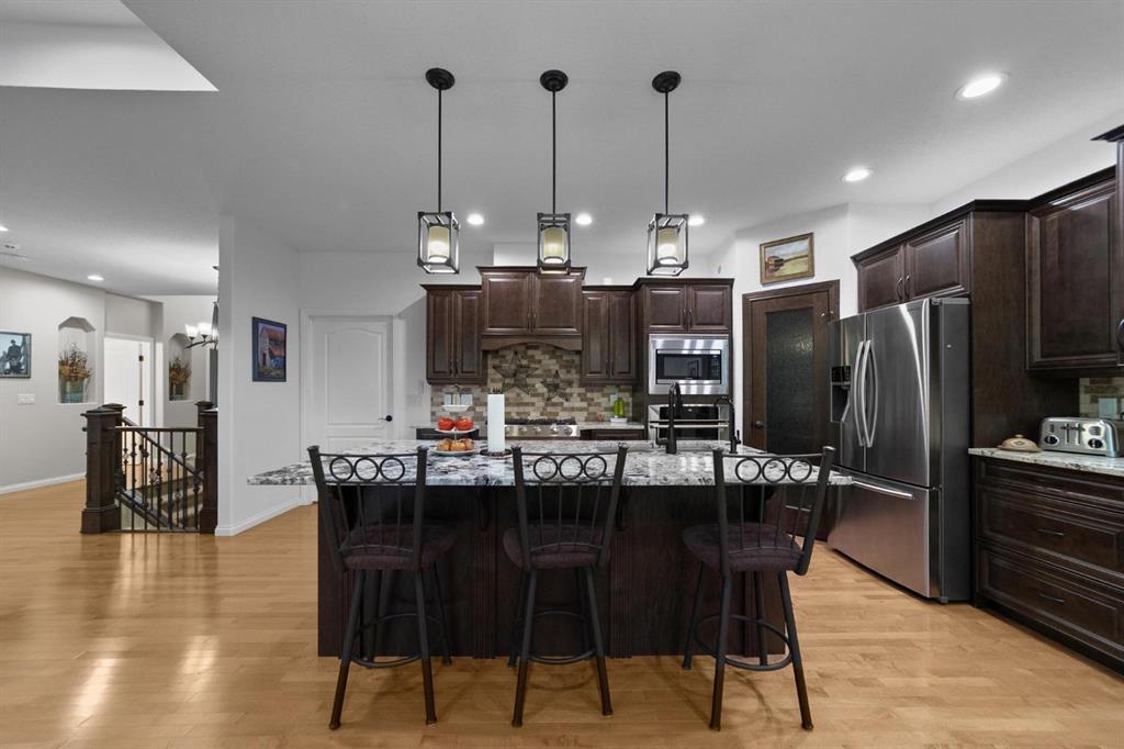 Experience unmatched views and exceptional craftsmanship in this stunning custom-built walkout bungalow, perfectly positioned in Valleyview overlooking the breathtaking valley landscape. Offering 3 bedrooms, 3 bathrooms, this home blends elegance, comfort, and thoughtful design across a bright, open-concept floor plan. Expansive windows flood the space with natural light—complemented by coffered ceilings, motorized blinds, and rich hardwood flooring. The impressive great room showcases a striking stone fireplace and open staircase framing panoramic views. The chef-inspired kitchen features granite countertops, a large entertaining island, 36” gas cooktop, built-in oven and microwave, and a spacious walk-in pantry. The adjoining dining space extends to a wrap-around covered deck, offering year-round enjoyment and remarkable valley scenery. The luxurious primary suite is a private retreat complete with spa-style ensuite and walk-in closet, with main-floor laundry and air conditioning adding everyday convenience. The fully finished walkout basement is designed for living and entertaining—featuring in-floor heat, a generous media/games area, additional bedroom and den, and a second stone fireplace. Step outside onto the covered patio with hot tub and firepit, perfect for unwinding or hosting guests. Sitting on a beautifully landscaped oversized lot with full irrigation, greenhouse, and storage shed, this home also includes an oversized heated 4-car garage with epoxy flooring. Exterior CHIC Permanent Stucco Protection offers lasting peace of mind with warranty. A rare opportunity to own a premier walkout bungalow with incredible views, premium finishes, and every detail considered—welcome home.