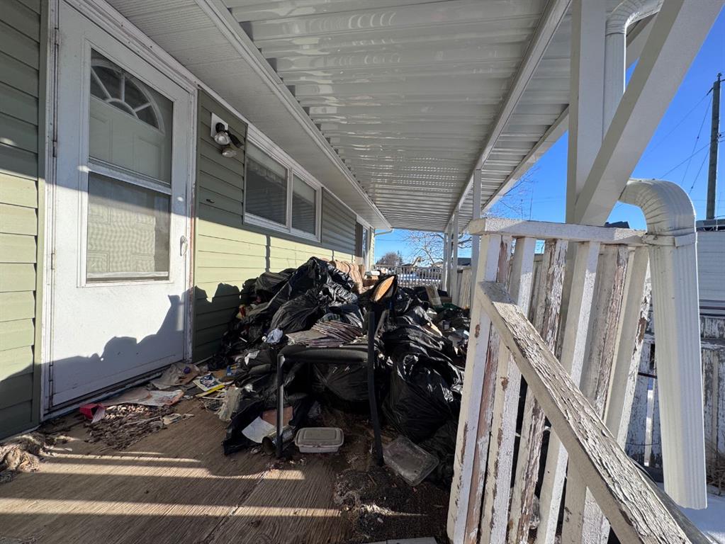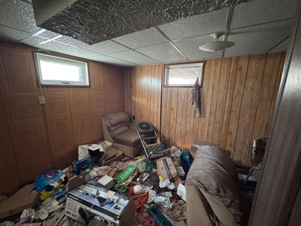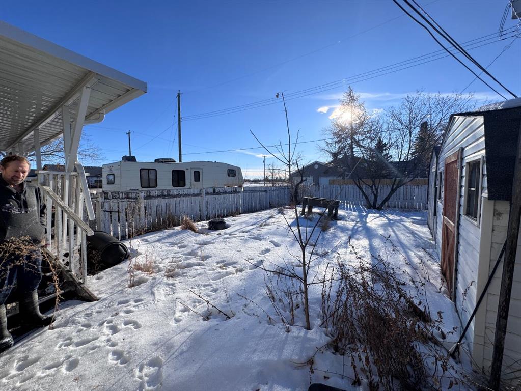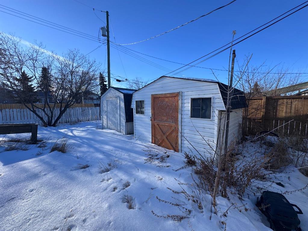 Located in a desirable Stettler neighborhood very close to schools, this corner-lot property offers an opportunity for buyers seeking a project or investment with future potential. The home features one bedroom on the main floor along with main-floor laundry. The lower level includes a living area, den and a half bath, providing additional space for storage, workspace, or flexible use. Outdoor features include a front deck and a covered back deck. A single attached garage and two sheds offer added storage and utility.