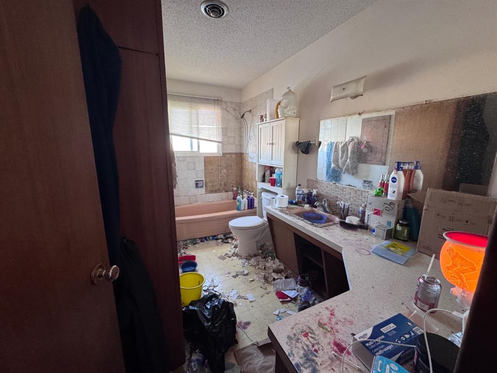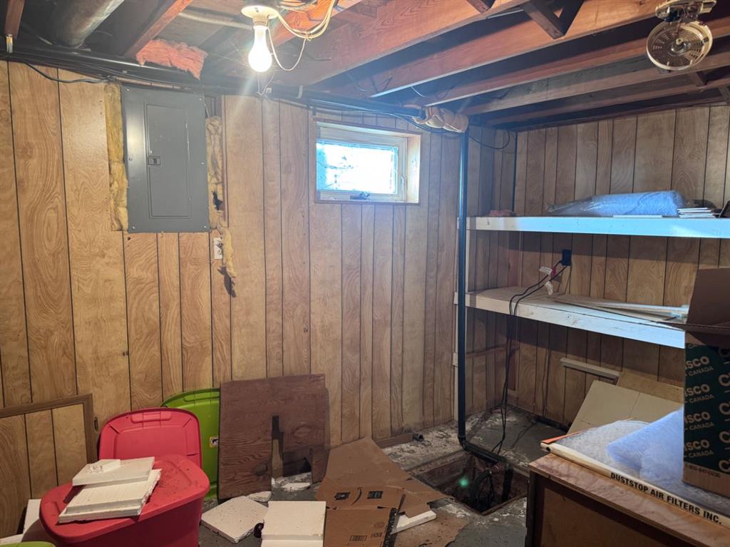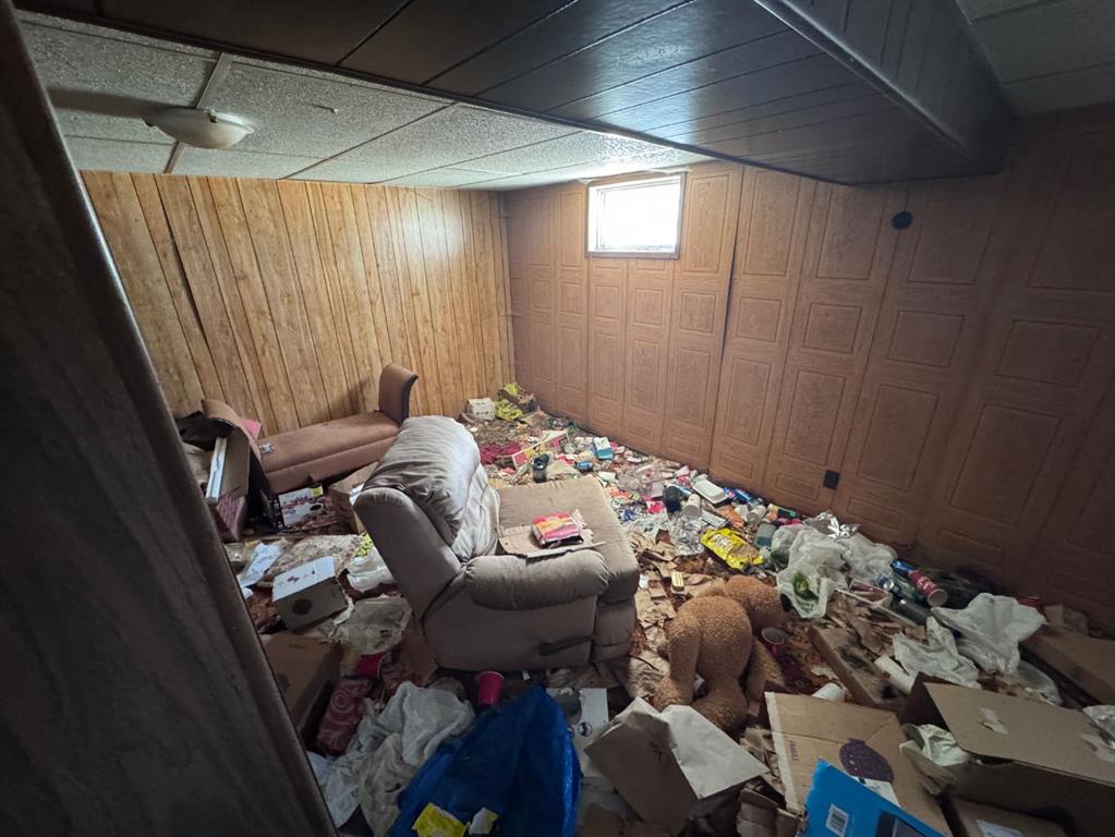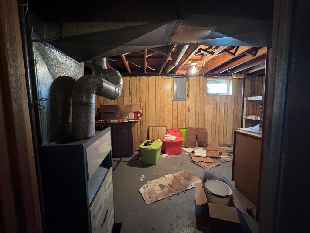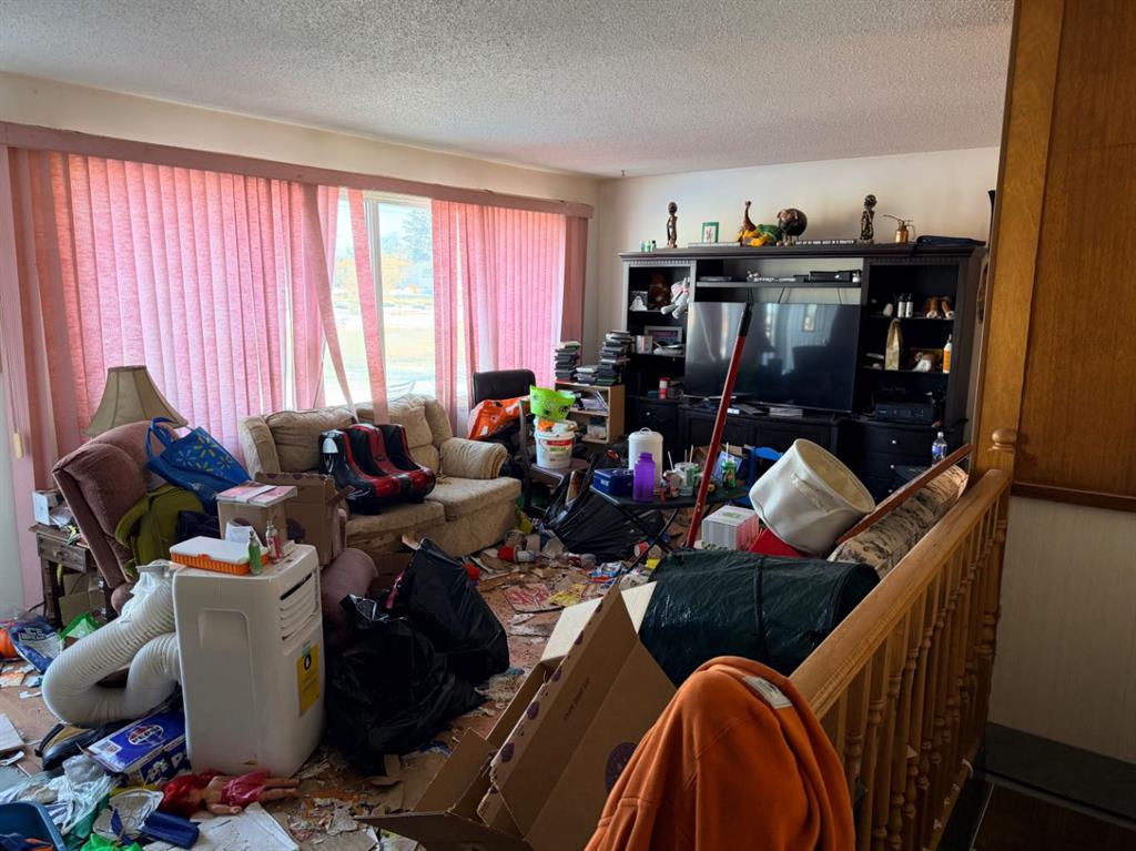 Located in a desirable Stettler neighborhood very close to schools, this corner-lot property offers an opportunity for buyers seeking a project or investment with future potential. The home features one bedroom on the main floor along with main-floor laundry. The lower level includes a living area, den and a half bath, providing additional space for storage, workspace, or flexible use. Outdoor features include a front deck and a covered back deck. A single attached garage and two sheds offer added storage and utility.