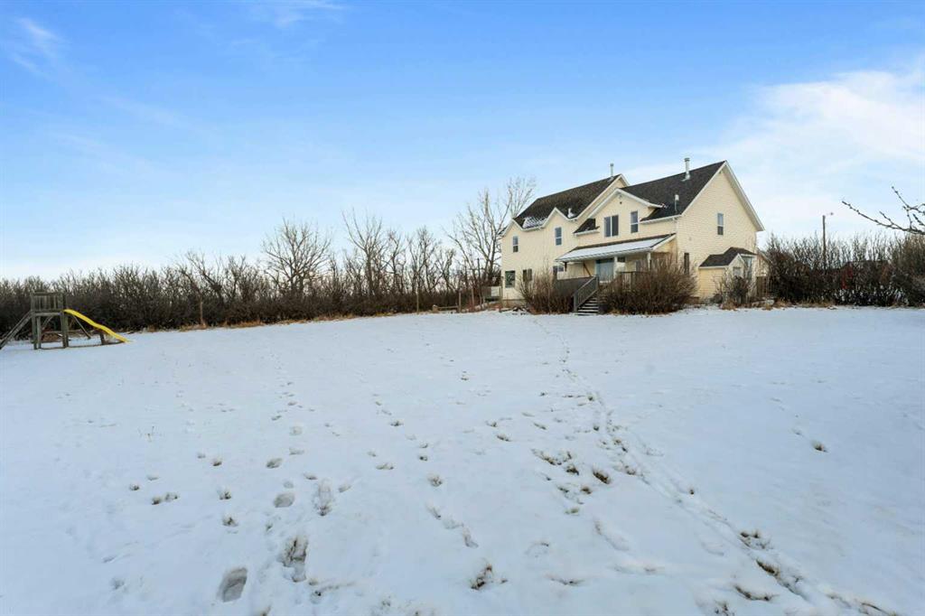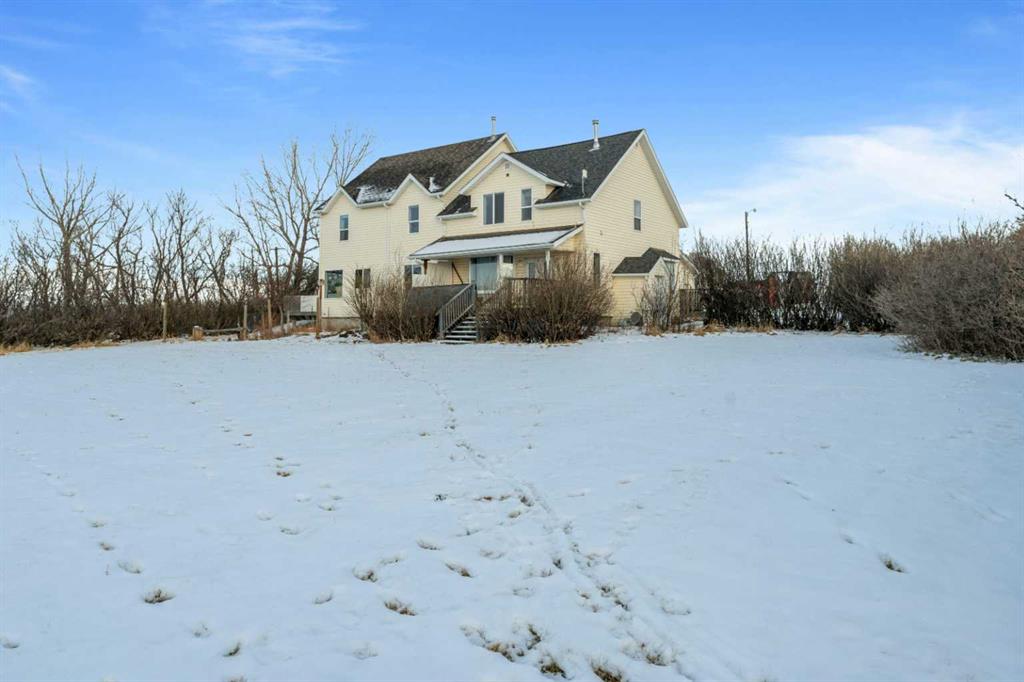 Full Duplex on 20 acres just minutes from Three Hills with country-residential zoning, town water, and a fully rented full duplex—a rare blend of income and land-use flexibility. Located only about ¼ mile from town limits, this treed and private acreage offers quick access to schools, shopping, and everyday amenities while still delivering the space and freedom of rural living. The home is a two-storey full duplex with separate living spaces and in-unit laundry in both sides. The north unit offers 3 bedrooms and 1.5 baths; the south unit offers 4 bedrooms and 2 baths—both currently rented with utilities included. Updates include a major renovation and addition completed in the early 2000s, plus a newer roof (2017) and furnace replacement (approx. 2020). The property is serviced by septic tank and field (pumped annually). Perimeter fencing and a mix of open and treed areas create excellent potential for hobby farm or equestrian use, subject to buyer verification and any improvements desired. Opportunities for other income sources off the 20 acres such as horse boarding or RV storage will help boost income.