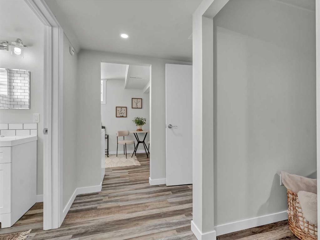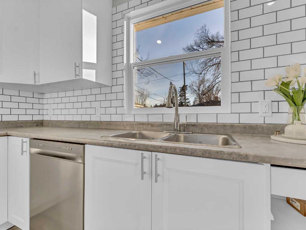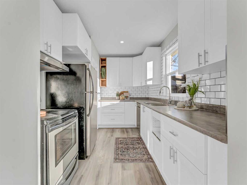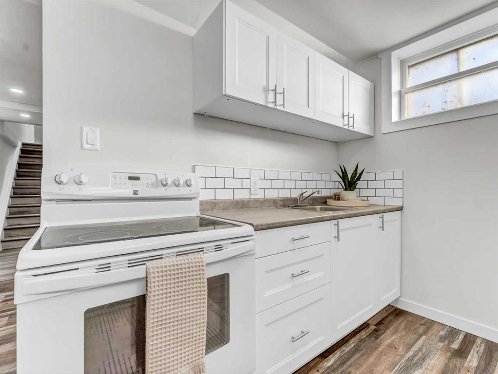 Welcome to this fully permitted, legally suited up/down home, ideally located just minutes from the hospital, schools, parks, and a wide range of desirable amenities. Whether you’re an investor, multi-generational family, or homeowner seeking mortgage-helping income, this property offers outstanding versatility and value. The bright and inviting upper level is filled with beautiful natural light and features two well-appointed bedrooms, a 4-piece bathroom, a spacious living room, and a dedicated dining area with direct access to the large, private backyard—perfect for entertaining or relaxing. The quaint, thoughtfully designed kitchen offers both charm and functionality. This level also provides internal access to the lower suite and convenient entry to the single attached garage. The self-contained lower suite includes two bedrooms, a 4-piece bathroom, a comfortable living room, and a kitchen with an eat-in dining area, creating a functional and welcoming space for extended family or tenants. A shared laundry area serves both suites, and additional parking at the rear adds convenience for occupants and guests. This home is completely turn-key and has been extensively updated with all new cabinetry, fresh paint, new windows and doors, vinyl flooring throughout, and upgraded electrical. With its modern updates, legal suite status, and quality central location, this property truly shines and is ready for immediate enjoyment or investment.