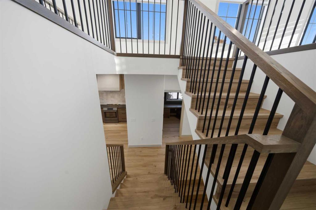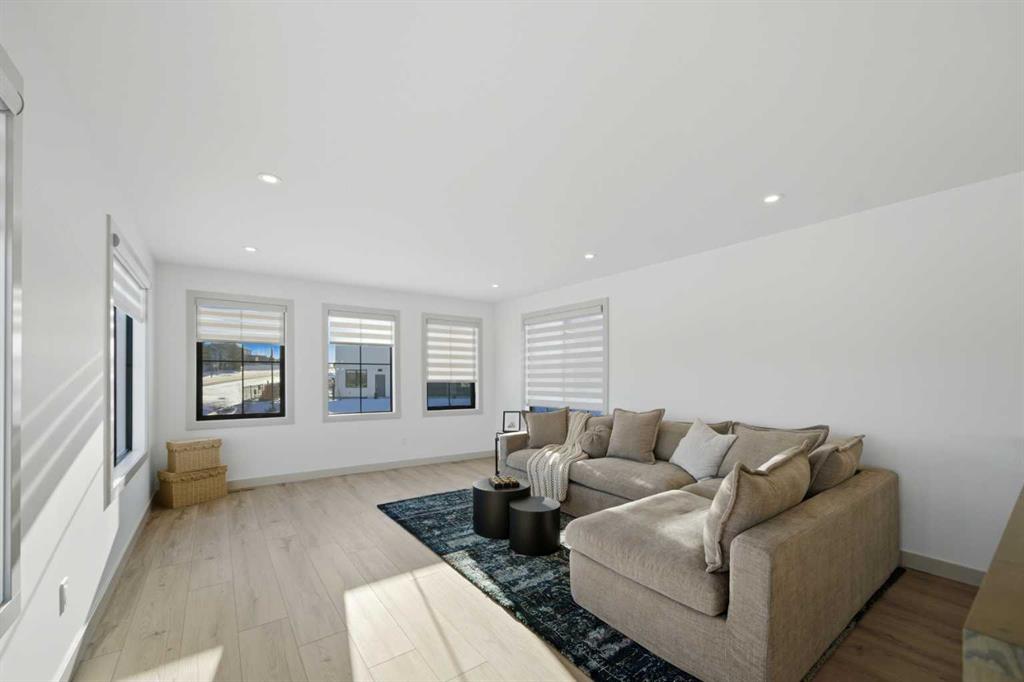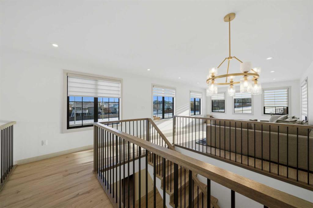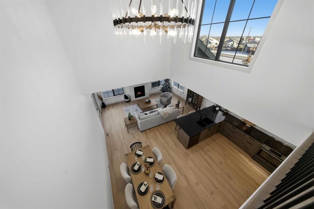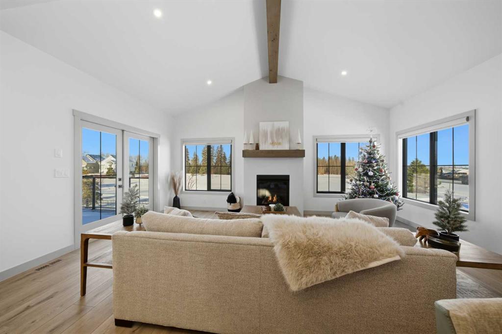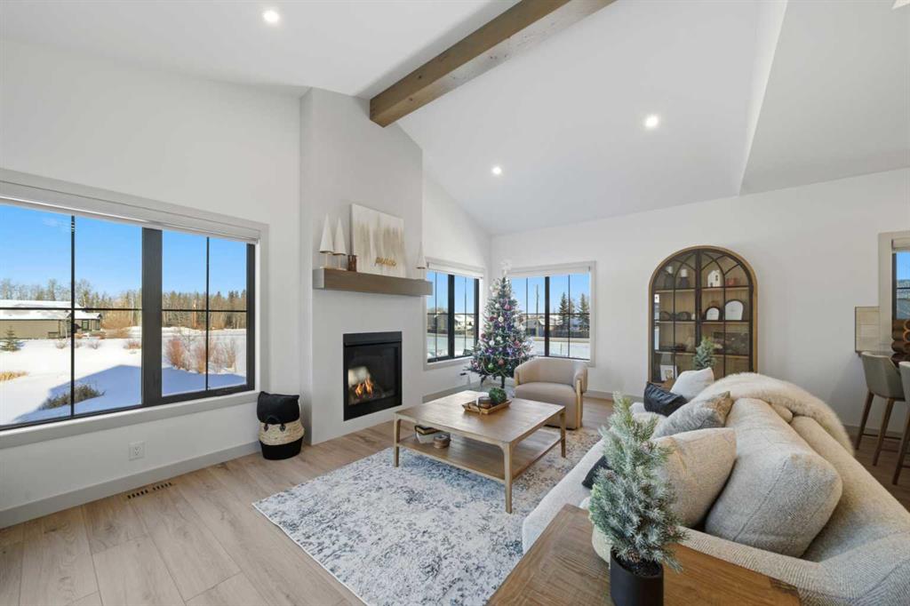 Tucked into the prestigious Sixty West community of Sylvan Lake, this exceptional luxury bungalow with loft is a masterclass in refined design, comfort, and craftsmanship. Thoughtfully planned for elegant main-floor living, the home showcases over 3,750 sq. ft. of beautifully finished living space, blending timeless architecture with modern sophistication. The main level features expansive living areas adorned with luxury vinyl plank flooring, custom cabinetry, and durable Cambrian quartz countertops, creating a polished yet inviting atmosphere ideal for both entertaining and everyday life. A versatile upper-level loft offers additional space for a home office, bonus room, or private guest retreat, while maintaining an open connection to the main living areas below. The primary suite is a true sanctuary, complete with a spa-inspired ensuite featuring heated tile floors and premium finishes. Downstairs, the fully developed lower level is designed as the ultimate entertainment hub, offering generous space for recreation and hosting. Completing this turn-key residence are premium mechanical systems including a high-efficiency boiler with hot water on demand, a full appliance package, custom blinds throughout, and a heated garage with epoxy floors and radiant in-floor heatingall set within one of Sylvan Lakes most sought-after luxury neighbourhoods with 25 acres of trails, parks, ponds, and natural spaces.