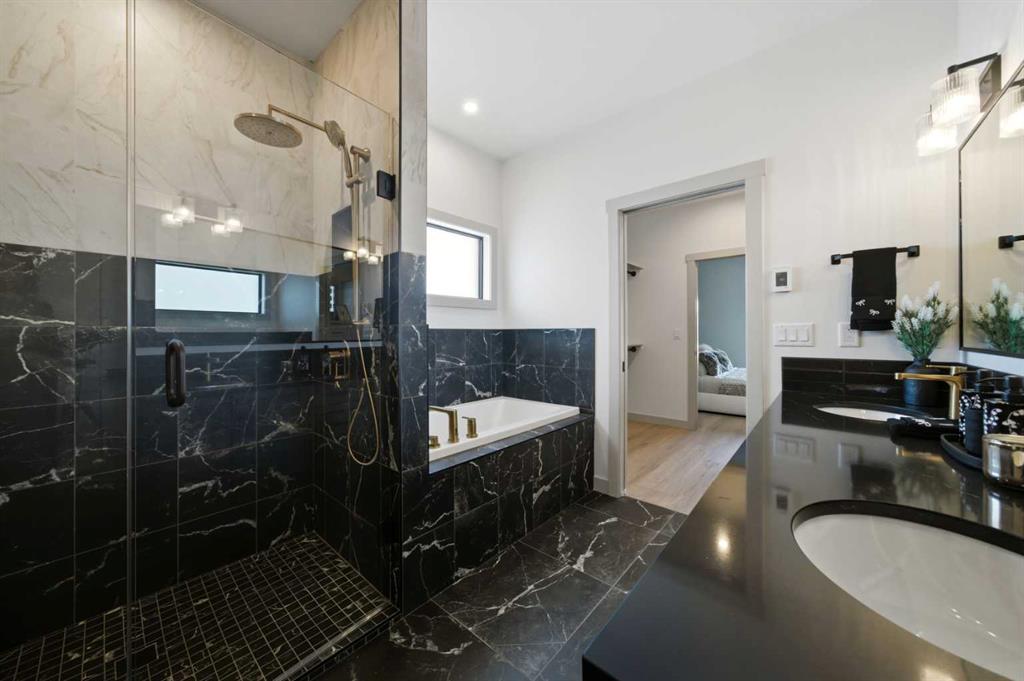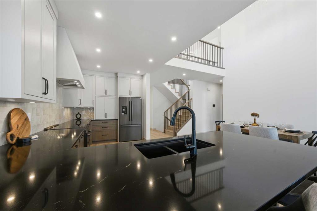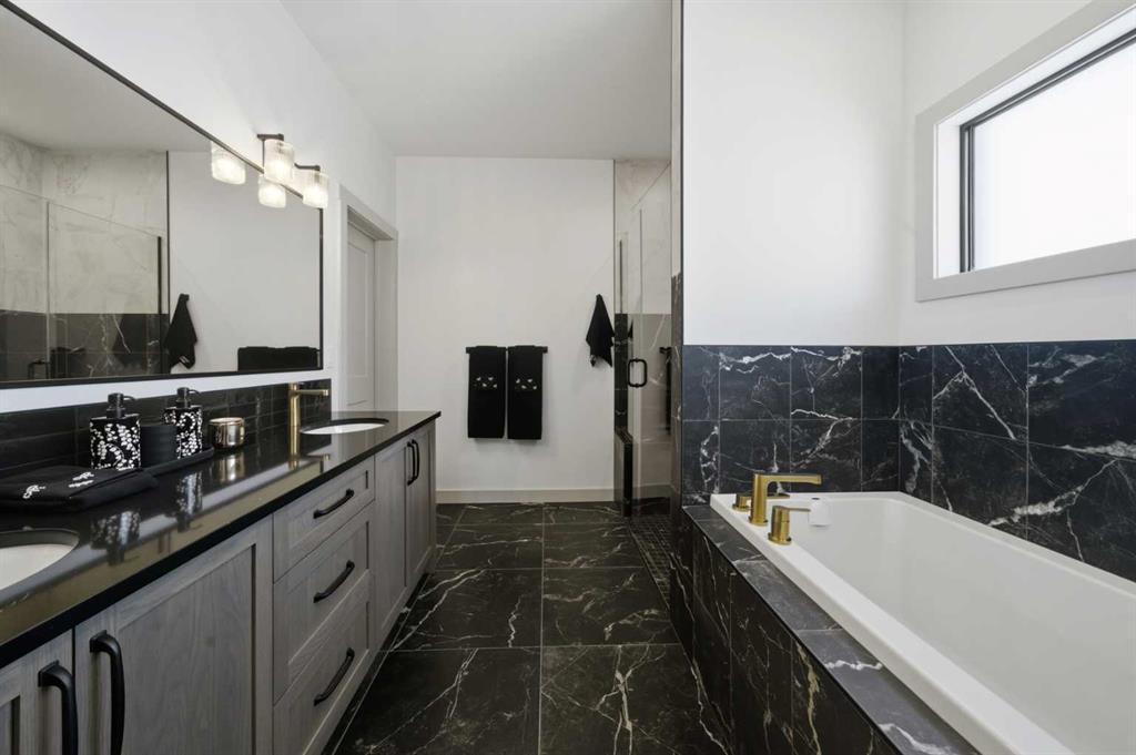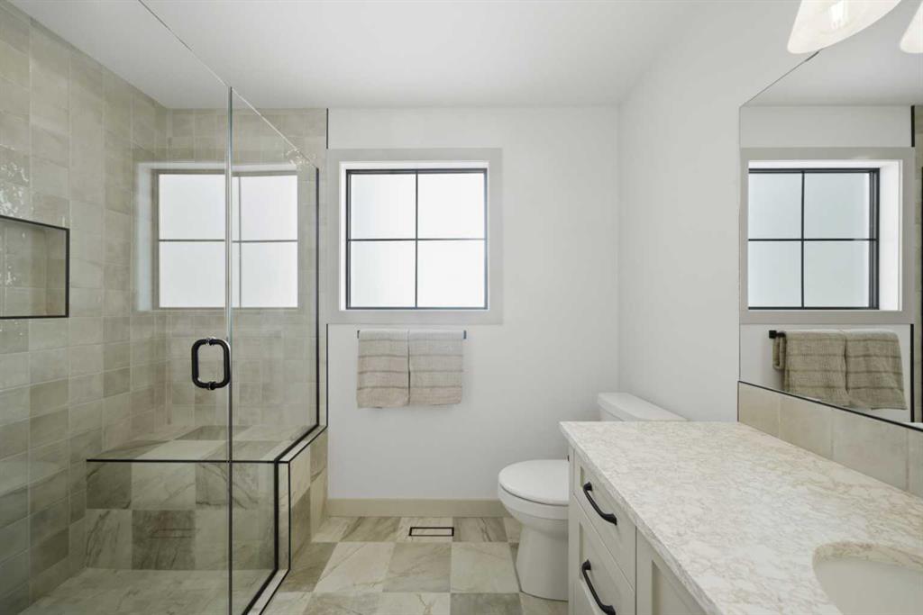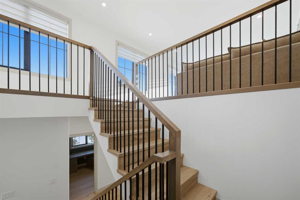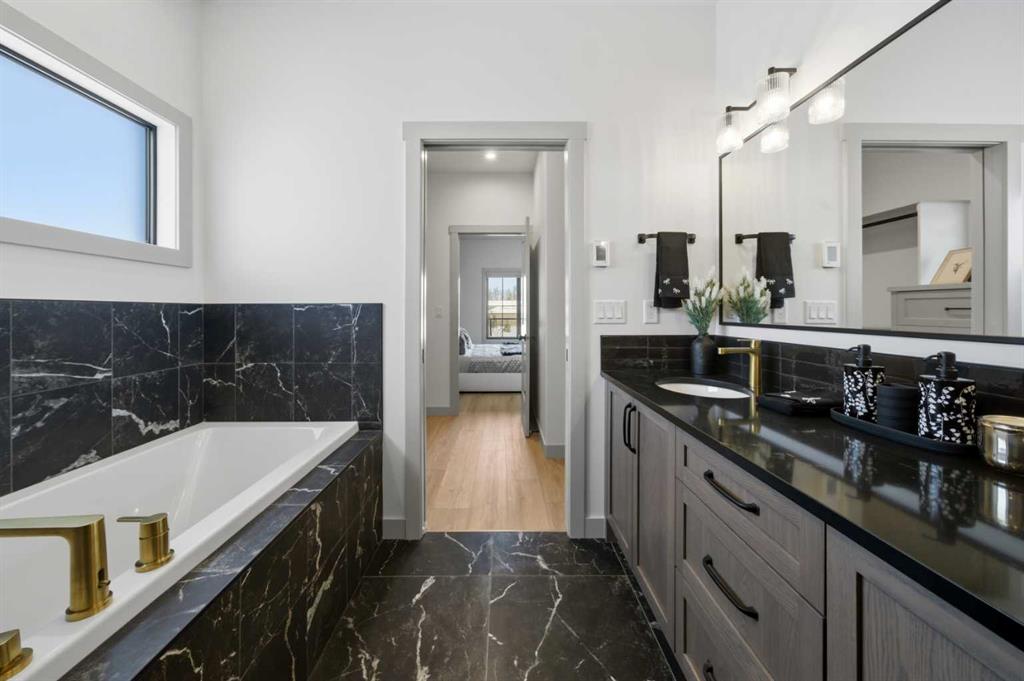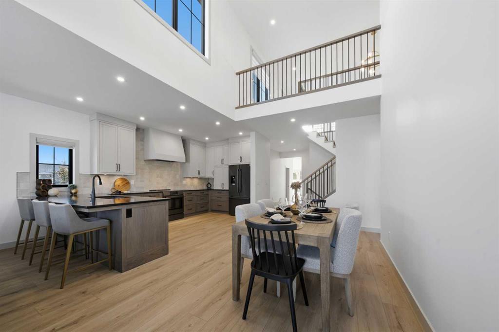 Tucked into the prestigious Sixty West community of Sylvan Lake, this exceptional luxury bungalow with loft is a masterclass in refined design, comfort, and craftsmanship. Thoughtfully planned for elegant main-floor living, the home showcases over 3,750 sq. ft. of beautifully finished living space, blending timeless architecture with modern sophistication. The main level features expansive living areas adorned with luxury vinyl plank flooring, custom cabinetry, and durable Cambrian quartz countertops, creating a polished yet inviting atmosphere ideal for both entertaining and everyday life. A versatile upper-level loft offers additional space for a home office, bonus room, or private guest retreat, while maintaining an open connection to the main living areas below. The primary suite is a true sanctuary, complete with a spa-inspired ensuite featuring heated tile floors and premium finishes. Downstairs, the fully developed lower level is designed as the ultimate entertainment hub, offering generous space for recreation and hosting. Completing this turn-key residence are premium mechanical systems including a high-efficiency boiler with hot water on demand, a full appliance package, custom blinds throughout, and a heated garage with epoxy floors and radiant in-floor heatingall set within one of Sylvan Lakes most sought-after luxury neighbourhoods with 25 acres of trails, parks, ponds, and natural spaces.