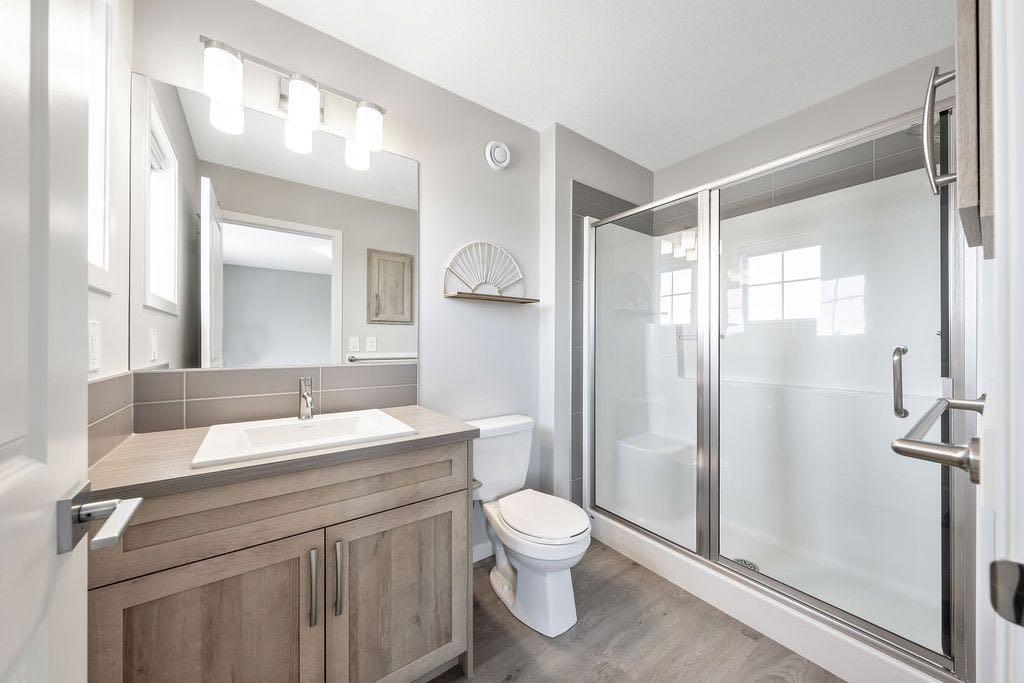 Welcome to this beautifully built Morrison Homes half duplex offering a functional, open-concept design and thoughtful upgrades throughout. The spacious foyer welcomes you with 9-foot knockdown ceilings and luxury vinyl plank flooring that flows seamlessly across the main level. The dining area features large picture windows overlooking the entrance to D’Arcy Ranch Golf Course. The kitchen is well equipped with a large quartz island, full-height cabinetry, trendy subway tile backsplash, and an upgraded stainless steel appliance package. The south-facing living room is filled with natural light, creating a warm and inviting atmosphere. Upstairs, the primary bedroom easily accommodates a king-sized bed and furniture and includes a generous walk-in closet and a 3-piece ensuite with a walk-in shower. A second well-sized bedroom has convenient access to a 4-piece bathroom. The lofted bonus room is perfect for relaxing and can easily be converted into a third bedroom if desired. Second-floor laundry adds everyday convenience. The undeveloped basement offers a large window, bathroom rough-in, and endless potential for future development. Additional features include air conditioning, a water softener, a fully fenced yard, and a double detached garage. Located in a desirable community with golf course views, this home combines quality craftsmanship, comfort, and flexibility—ready to meet your lifestyle needs.
