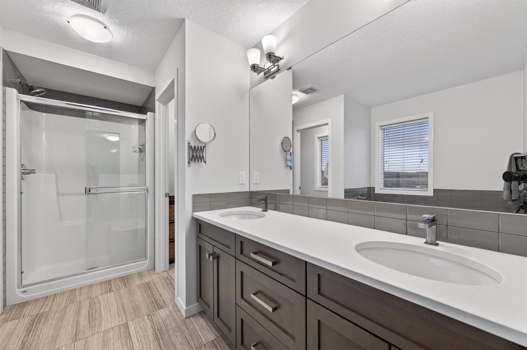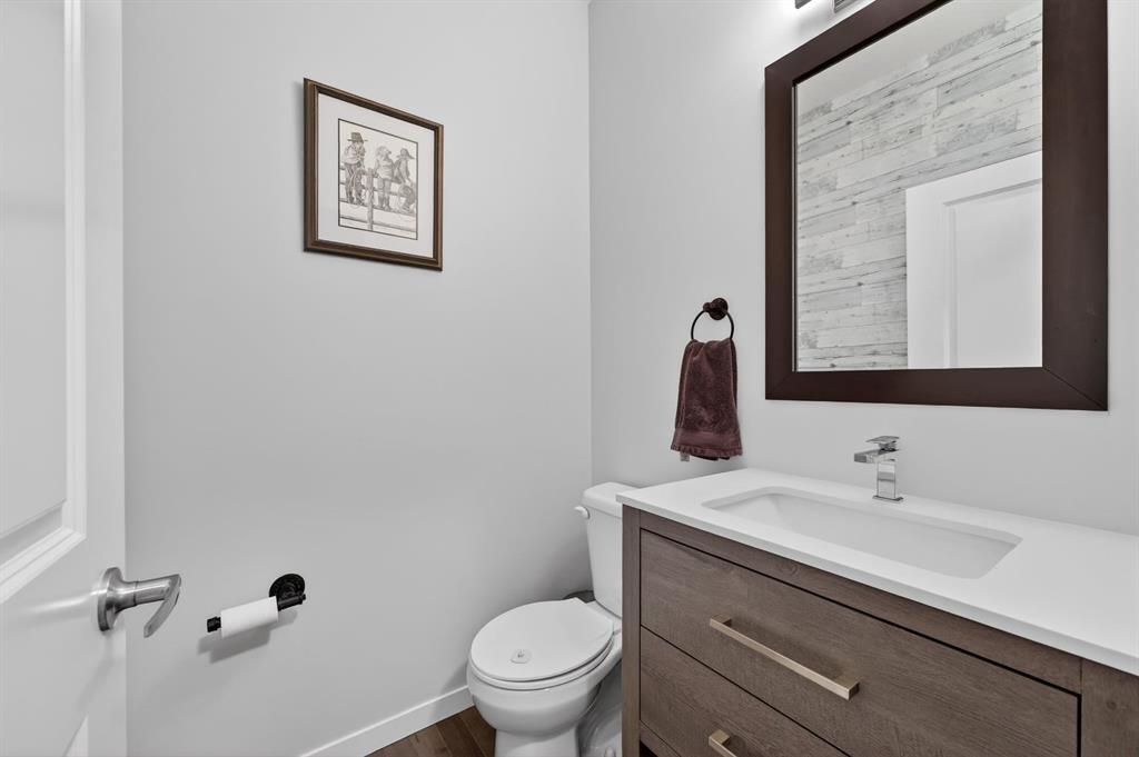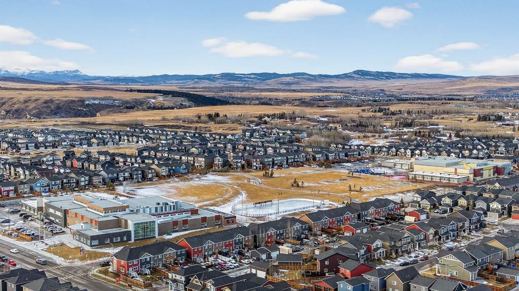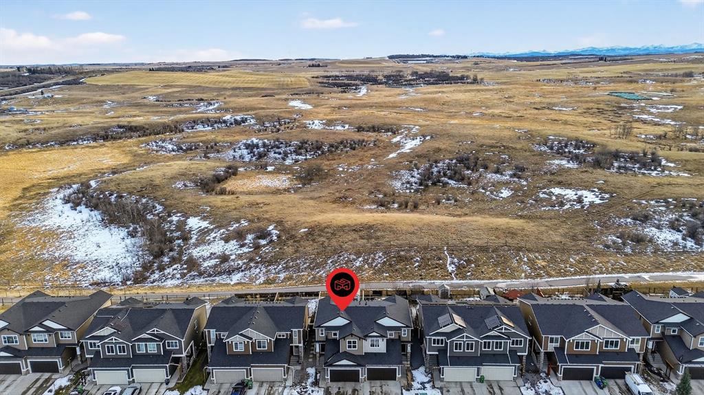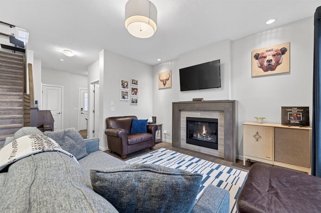 Welcome to this beautifully curated and move-in-ready 3 bedroom, 2.5 bathroom semi-detached (half duplex) in the highly desirable community of Fireside in Cochrane. Thoughtfully designed and meticulously maintained, this two-storey home with a fully developed basement offers elevated finishes, functional living spaces, and an exceptional outdoor setting backing onto municipal reserve green space and a regional pathway, providing privacy, open views, and no neighbours directly behind. The main floor features a bright, open-concept layout with hardwood flooring throughout, seamlessly connecting the living room, dining area, and kitchen. The living room is anchored by a cozy fireplace with a tiled surround and elegant mantel, creating a welcoming space for family gatherings or quiet evenings. The kitchen blends style and function with quartz countertops, ceiling-height cabinetry, soft-close doors and drawers, stainless steel appliances including a gas stove, upgraded lighting, and additional pot lights. Large south-facing windows flood the home with natural light and frame peaceful green space views, while central air conditioning and professionally installed UV sun film enhance year-round comfort and energy efficiency. Upstairs, you’ll find three spacious bedrooms, including a serene primary retreat overlooking the reserve with picturesque west-facing mountain views, a generous 5-piece ensuite, and ample closet space. The additional bedrooms are ideal for children, guests, or a home office, with one offering a walk-in closet. A full 4-piece bathroom and convenient upper-level laundry with NEW washer and dryer (2025) complete this level. The fully developed basement adds valuable living space with a versatile recreation area perfect for movie nights, a playroom, home gym, or office, along with ample storage to keep everything organized. Outside, enjoy a sunny south-facing backyard designed for both relaxation and functionality. The space includes raised garden boxes, a storage shed, and direct access to the reserve and regional pathway system, ideal for family walks, runners, and cycling enthusiasts. Additional highlights include a double insulated garage with storage, upgraded tile at the garage entry and bathrooms, quartz counters throughout, keyless entry, and full professional landscaping, making this home truly turn-key. This home is MOVE-IN READY, just a short walk to Fireside School (K–8) and Holy Spirit Catholic School (K–8), along with scenic walking paths, playgrounds, restaurants, an NHL-sized outdoor hockey rink, baseball diamond, and three soccer fields located in the heart of the community. A gas bar, pharmacy, and everyday conveniences are close by. Fireside is a complete, thoughtfully planned community offering schools, parks, open spaces, and commercial amenities. Its strong walkability encourages an active, family-oriented lifestyle, all just 15 minutes to Calgary and 45 minutes to the heart of the Rocky Mountains.