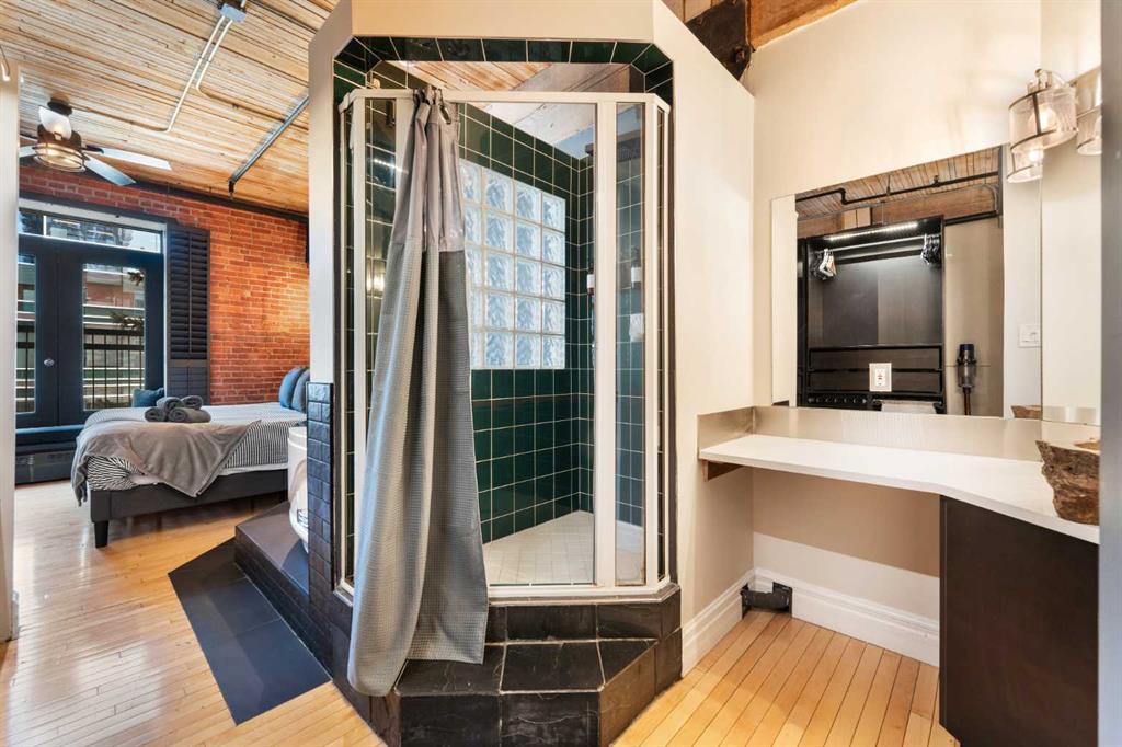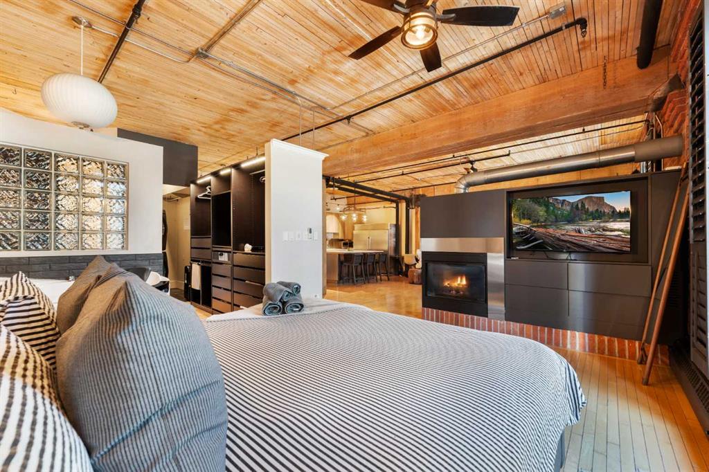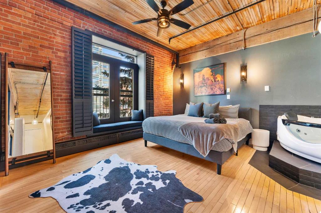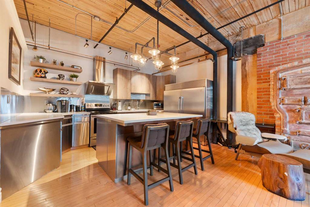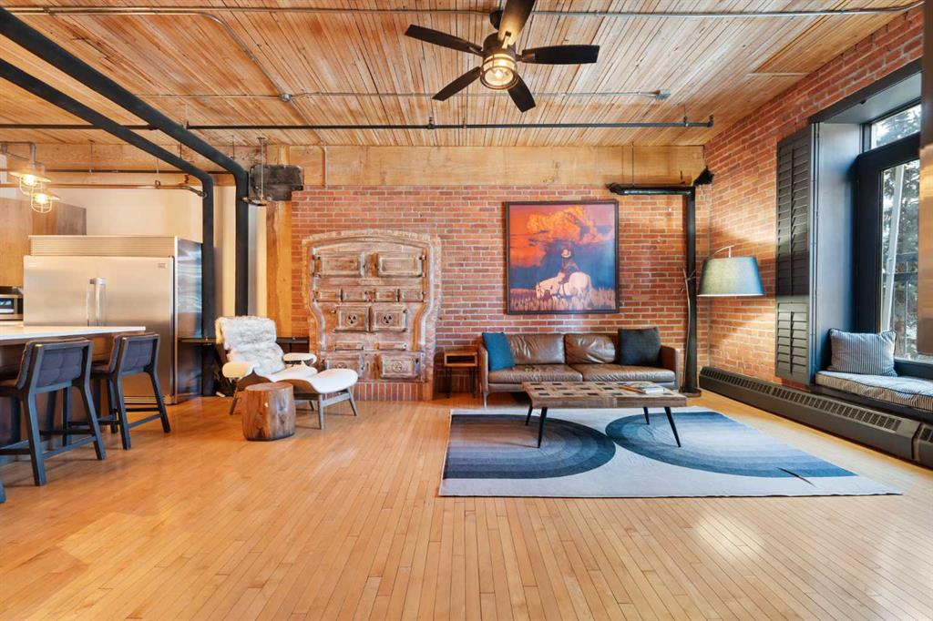 Downtown living at its finest, right on vibrant 10th Avenue SW, just steps from some of Calgary’s coolest restaurants, cafés, and nightlife. This exceptional loft is located in Calgary’s oldest warehouse, originally built in 1909 by the Hudson’s Bay Company, and thoughtfully converted into distinctive residential and commercial live-in lofts. The open-concept layout proudly showcases the building’s heritage, featuring original fir wood ceilings, exposed brick, drop-down beams, and exposed piping, all seamlessly complemented by sleek contemporary finishes. The gourmet kitchen is thoughtfully designed for both form and function, offering stainless steel appliances, a Miele dishwasher, quartz countertops, a Frigidaire refrigerator, and custom cabinetry. A striking central island provides the perfect setting for casual dining or entertaining. Steeped in history yet effortlessly modern, this space showcases true industrial elegance with soaring 13-foot ceilings and original architectural character that speaks to its storied past and inspires creativity and innovation in every corner. Large windows flood the loft with natural light, enhancing the open-concept layout and emphasizing the rich textures and craftsmanship found throughout. One of the few buildings that allows both residential and commercial use, this versatile loft offers flexibility as a stylish home with generous living and dining spaces or as an inspiring professional workspace, complete with a convenient two-piece bathroom. The expansive bedroom—easily adaptable as a premium office—features a luxurious ensuite with a tub and separate shower, along with a spacious closet. French doors open to a Juliet balcony, filling the space with natural light and fresh air. This is loft living redefined—a rare fusion of heritage and contemporary style. The raw, artistic aesthetic creates a canvas for personal expression, while the expansive layout offers flexibility for both everyday living and entertaining. Whether you’re drawn to its vintage charm, creative energy, or unbeatable downtown location, this loft offers a unique urban sanctuary in the heart of Calgary. The building features private underground parking, a generous separate storage space, and a fitness facility. A true blend of heritage meets modernity, this one-of-a-kind residence is perfect for those who appreciate history, character, and the energy of inner-city living.