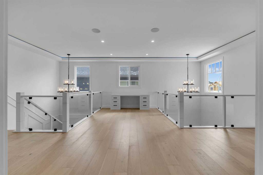 [OPEN HOUSE - THIS SATURDAY JANUARY 31 - 2PM TO 4PM] AMAZING OPTION FOR YOU - BUILDER WILLING TO BUILD A LEGAL SUITE W 2 BEDS & 1 FULL BATH (COST TO BE DETERMINED BASED ON REQUIREMENTS & LEGAL SUITE DEVELOPMENT IS SUBJECT TO CITY APPROVAL) - OVER 3200 SQFT, BRAND NEW HOME, TRIPLE ATTACHED GARAGE, 5 BEDROOMS, 4 BATHROOMS, SIDE ENTRANCE TO BASEMENT - ELEGANT DESIGN AND MODERN FINISHING - This home in Kinniburgh is perfect for a large family and offers the convenience of being close to shops, schools, the lake and all that Chestermere has to offer. Walking in to your home you are greeted with a large foyer and storage space. A hallway connects a den (that can be used as a bedroom), and bathroom to the rest of the main living space. The TRIPLE ATTACHED GARAGE, opens into a mud room and SPICE KITCHEN which allows you to keep your home in pristine condition. The kitchen is a chef's dream with built in STAINLESS STEEL appliances, a large island and beautiful wood finished cabinets. A large living room is warmed with a TILE FACED FIREPLACE, and this space opens onto your DECK. The second floor boasts 4 bedrooms and 3 bathrooms. Including 1 primary ensuite with and expansive 5PC bathroom and a large walk in closet. This bathroom has a full size soak tub and dual vanities. Another bedroom is complete with an ensuite bathroom and walk in closet. 2 other bedrooms and 1 bathroom, laundry and a large family room complete this floor. Welcome to your home! Please note that front landscaping and finishing will be done including a tree. Option for the builder to develop the basement already includes SIDE ENTRANCE. Interior pictures are from another home built by the builder.