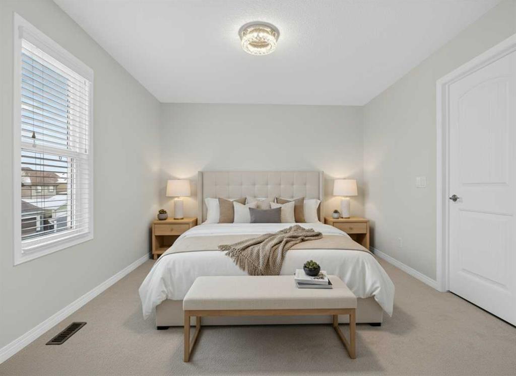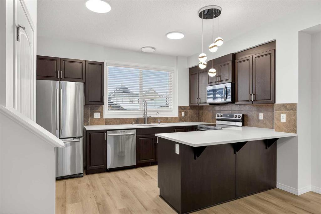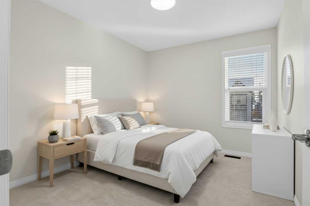 Lake Privileges in Mahogany! This "like new" two-storey Jayman-built home offers over 2,270 sq. ft. of renovated living space. The exterior features new sod and a new fence with two new gates. Inside, discover new quartz countertops throughout the kitchen and all bathrooms, complemented by new sinks, soap dispenser, and stainless steel appliances (brand new stove - never used)! The kitchen is further upgraded with high-end fixtures and a Kinetico water filtration system. The main floor shines with new luxury wide-vinyl plank flooring and designer lighting, including colour-changing disc lights. Brand new "luxury ivory wedlock" carpets throughout with upgraded thick underlay! Upstairs, the primary suite includes a private ensuite, plus two additional spacious bedrooms and a 4 piece bathroom. The entire home has been freshly repainted, including all baseboards and railings. The fully finished "warm" basement features a fourth bedroom or office, a large recreation area perfect for a home theatre, and another four piece bathroom. Technical highlights include a tankless hot water system, a high-efficiency furnace (recently serviced and ducts cleaned), triple-pane low-E windows, and solar panel rough-ins. Added peace of mind comes with new Eufy smart door locks and a doorbell camera, enhancing both security and everyday convenience. Enjoy Hunter Douglas blinds and the peace of mind of a non smoking home that has been meticulously maintained—having never housed children or pets and just deep-cleaned for its next owners. This property also includes an oversized deck, an oversized double detached garage, and a back alley approved for paving. Perfectly situated on a quiet, family-friendly street, you are within walking distance of schools, wetlands, and shopping. Commuting is effortless with Deerfoot and Stoney Trail just 10 minutes away, plus close proximity to the world’s largest YMCA and South Health Campus Hospital. Best of all, enjoy full access to Mahogany’s famous 63-acre lake and Beach Club. From summer swimming and kayaking to winter skating and hockey, this community offers year-round sports, gymnasium access, and family-friendly activities and entertainment. This pristine property truly shows like a model home!