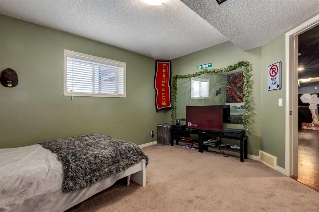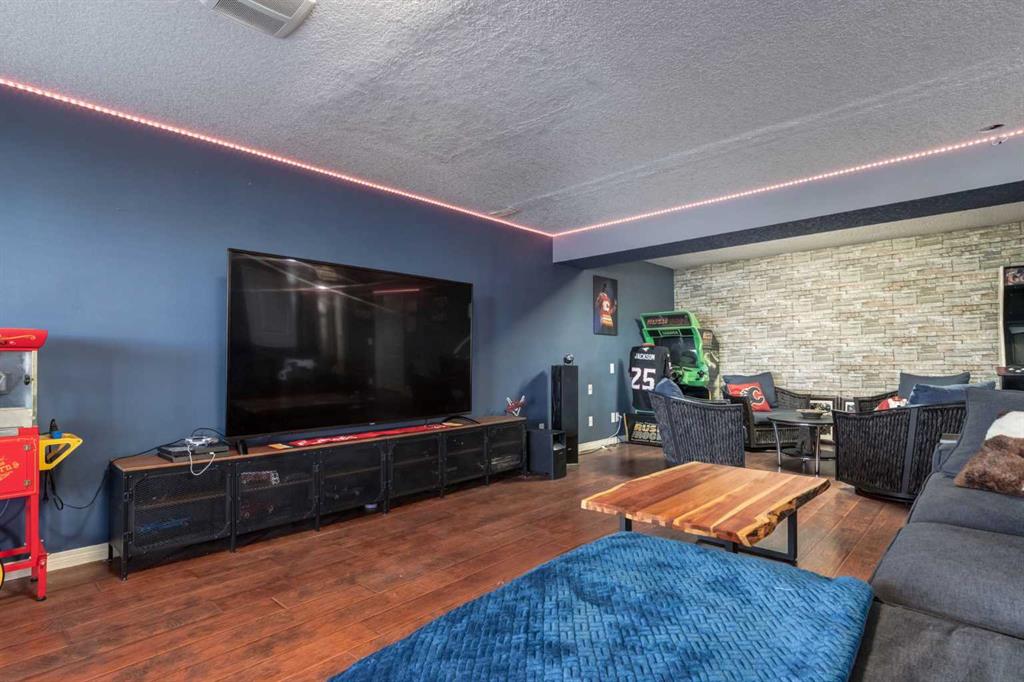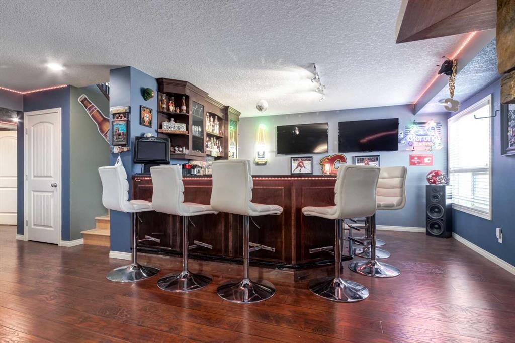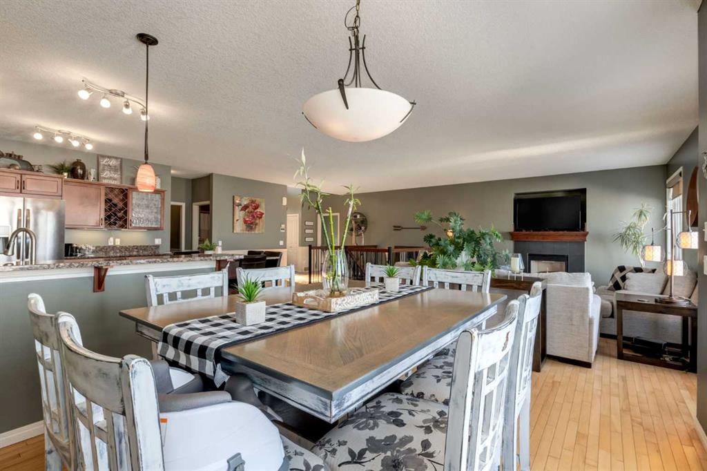 WALKOUT BUNGALOW on the GOLF COURSE!!!! Located perfectly on a quiet, family-friendly street and backing onto the Boulder Creek Golf Course, this home has it all. Pull up to this property and notice the beautifully landscaped property and your 3-CAR GARAGE! That pride of ownership carries into the house as you open the front door to stunning views of the golf course. The main level boasts an open concept, 9' ceilings and hardwood floors and a spacious executive kitchen with a large, functional island complete with eating bar for 4, a corner pantry , stainless appliances and lots of functional cabinetry. The living area has large sun-soaked windows and a cozy fireplace perfect for those cold winter nights. The primary suite is spacious and boasts a 5 pc ensuite with granite countertops and a generous walk-in closet. Your main level is finished off with a 2nd Bedroom/Den/Gym, another 4 pc bath, a large mud room and upstairs laundry. The walk-out basement is well-appointed and is the entertainer's dream and perfect for all those family gatherings. Large rec room & TV area, a DREAM BAR/ENTERTAINMENT area, large 3rd & 4th Bedrooms and another triple-sided fireplace. Enjoy your summer nights in the backyard at the firepit or in the hot tub as you stare at the star or watch the golfer walk by. The DREAM TRIPLE GARAGE is heated with EPOXY floors, full dog run, LED exterior lighting. This property is a must-see and perfect place to call home in Langdon!!!!