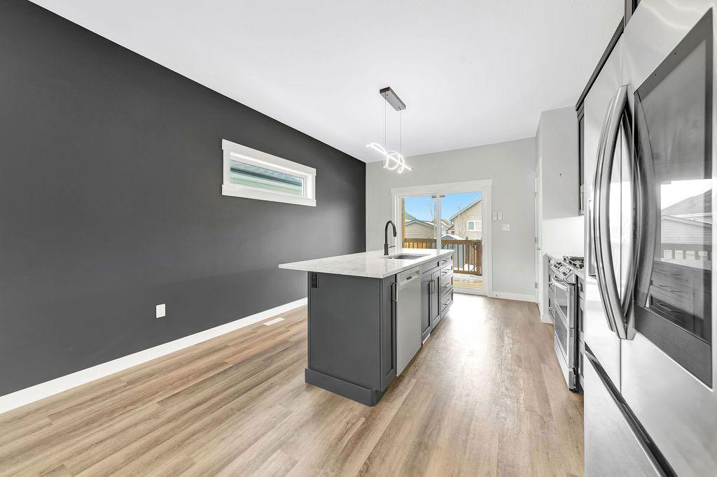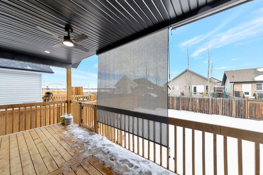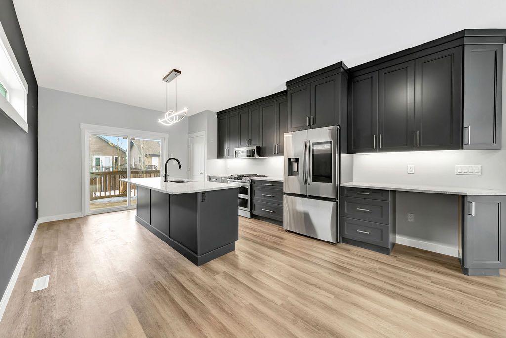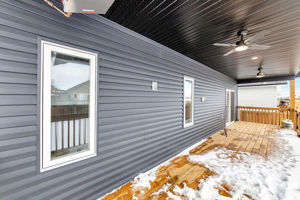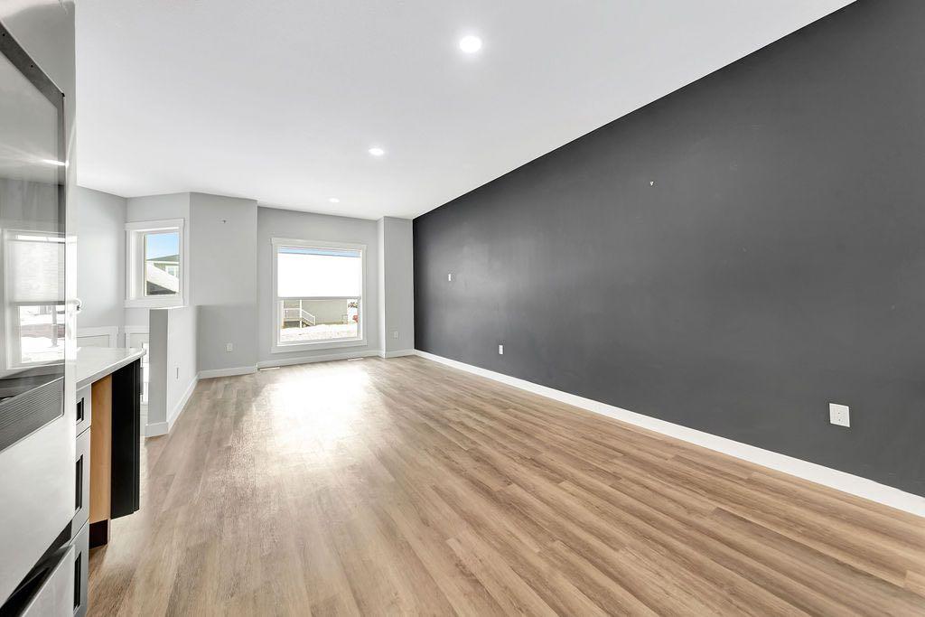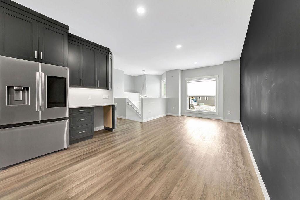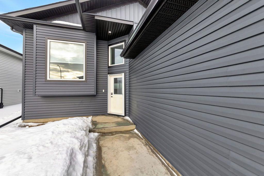 When you pull up to this clean, modern bi-level tucked into the heart of College Park, you know you’ve found something special. Located in one of Lloydminster’s most sought-after neighbourhoods—this lovely home is close to schools, parks, rinks, walking paths, and the Servus Sportsplex. Built in 2024, this home immediately feels warm, intentional, upgraded and well thought out. Inside, the entry opens to a bright, open-concept main floor with vinyl plank flooring, 9-foot ceilings, and recessed lighting throughout the living, dining, and kitchen spaces. The kitchen is a standout: beautiful navy cabinetry that goes all the way up to the ceiling with soft-close hardware, full-height storage, granite countertops, a generous 3’ x 8’ island, stainless steel appliances, and a gas stove with double oven—both functional and striking. Large patio doors lead to a covered deck outfitted with custom privacy blinds and a gas deck heater, making outdoor living comfortable well beyond summer. The home’s south-facing orientation fills the space with natural light. Three bedrooms and two baths on the main floor are thoughtfully designed, with blackout blinds in the bedrooms and a primary suite featuring a walk-in closet with custom cabinetry and a sleek ensuite with a large walk-in shower and matte black fixtures. The main bath mirrors the same quartz and cabinetry finishes. The basement is undeveloped, offering buyers the opportunity to customize layout and finishes to suit their wants and needs. Practical upgrades continue in the garage with epoxy floors, metal storage racks, floor drain, and heat prep already in place. This is a polished, low-maintenance home with flexibility for the future. Situated in one of Lloydminster’s most consistently sought-after neighbourhoods, this beauty won’t last! Book your showing today.