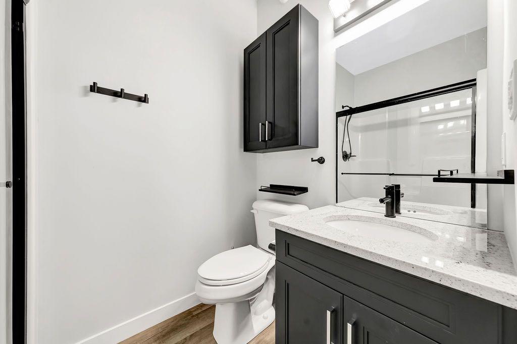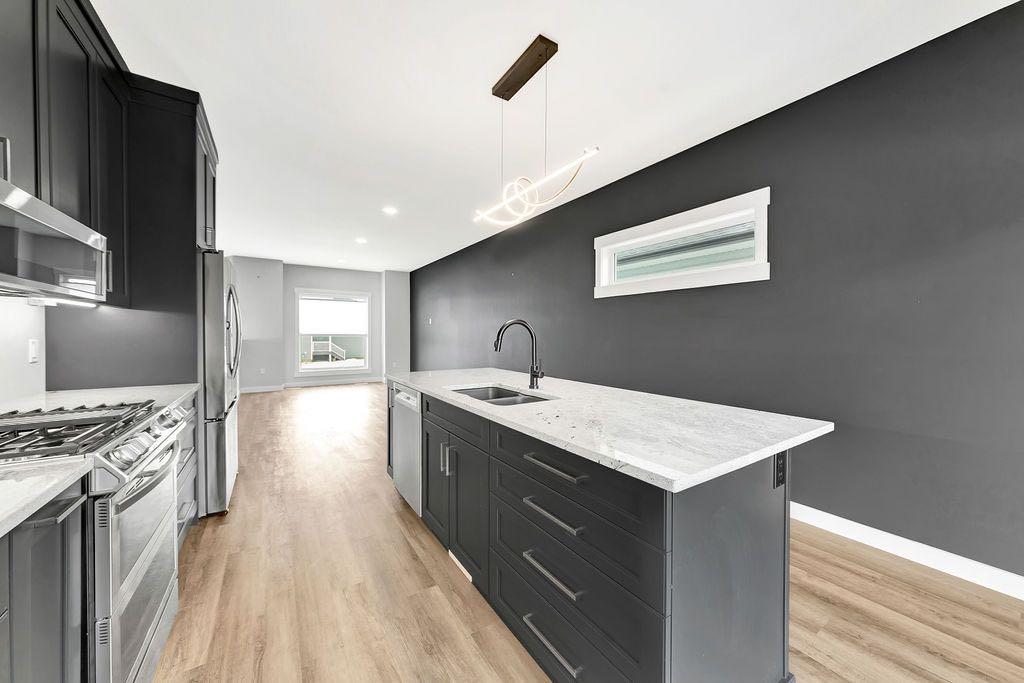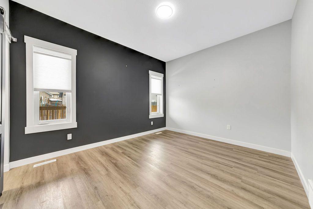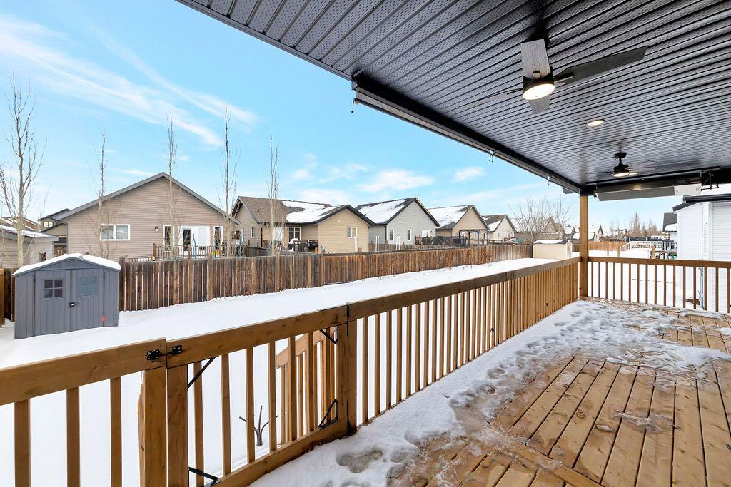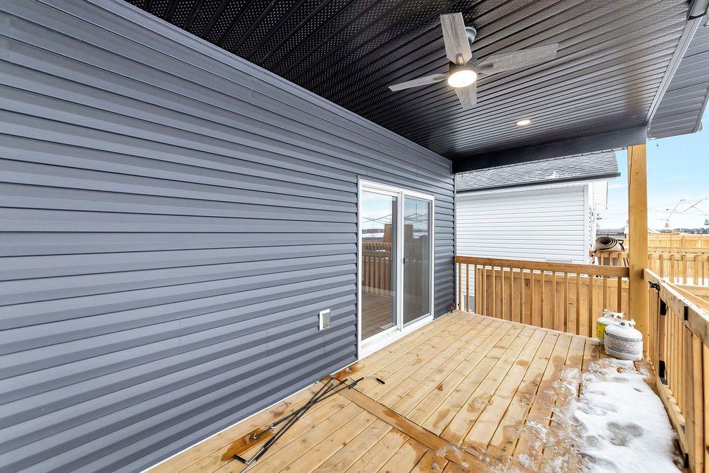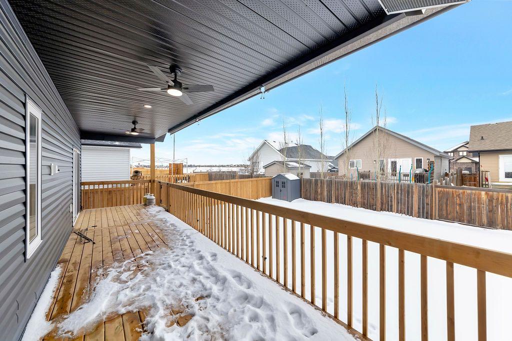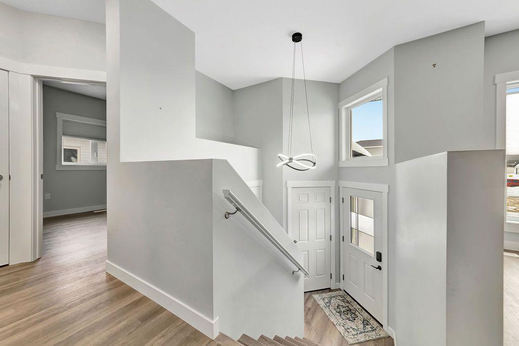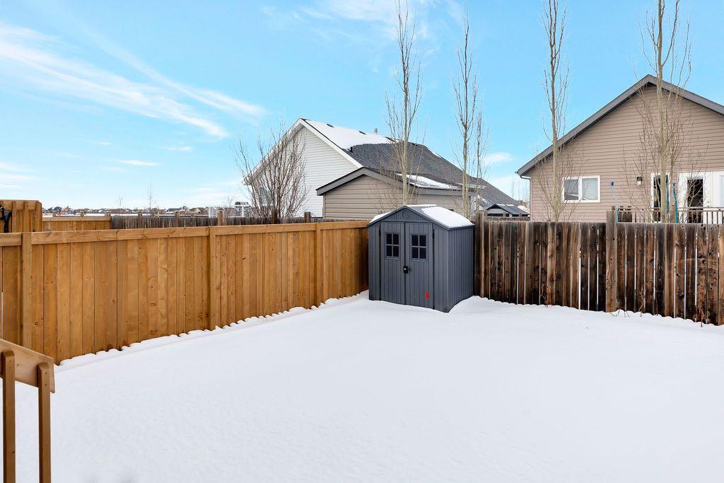When you pull up to this clean, modern bi-level tucked into the heart of College Park, you know you’ve found something special. Located in one of Lloydminster’s most sought-after neighbourhoods—this lovely home is close to schools, parks, rinks, walking paths, and the Servus Sportsplex. Built in 2024, this home immediately feels warm, intentional, upgraded and well thought out. Inside, the entry opens to a bright, open-concept main floor with vinyl plank flooring, 9-foot ceilings, and recessed lighting throughout the living, dining, and kitchen spaces. The kitchen is a standout: beautiful navy cabinetry that goes all the way up to the ceiling with soft-close hardware, full-height storage, granite countertops, a generous 3’ x 8’ island, stainless steel appliances, and a gas stove with double oven—both functional and striking. Large patio doors lead to a covered deck outfitted with custom privacy blinds and a gas deck heater, making outdoor living comfortable well beyond summer. The home’s south-facing orientation fills the space with natural light. Three bedrooms and two baths on the main floor are thoughtfully designed, with blackout blinds in the bedrooms and a primary suite featuring a walk-in closet with custom cabinetry and a sleek ensuite with a large walk-in shower and matte black fixtures. The main bath mirrors the same quartz and cabinetry finishes. The basement is undeveloped, offering buyers the opportunity to customize layout and finishes to suit their wants and needs. Practical upgrades continue in the garage with epoxy floors, metal storage racks, floor drain, and heat prep already in place. This is a polished, low-maintenance home with flexibility for the future. Situated in one of Lloydminster’s most consistently sought-after neighbourhoods, this beauty won’t last! Book your showing today.