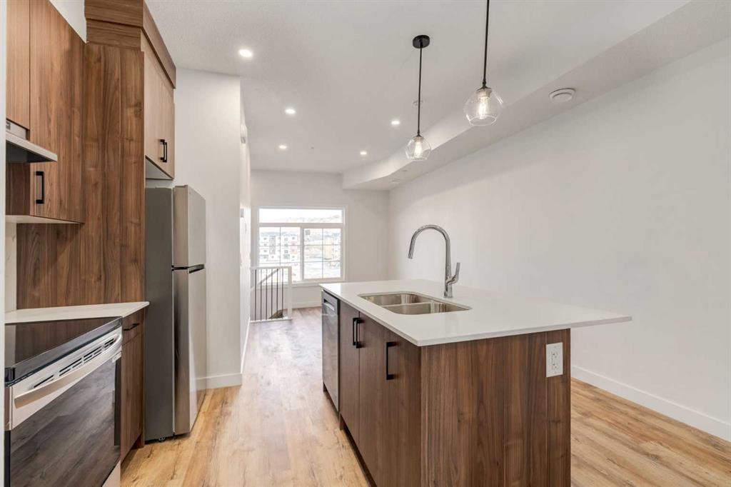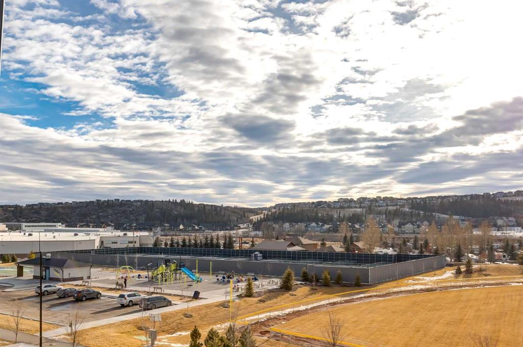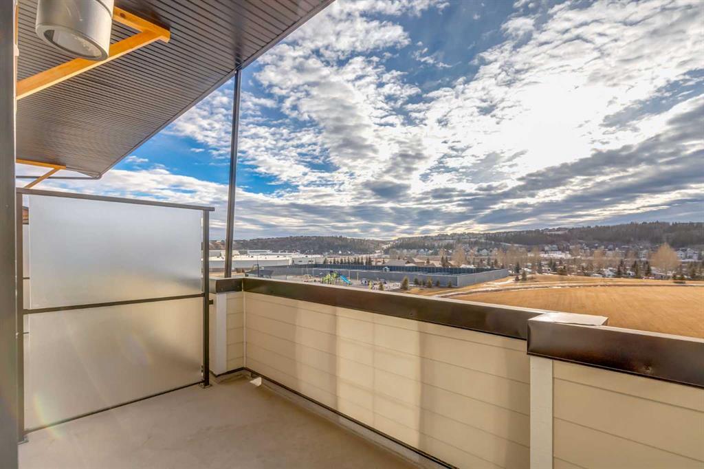 Welcome to the heart of Cochrane, where this beautiful brand-new three-bedroom, two-bathroom home offers the perfect blend of modern living and mountain lifestyle. Ideally located directly across from the community recreation centre and outdoor fitness facility, this home sits in one of Cochrane’s most desirable new, walkable communities—designed to keep nature, convenience, and connection at your doorstep. Enjoy quick access to local amenities, with Calgary just 20 minutes away and Banff only 40 minutes west. Inside, you are greeted by a bright, open-concept floor plan featuring 9-foot ceilings and luxury wide-plank flooring throughout. The gourmet kitchen is thoughtfully designed with quartz countertops, soft-close cabinetry, premium stainless steel appliances, and a large island ideal for entertaining or casual dining. The home offers three spacious bedrooms and two full bathrooms, each finished with modern fixtures, stone tile flooring, and matching quartz vanities. Additional highlights include a single attached garage plus an extra parking pad, providing ample space for vehicles and guests. Step outside to your private balcony and enjoy peaceful views overlooking the water and amazing mountain views, or take advantage of the brand-new pickleball courts and rec center located just across the street. You will enjoy easy access to restaurants, cafés, shopping, Co-op grocery store—truly everything you need, right where you want to be. This property is perfect for you to move into or as a rental with Cochrane's growing and strong rental market. Air bnb is also an option with condo board approval. Book your showing today!!