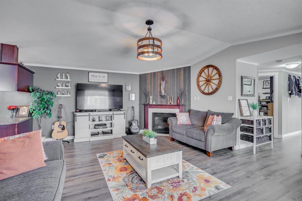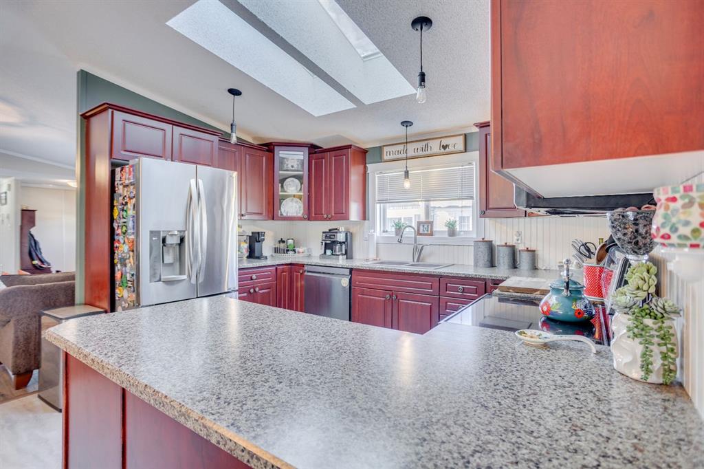 Double Wide • No Condo Fees • Air Conditioning • Meticulously Maintained Welcome to 157 Elm Street, a beautifully maintained 1,523 sq. ft. double-wide mobile home situated on a 4,445 sq. ft. fully fenced lot in the established and desirable neighbourhood of Timberlea. The bright, open-concept living room features vaulted ceilings, a stylish feature wall, new laminate flooring, and a cozy corner gas fireplace—perfect for relaxing on cold winter evenings. The spacious kitchen is filled with natural light from an overhead skylight with heat trace and offers new laminate countertops, stainless steel appliances (replaced in 2017), linoleum flooring, and ample cabinet and counter space. This home offers three well-sized bedrooms, including a generous primary suite complete with a walk-in closet and a 4-piece ensuite featuring ceramic tile flooring and a relaxing soaker tub. Two additional bedrooms are located on the opposite side of the home and share direct access to a 4-piece bathroom and a second living area, ideal for a home office or family room. The separate laundry room adds convenience and functionality. Outside, enjoy a deck overlooking the yard, an 8' x 10' storage shed, and recent upgrades including a new belly bag, fresh sod laid in August, and a professionally filled and sealed driveway. No condo fees and move-in ready—this home offers exceptional value. Call today to schedule your private viewing.