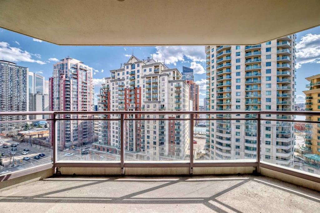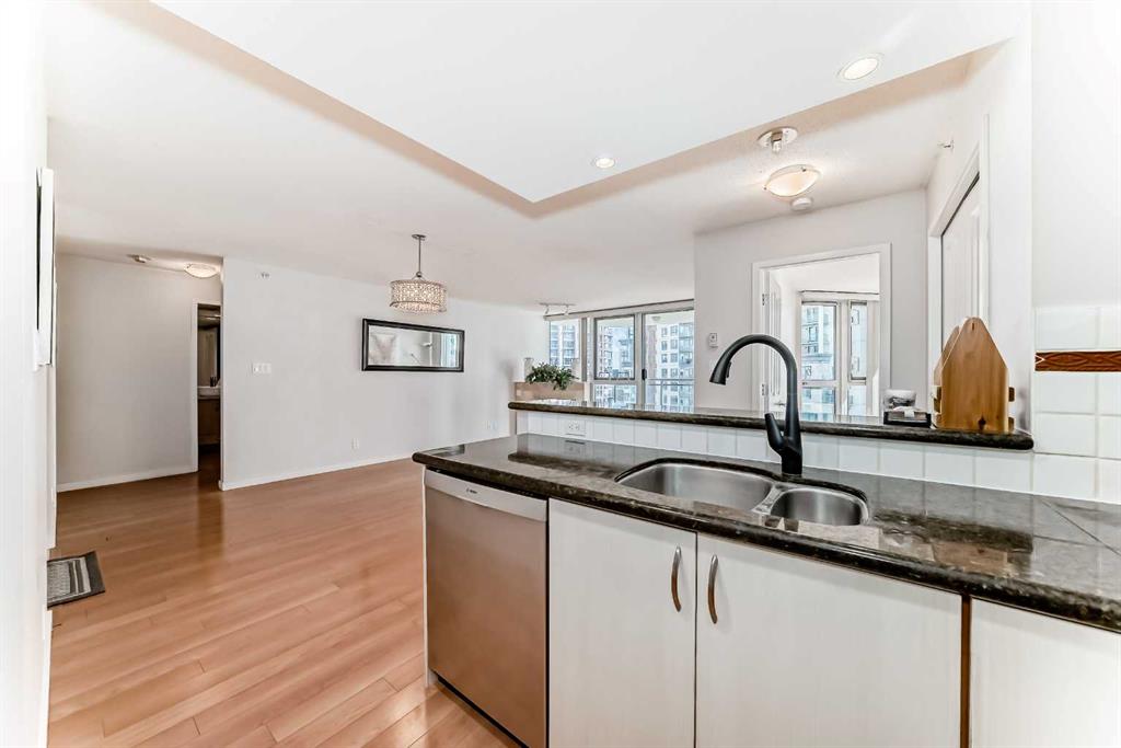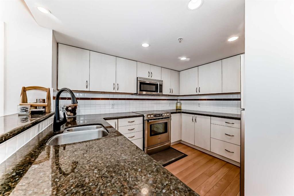 Live the Luxe Urban Dream in Downtown Calgary. Welcome to The Marquis – where sophisticated downtown living meets comfort, convenience, and style. This is the home you’ve been waiting for! Affordable 2-bedroom, 2-bathroom sanctuary nestled along the Bow River in one of Calgary’s most vibrant, sought-after neighborhoods. Step into this moderately updated suite. The welcoming entryway features a two full-size coat closet, opening into a bright and vibrant living space anchored by a stunning marble-tiled gas fireplace – the perfect cozy touch for chilly Calgary nights. Rich maple hardwood floors flow throughout the living area and both bedrooms, complemented by expansive windows that flood the home with natural sunlight and includes a portable room air conditioning for those hot summer days. Love to cook? You’ll fall in love with the chef-inspired kitchen featuring gleaming granite countertops, generous cabinetry boasting under cabinet lighting, ample cupboard space with pull-out pot and pan drawers. Premium Bosch stainless-steel appliances – including a sleek induction cooktop, built- in dishwasher, built-in microwave, and oversized double sink with garburator and upgraded faucet. Whether you’re whipping up dinner for friends or preparing a quiet brunch at home, this kitchen is designed for space. The primary suite is a luxurious retreat, complete with private balcony access, walk-through closets, a 4-piece ensuite, heated tiled floor, granite vanity top and a bonus storage closet for all your essentials. Enjoy the privacy of a smart split-bedroom layout, ideal for roommates, guests, or a home office setup. The second bedroom is perfectly positioned near a stylish 3-piece bathroom, granite vanity top, heated tiled floor and beside a spacious laundry room with extra storage and shelving. Your titled underground parking stall is just steps from convenient bike racks and comes with a separate assigned storage unit. And that’s just the beginning. The Marquis is a solid concrete building (including between suites for peace and quiet), with updated common areas that are both elegant and impeccably maintained. The upscale lobby creates a grand welcome for you and your guests. Amenities include 24 indoor visitor parking stalls, a fully equipped fitness center with change rooms, a tranquil yoga studio, and a stylish party room for entertaining. With a walk score of 95, you’re just steps from the riverfront paths, Prince’s Island Park, charming cafés, unique boutiques, acclaimed restaurants, and only one block to the LRT (in the free fare zone!). The energy of Kensington is just across the bridge, and yes – pets are welcome with Board approval. Downtown elegance. Riverfront tranquility. Urban excitement. It’s all here – and it’s waiting for you!