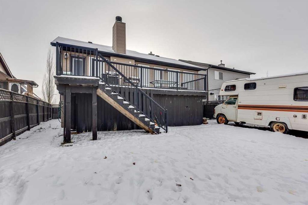 Located on a fairly quiet street in the desirable community of Johnstone Crossing in Red Deer, this well-laid-out 3-storey split offers plenty of space and flexibility for a variety of lifestyles. Upon entering, an office sits to the left, ideal for working from home or easily converted into a home gym, while the right side provides direct access to the double attached garage, perfect for keeping vehicles protected during winter months. A few steps up leads to the main living area, designed with an open floor plan that includes a spacious living room featuring two large windows, a cozy wood-burning fireplace, and a door that opens onto the back deck and yard. This level also offers a generous dining area, a kitchen with a breakfast bar for casual meals, and a convenient 2-piece powder room. The primary bedroom is located on this floor and includes its own 5-piece ensuite bathroom, creating a comfortable and private retreat. The finished basement level adds even more living space with a large recreation or games room, two additional bedrooms, and a 4-piece bathroom, along with a dedicated laundry room and utility room. Outside, the fully fenced backyard offers room to enjoy outdoor living and includes space for RV parking, making this a practical and versatile home in a great Red Deer location.