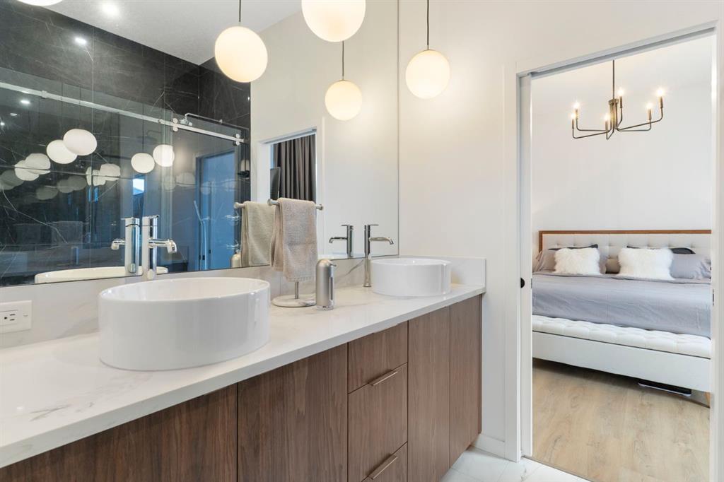 Welcome to 244 Grayling Common, a fully custom Baywest bungalow built in 2022 and located in the award-winning community of Harmony. Designed with intention and high end appointments throughout, this home is ideal for downsizers or lifestyle-focused buyers seeking a turnkey property without compromise. Offering 2000 square feet of fully developed living space, the home features a thoughtful bungalow layout with the primary bedroom on the main level and two additional bedrooms down. While the above-grade footprint is efficient by design, the fully developed basement adds meaningful, flexible living space that allows the home to live far larger than expected. The main floor is designed by 10’ ceilings, oversized windows, a bright, open-concept layout and floor to ceiling custom drapery. The living room is anchored by a striking full height tiled fireplace feature wall, while wide-plank flooring, curated lighting, and a neutral palette create a calm, refined aesthetic. The kitchen blends function and style with ceiling-height cabinetry, quartz countertops, an oversized island, premium appliances, and generous storage, perfect for both everyday living and entertaining. The primary bedroom is a private retreat with direct access to the backyard patio, a spa-inspired ensuite, and a walk-in closet with custom organizers. The fully developed basement continues the home’s elevated feel, offering two additional bedrooms, a spacious bonus room, a versatile gym or studio space as well as a 4 piece bathroom. Outside, the thoughtfully landscaped backyard is a true standout. Designed for privacy and low maintenance, it features mature trees, rock gardens, ornamental grasses, two custom louvered privacy screens, and a spacious patio reinforced for a future hot tub, creating a quiet outdoor oasis with a balance of sun and shade. Additional features include air conditioning, dual zone HVAC with NEST for each level, a hot water recirculating system, radon mitigation infrastructure, solar conduit rough-in, and an oversized 24.2’ wide by 22’ deep double garage with an 8’ door, 10’ ceilings and a full electrical panel easily accommodating two vehicles with room for a golf cart. Ideally positioned with walkable access to pathways, parks, and the Mickelson National Golf Club, this home offers a lifestyle centred around recreation and outdoor living. Harmony is known for its resort-style amenities, including a championship golf course, lake, scenic pathways, local dining, and a state of the art community water treatment system. Future plans for the community include a second lake, a Nordic style spa and expanded village centre, further enhancing Harmony’s appeal. This is a rare opportunity to own a fully finished, custom bungalow in one of the region’s most thoughtfully planned communities, where the work is done, the setting is established, and the lifestyle speaks for itself.