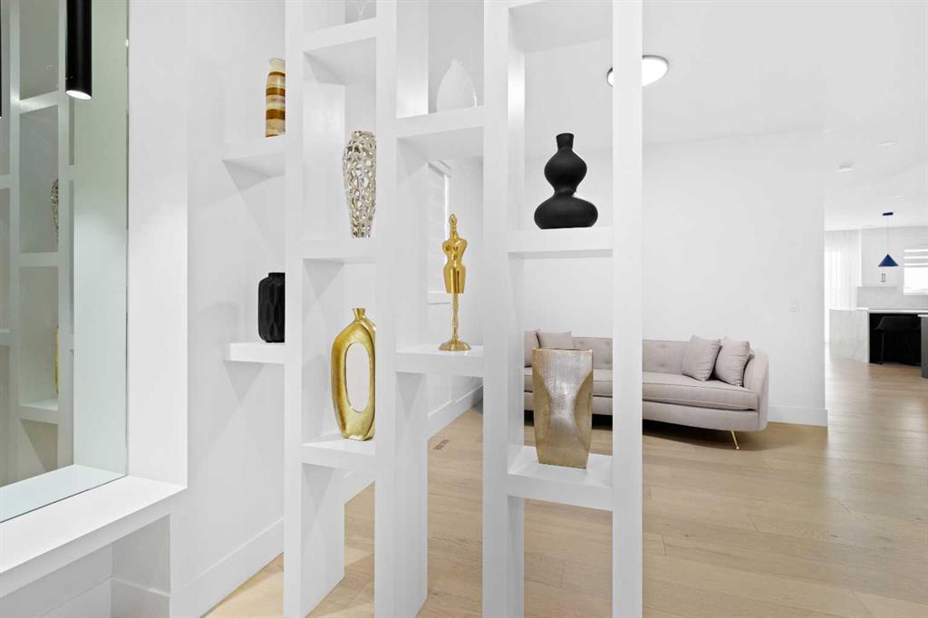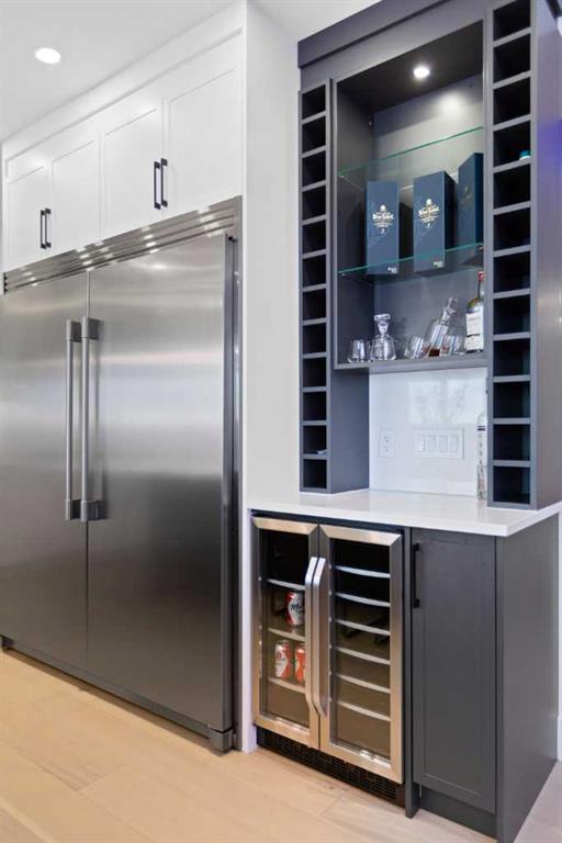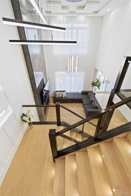 This home is currently under construction. Photos are for representation purposes only and are not of the actual property. Finishes, features, and specifications may vary. Welcome to a truly exceptional Modern Beach House–inspired luxury residence, perfectly situated on a large pie-shaped lot and backing refined design with resort-style living. Featuring a triple car garage, expansive outdoor spaces, and a fully developed basement, this home is thoughtfully crafted for elevated family living and entertaining. The main level makes an immediate impression with its open-to-above family room, soaring ceilings, and abundant natural light. Designed with 9-foot ceilings and 8-foot doors, this floor includes a main-floor bedroom and full bathroom, ideal for guests or multigenerational living. The chef’s kitchen is a showpiece, equipped with custom cabinetry, quartz countertops, built-in wall oven and microwave, gas cooktop, oversized fridge/freezer, and dishwasher. A spice kitchen with pantry enhances functionality, while a custom island with a flush eating bar and architectural ceiling detail anchors the space. A separate dining area features a designer accent wall and custom ceiling treatment, while the living area is warmed by a built-in gas fireplace. Practical touches include custom mudroom cabinetry with bench seating and MDF shelving throughout all main-floor closets. Step outside to an expansive deck, perfect for outdoor entertaining. The upper level is designed for comfort and connection, offering four bedrooms, three full bathrooms, a dedicated laundry room, and a spacious bonus room overlooking the open-to-below living area. The bonus room features tray ceilings and custom media built-ins, creating an ideal family lounge. Secondary bedrooms are connected by a Jack & Jill bathroom, while the primary retreat is a true sanctuary—complete with tray ceiling, private balcony with glass railing, and oversized patio doors. The spa-inspired ensuite includes a double vanity, freestanding soaker tub, steam shower with full tile surround and glass doors, heated floors, and a striking two-sided fireplace, paired with a custom walk-in closet featuring MDF shelving. The fully developed basement expands the home’s versatility with two large bedrooms, a full bathroom, a theatre room, a home gym, wet bar, and generous storage, all complemented by approximately 9-foot ceilings—perfect for entertaining, guests, or extended family living. The exterior showcases a sophisticated blend of Hardie Board board-and-batten detailing, stone masonry, upgraded front entry, and LED lighting, enhancing curb appeal from every angle. Multiple outdoor living spaces—including a covered deck and balcony with glass railings—complete this resort-inspired design. Bold. Refined. Unforgettable. This home delivers architectural presence, luxury finishes, and thoughtful design—setting a new standard for modern living.
