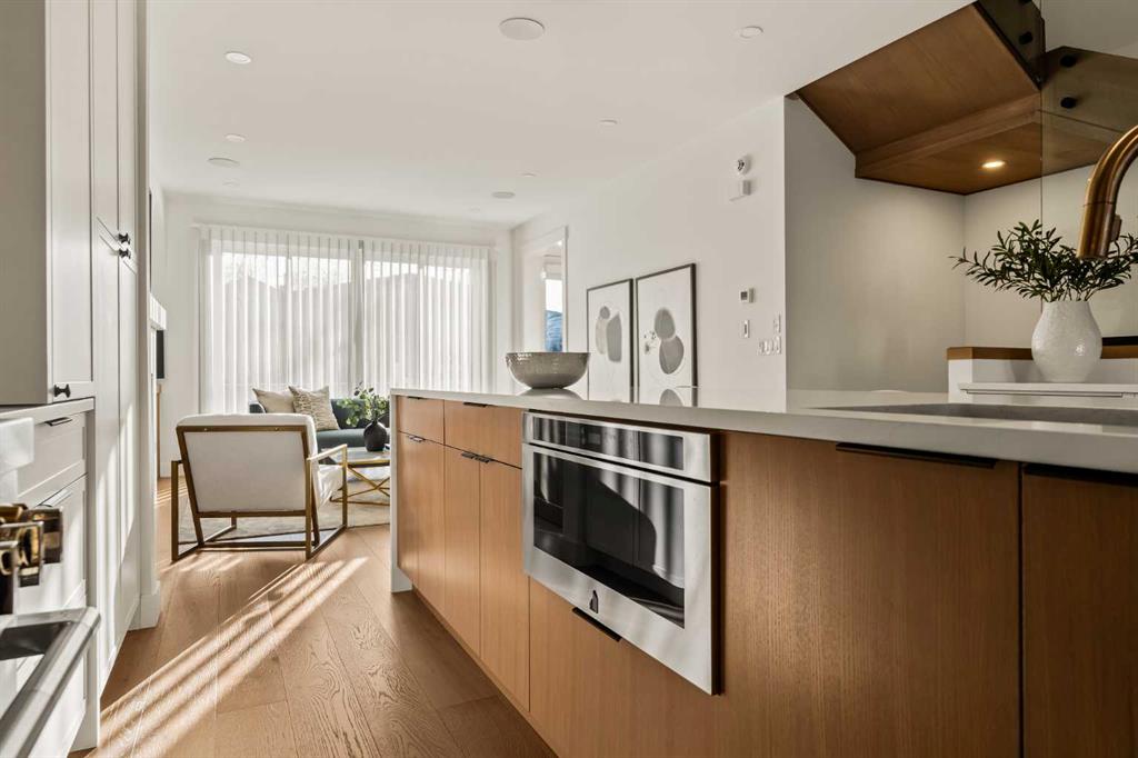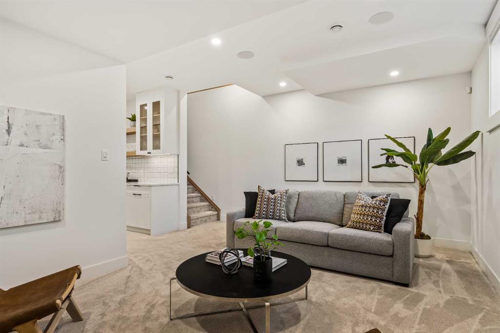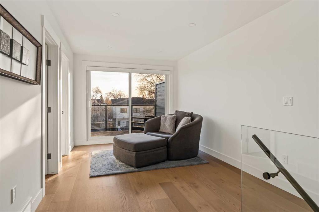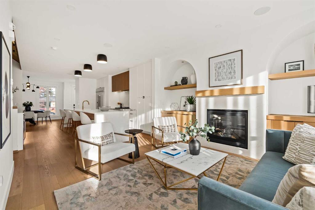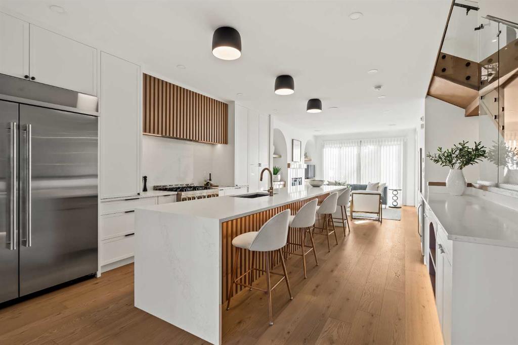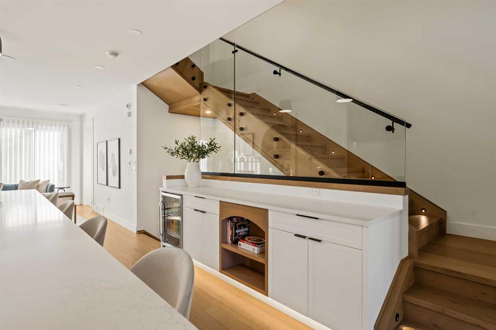 Stunning luxury 3-storey semi-detached residence offering 4 bedrooms, 4.5 bathrooms, a private south-facing backyard, fully air conditioned & ideally located in the heart of highly sought-after Altadore. Showcasing exceptional curb appeal with a gorgeous front elevation, this modern home is filled with natural light from expansive windows & features, thoughtful design & high-end upgrades throughout. The inviting front entry is both stylish & functional, complete with a built-in bench, coat hooks, & smart shoe storage. A front dining room sets the stage for elegant entertaining, while the heart of the home is the extensively upgraded central kitchen, anchored by a large waterfall island. Highlights include full-height cabinetry, deep lower drawers, soft-close hardware, a built-in pantry, & custom hood fan. Premium JennAir stainless steel appliances include a French-door refrigerator, gas range, built-in microwave, garburator & dishwasher. Across from the island, additional built-in cabinetry & counter space feature a beverage cooler. The rear living room is warm & refined, centred around a gas fireplace with recessed built-ins & custom millwork. Ten-foot-wide sliding patio doors open onto a south-facing exposed aggregate deck, seamlessly blending indoor & outdoor living. A spacious rear mudroom offers a closet, bench, & coat hooks, along with a private powder room featuring a vessel sink & sleek linear mirror. The second level includes the primary retreat featuring a generous bedroom & a spa-inspired 5-piece ensuite with a freestanding soaker tub surrounded by floor-to-ceiling tile, heated floors, a custom walk-in glass steam shower with rainfall shower head & built-in bench, dual vanity, & a walk-in closet with custom organizers, drawers, and a full-height mirror. Two additional bedrooms, complemented by a beautiful 4-piece bathroom & a thoughtfully designed laundry room with abundant cabinetry, counter space, & sink. The third level offers incredible flexibility with a bright loft-style bonus room featuring a built-in media centre & wet bar with beverage cooler, a separate home office, a full four-piece bathroom, & access to a private south-facing balcony. This level can also easily function as a studio-style 5th bedroom. The fully developed lower level is equally impressive, featuring a family room with wet bar & custom cabinetry, a 10-foot-wide glass-enclosed home gym with rubber flooring, a 4th bedroom, & a 3-piece bathroom. This level is roughed-in for in-floor heating. Built-in speakers are installed throughout the home & centrally wired to the mechanical room, & the property is also roughed-in for a central vacuum system. Outside, the backyard has been upgraded with turf for low-maintenance living, while the deck offers the perfect space for outdoor furniture. Altadore remains one of Calgary’s most desirable inner-city communities, offering quick access to Glenmore Athletic Park, Marda Loop, River Park off-leash, Sandy Beach, schools and more!